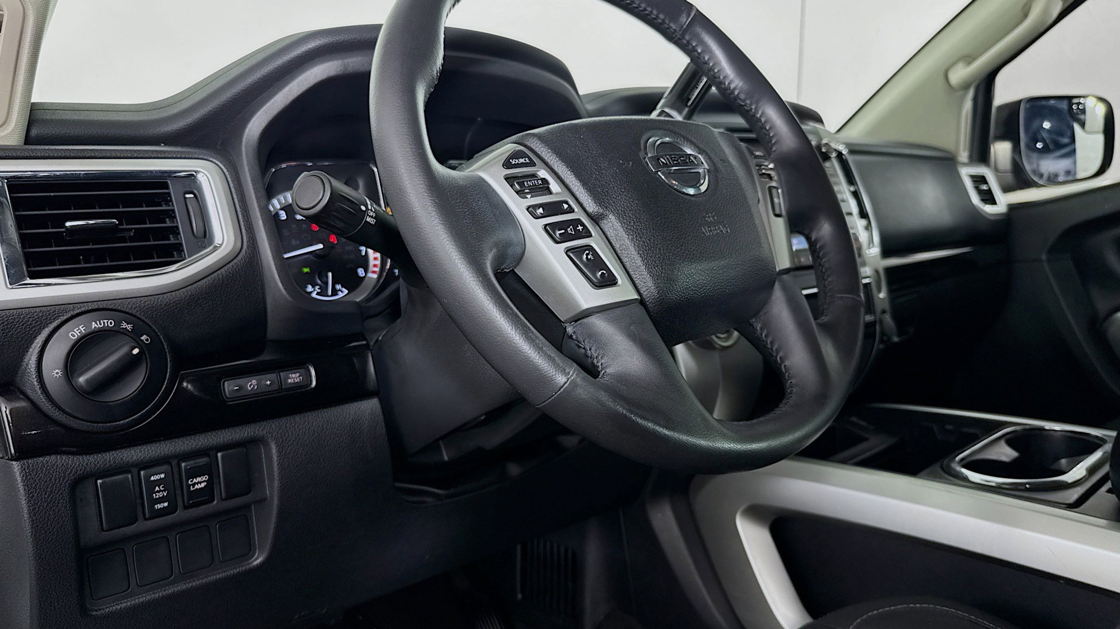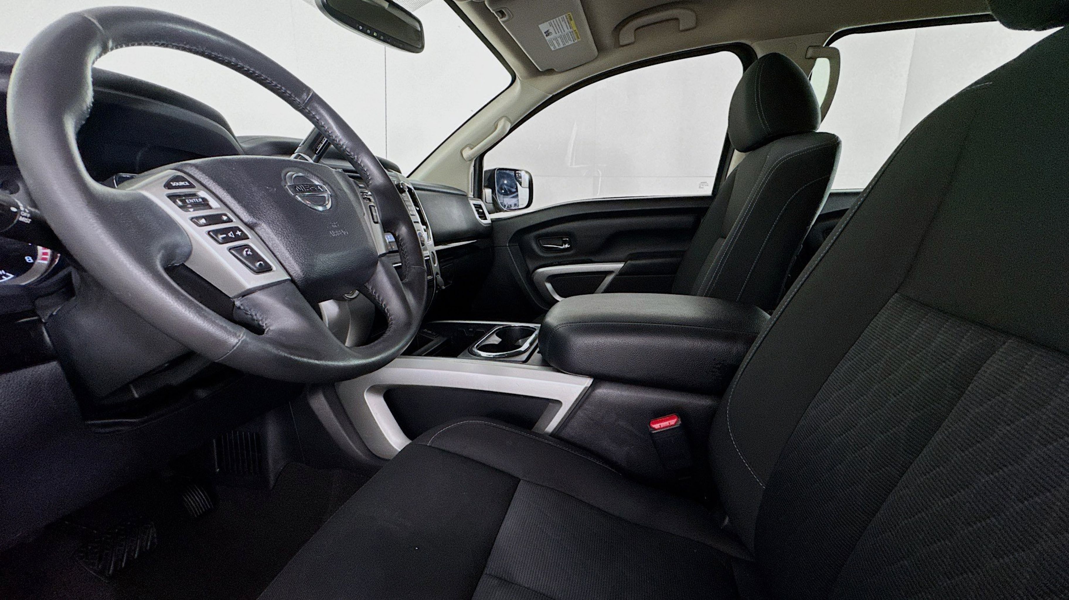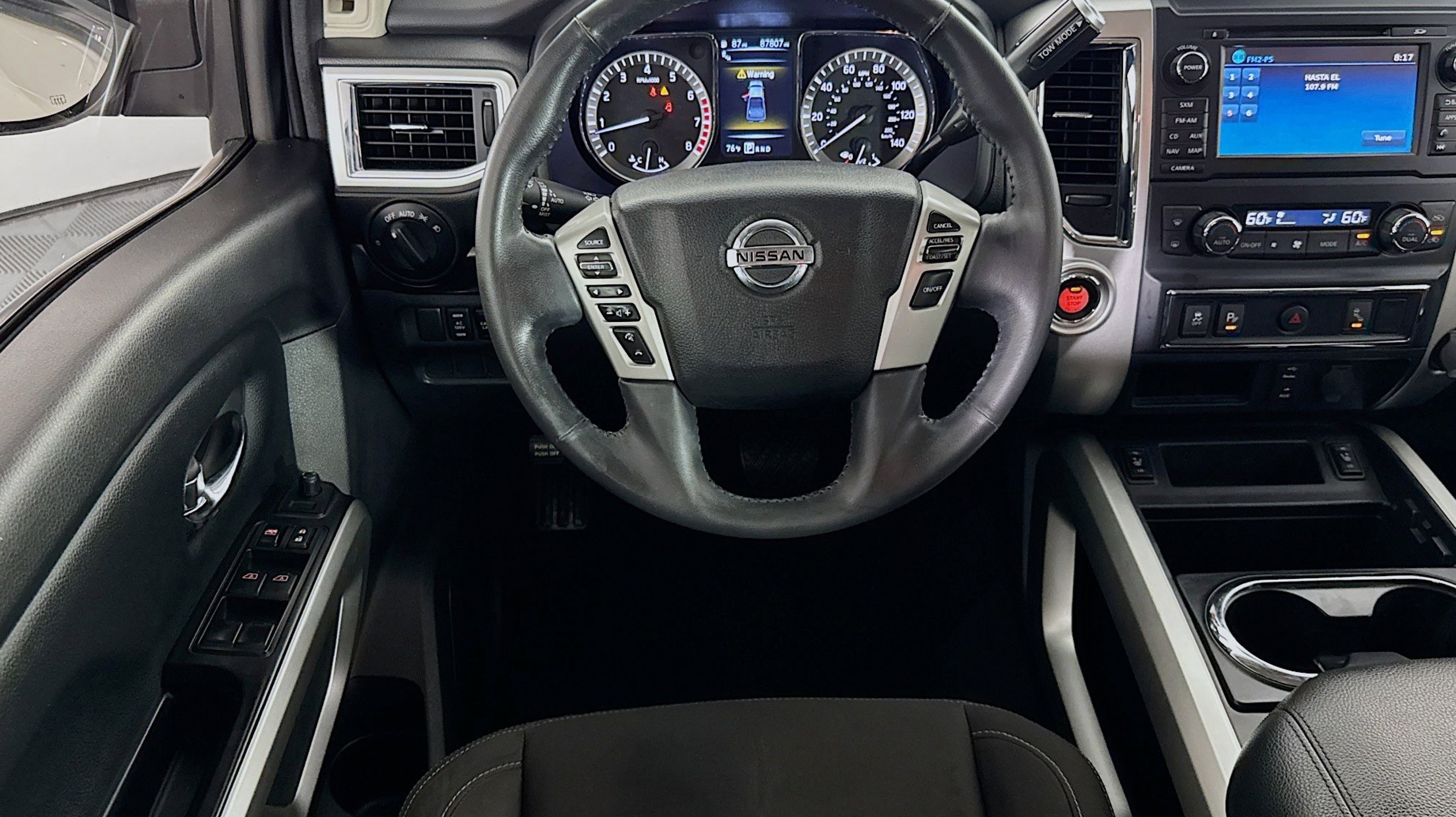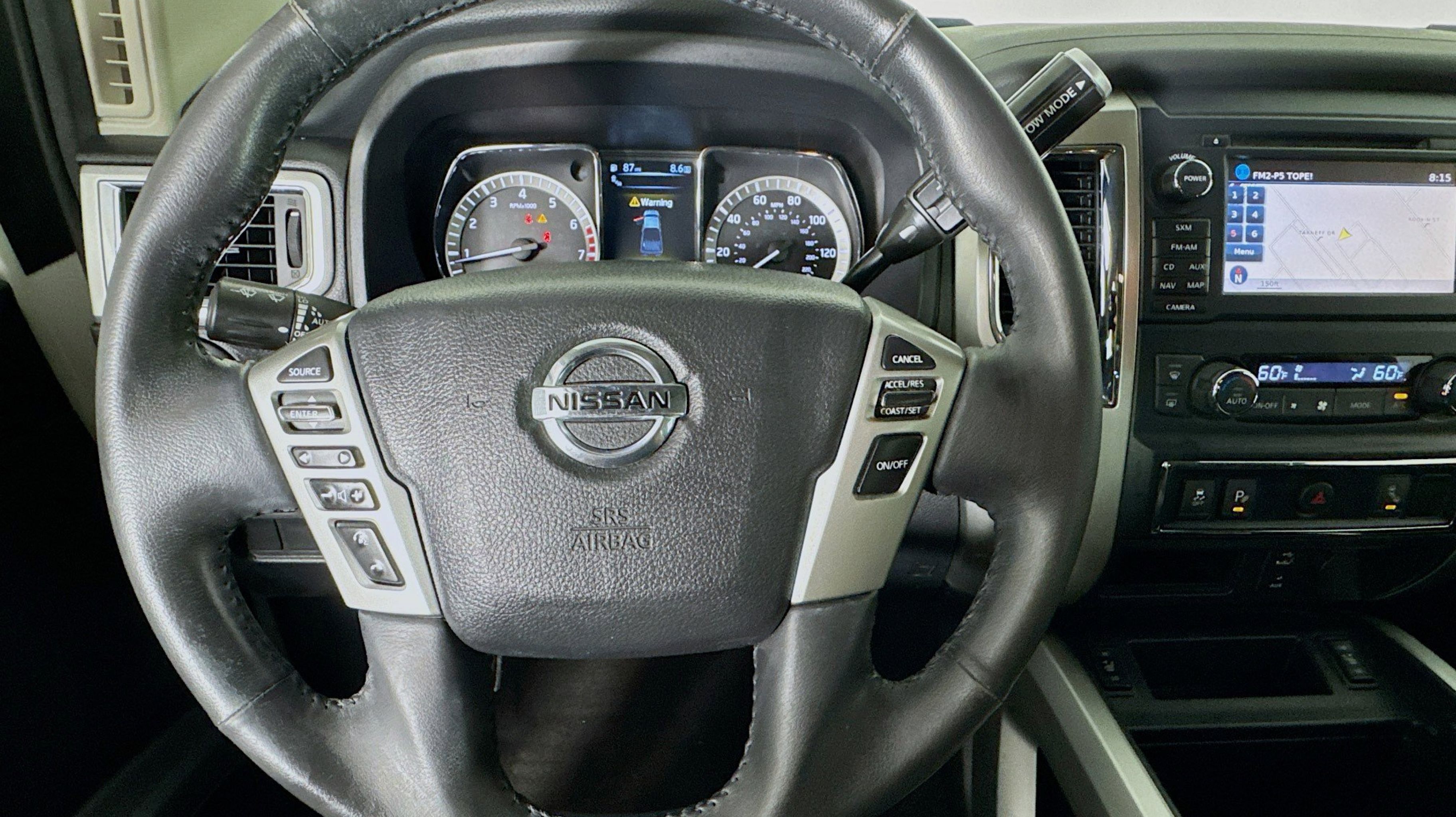 - [U01] SV CONVENIENCE PACKAGE -inc: Automatic On/Off Headlights Receiver Hitch Leather-Wrapped Steering Wheel Painted Rear Bumper Chrome Interior Door Locks Front & Rear Parking Sensors Convex Spotter Mirror Radio: Nissan Navigation System w/Voice Guidance 7 color touch-screen display voice guidance SiriusXM Traffic SiriusXM Travel Link (weather fuel prices movie listings sports scores and stock info) voice recognition for navigation and audio and NissanConnect mobile apps Siri Eyes Free Blind Spot Warning w/Rear Cross Traffic Alert Rear Air Conditioning Vents Intelligent Key System driver and passenger request switches 4-Pin/7-Pin Wiring Harness Connector (Rear Bumper) Power Sliding Rear Window w/Defogger Rain Sensing Wipers Dual Zone Automatic HVAC Heated Front Captain's Chairs 8-way power adjustable driver's seat w/power lumbar support and center console-mounted 110-volt and 12-volt power outlets Auto-Dimming Rearview Mirror Universal Garage Door Opener