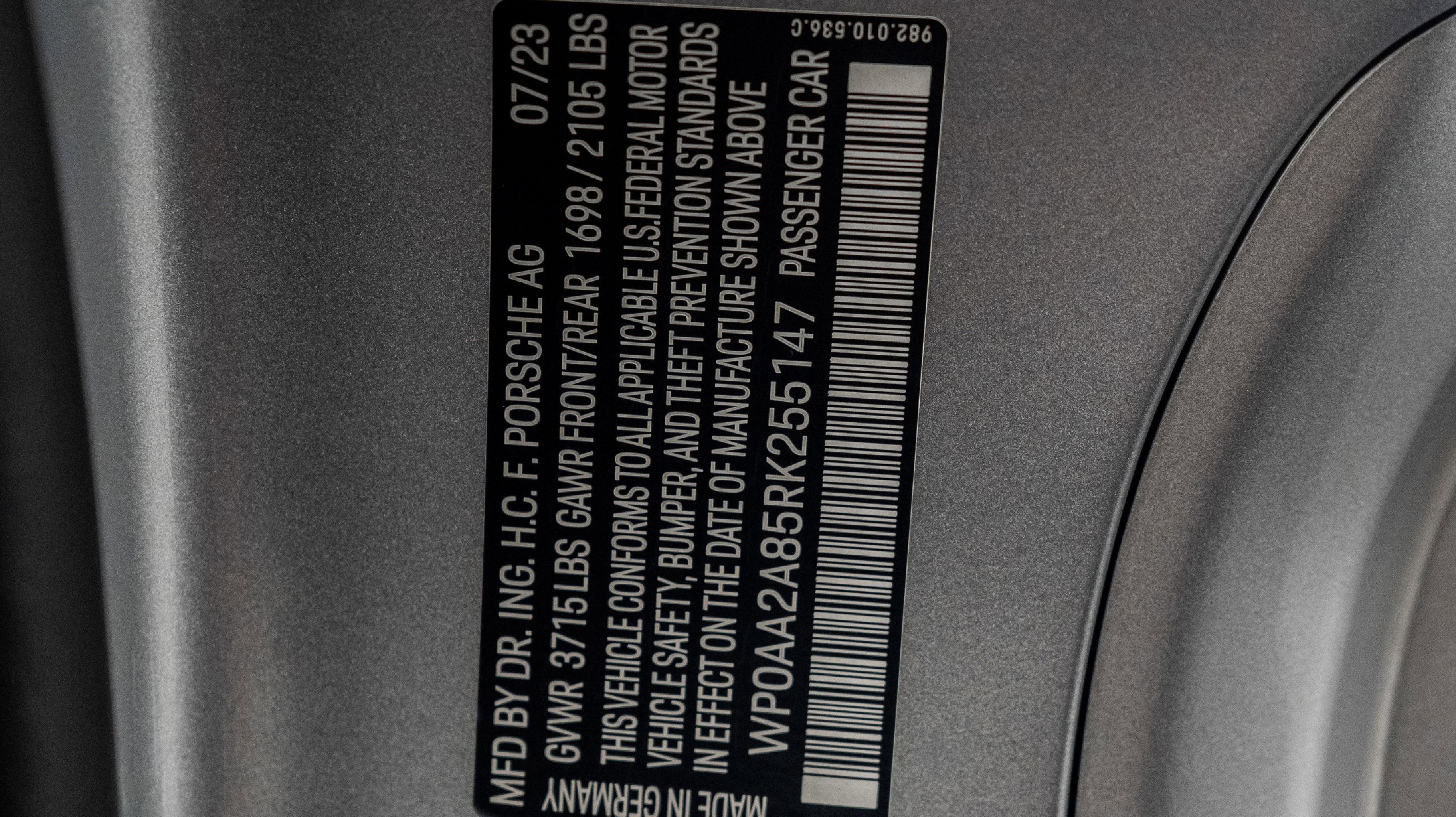 *** VIN: WP0AA2A85RK255147