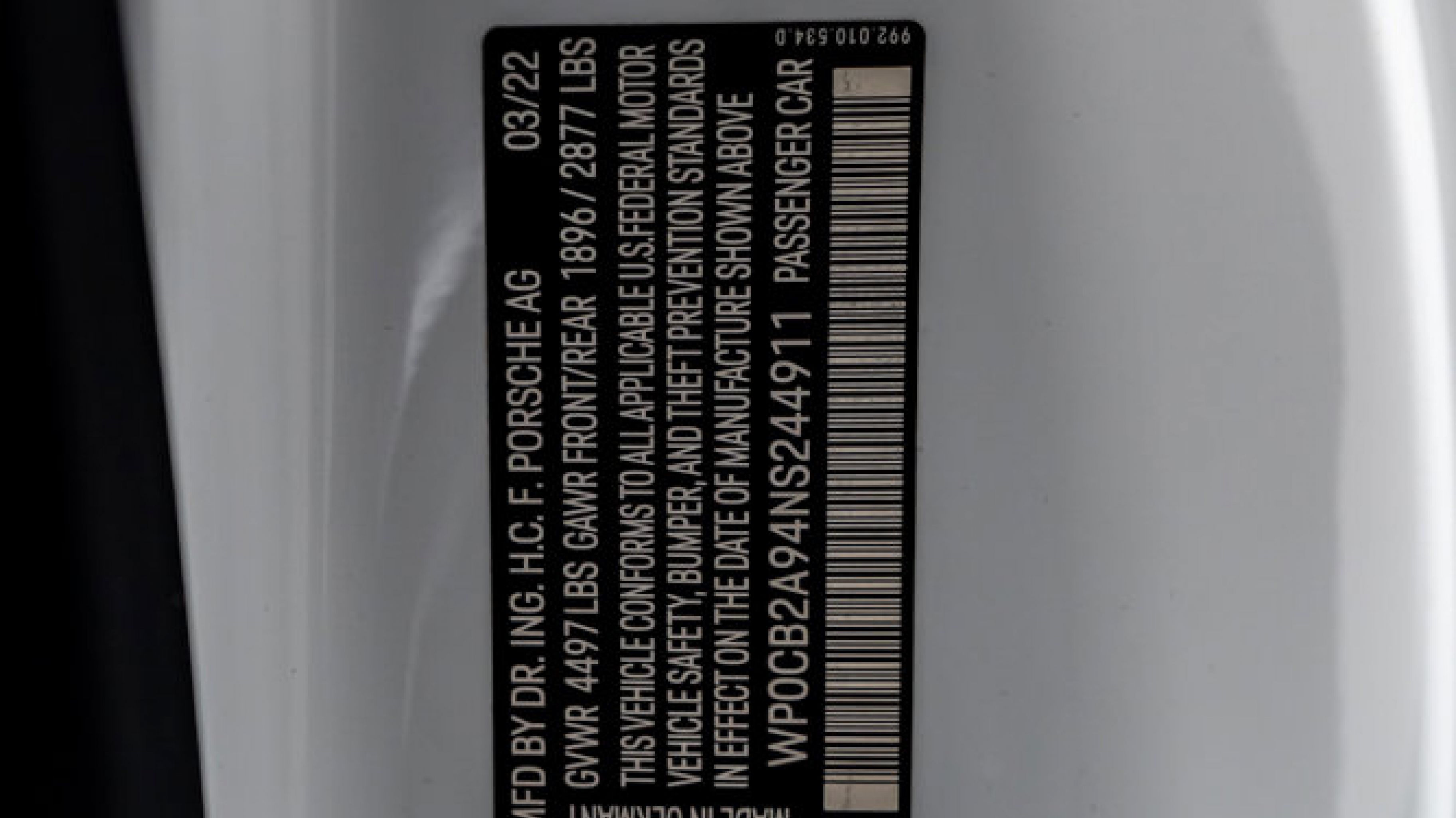 *** VIN: WP0CB2A9NS244911