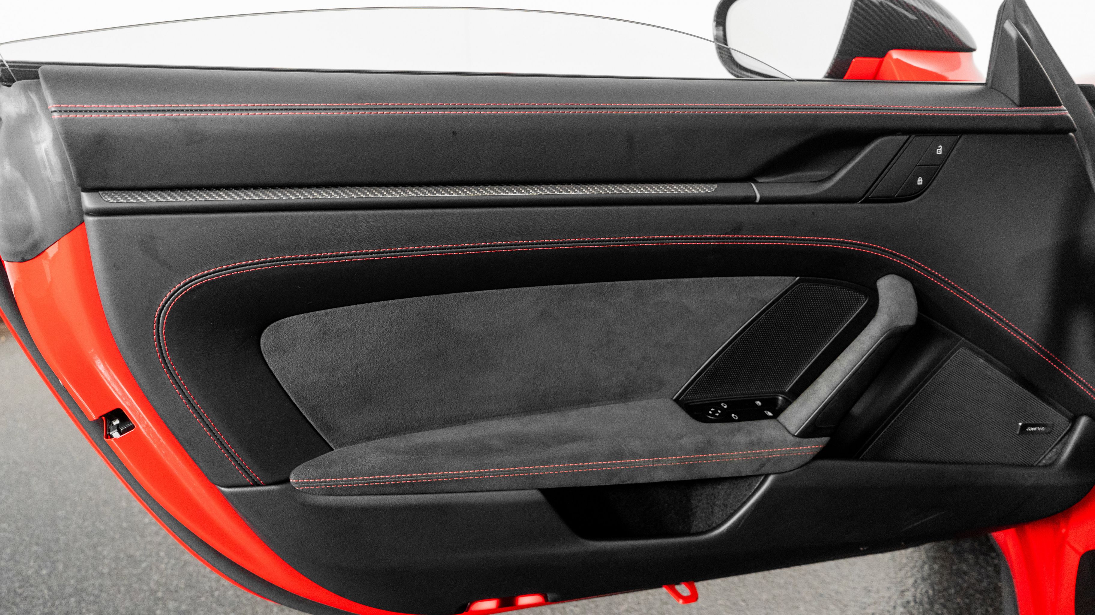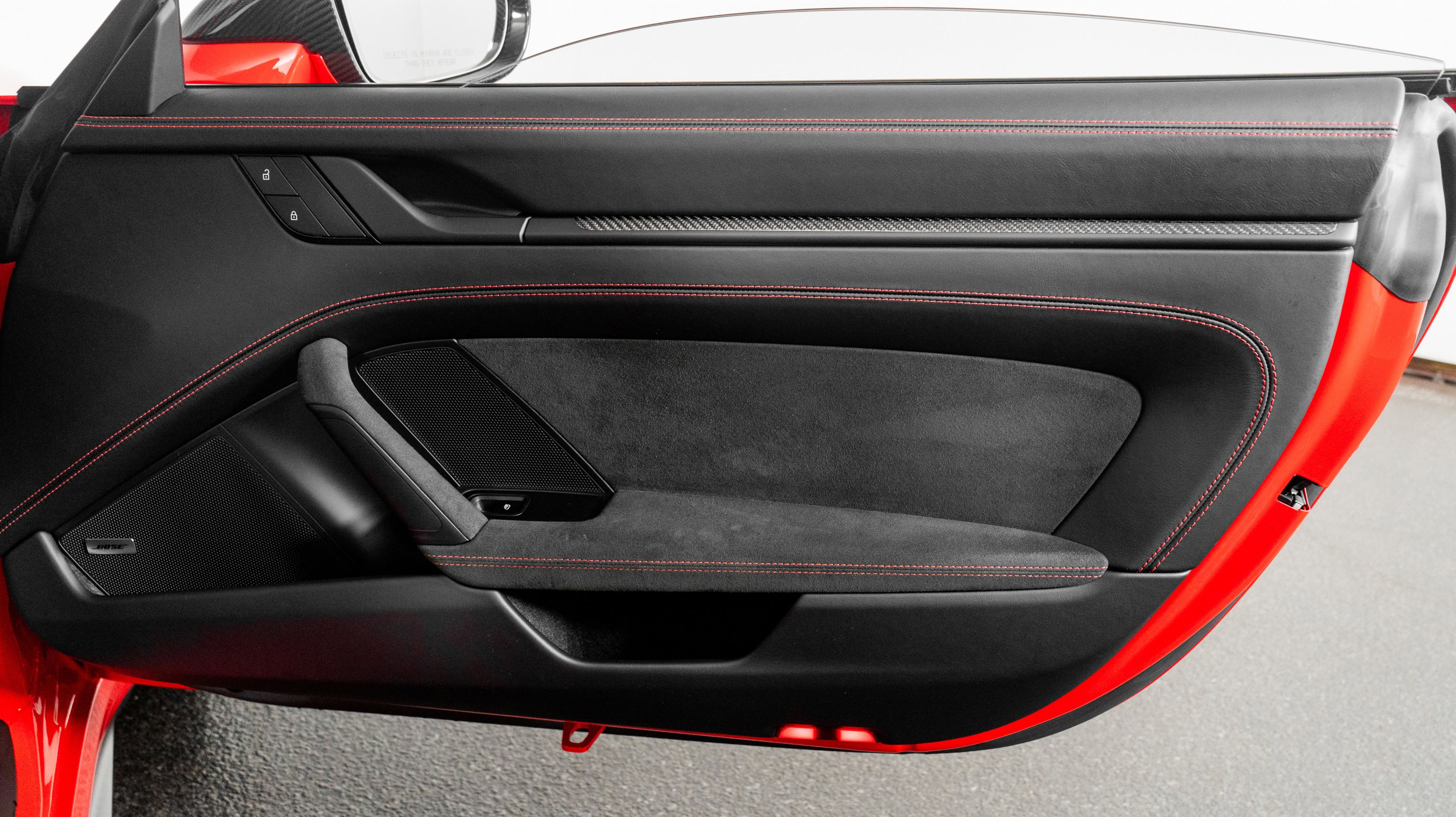 *** Interior:** Leather and Race Tex Interior in Black with Guards Red
