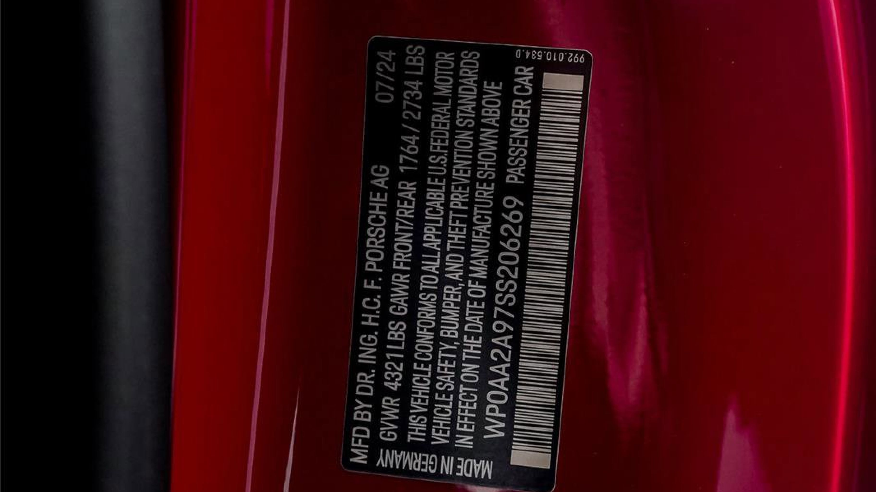 *** VIN: WP0AA2A97SS206269