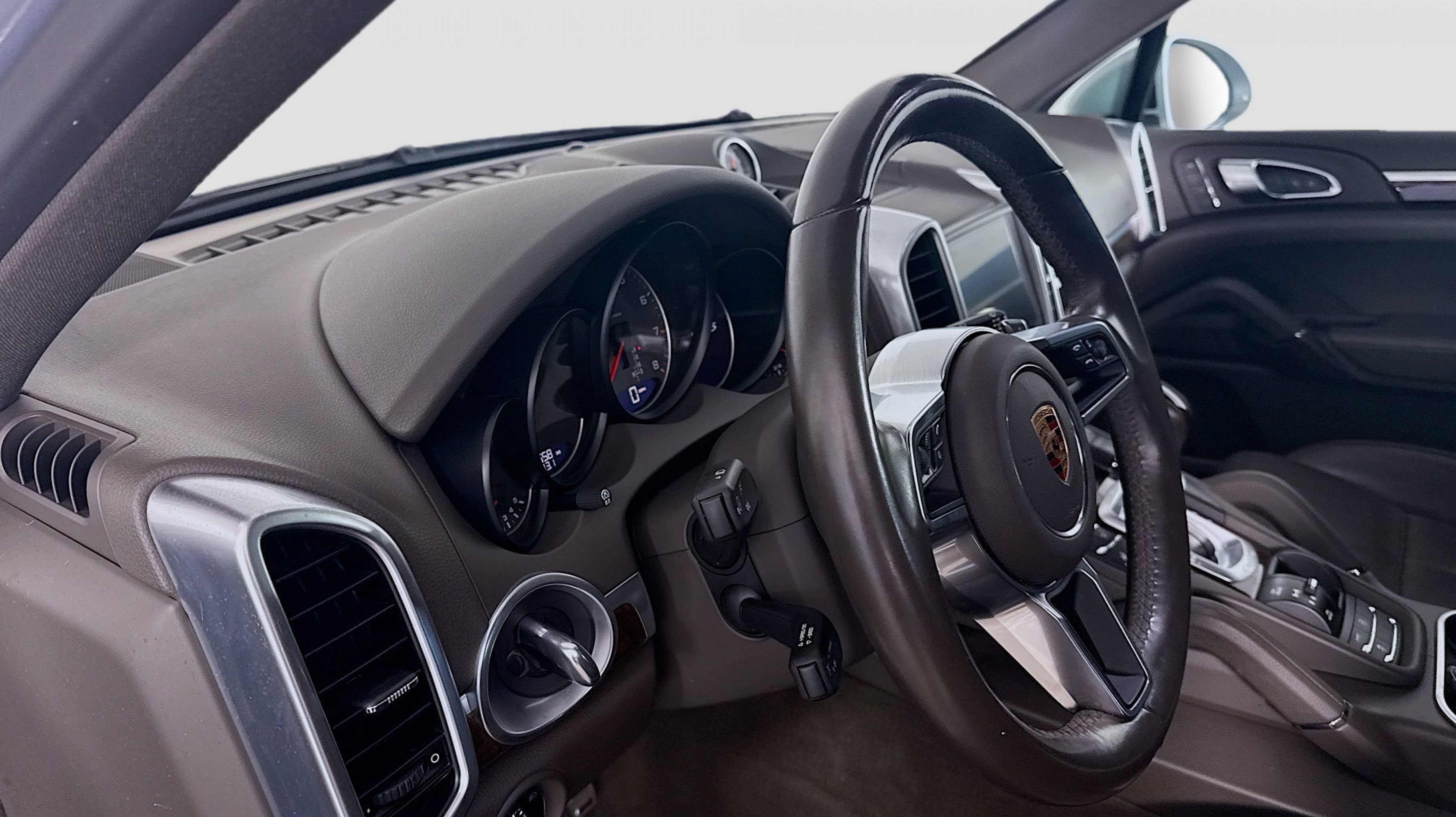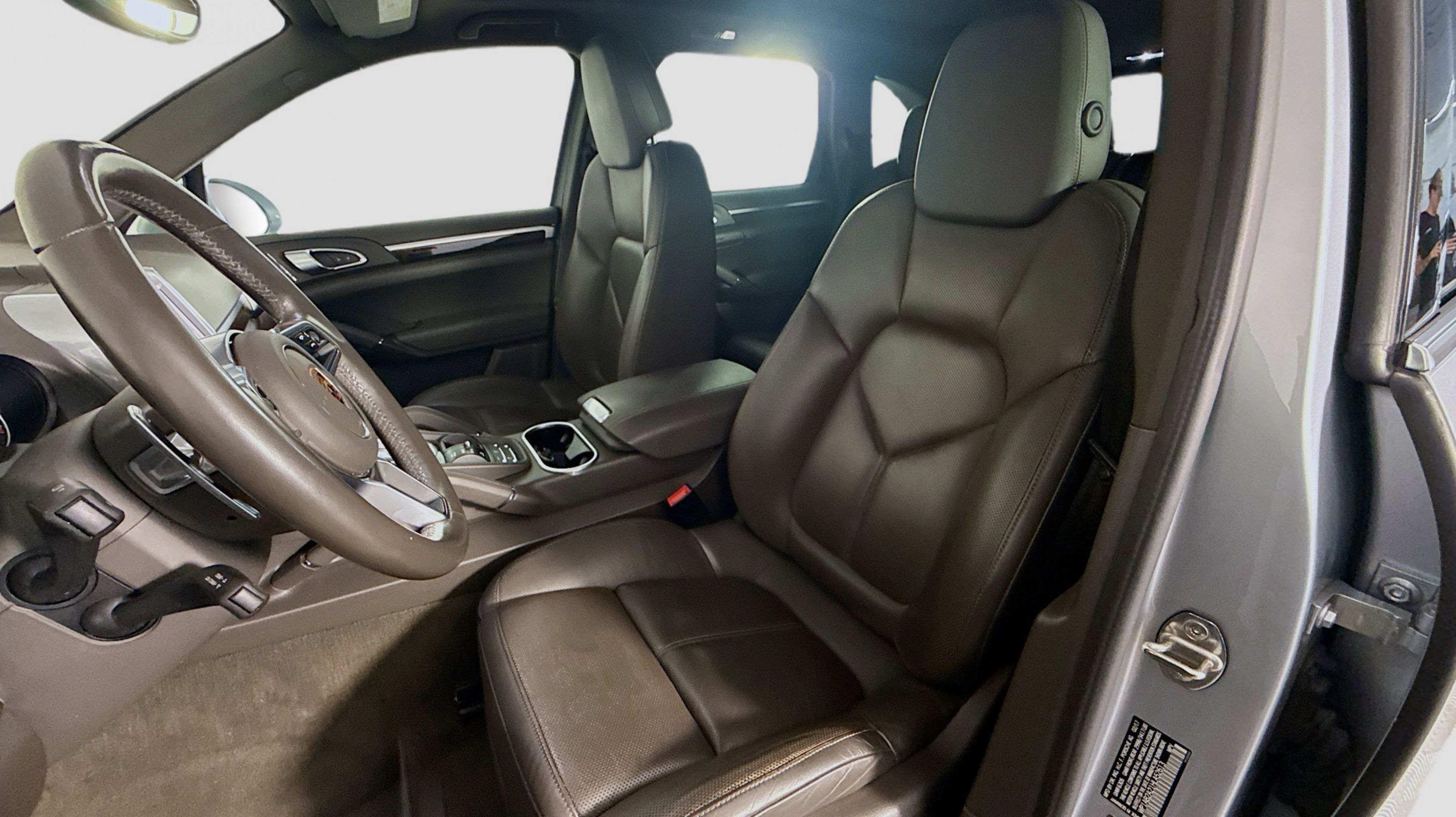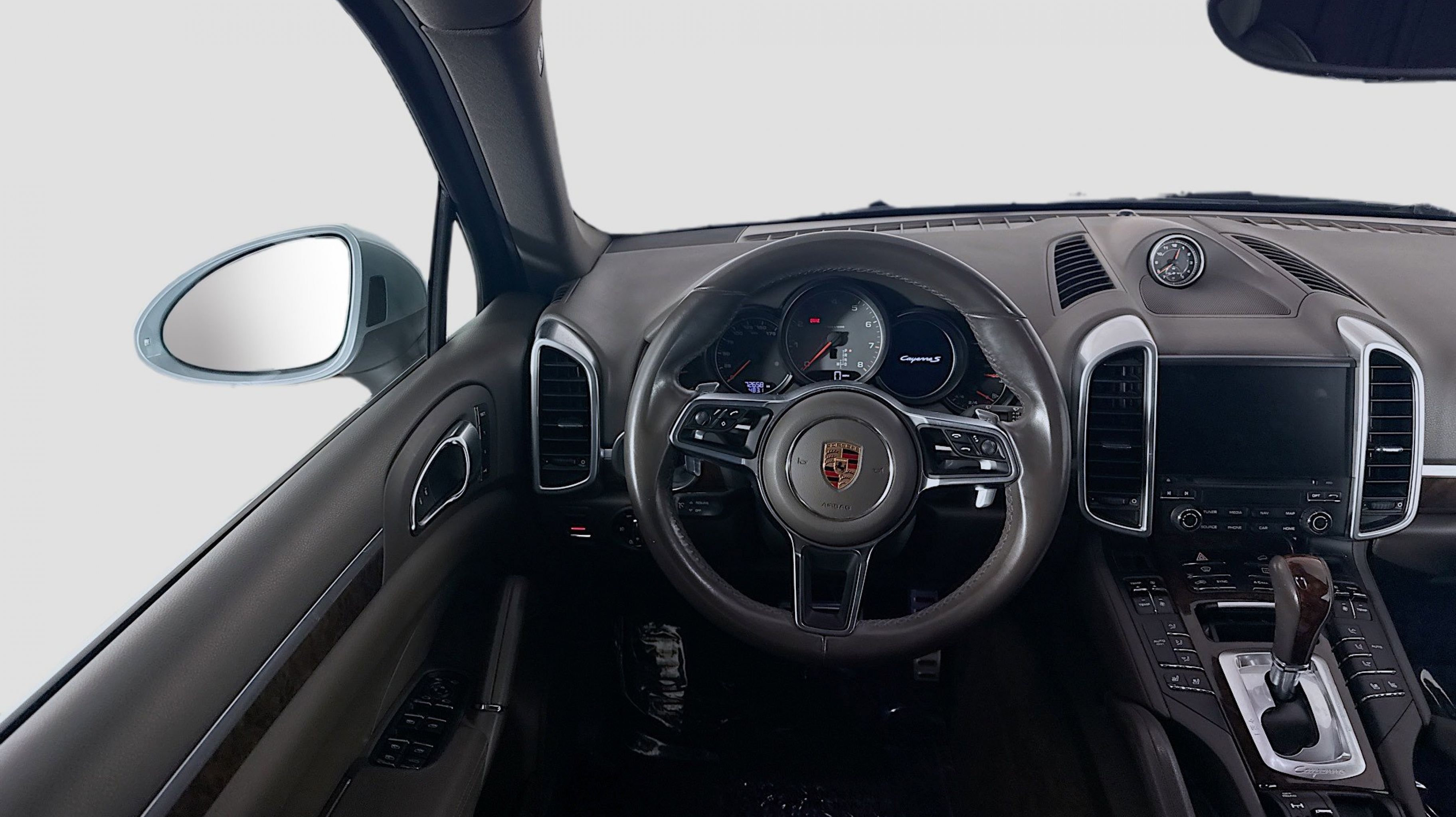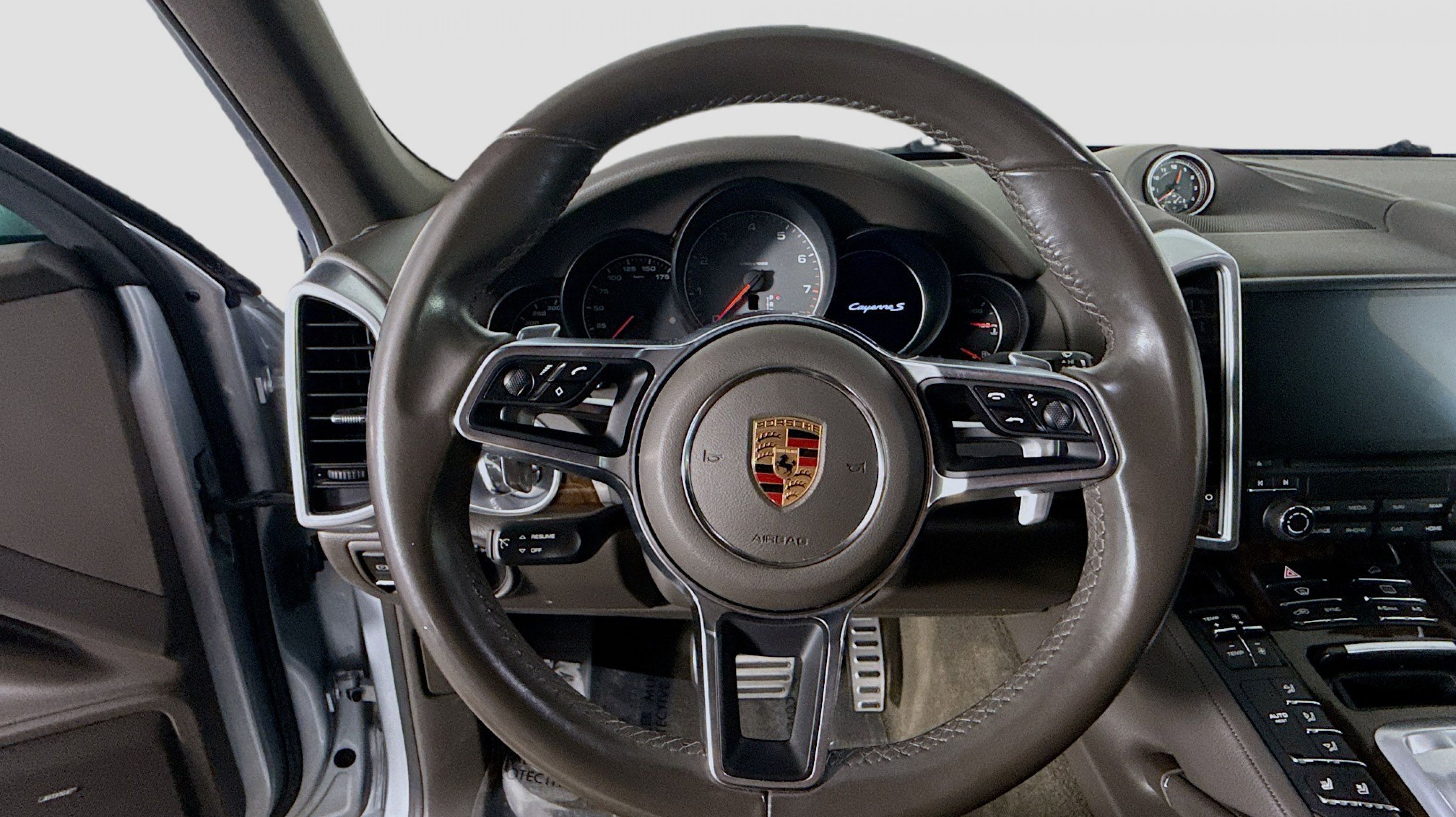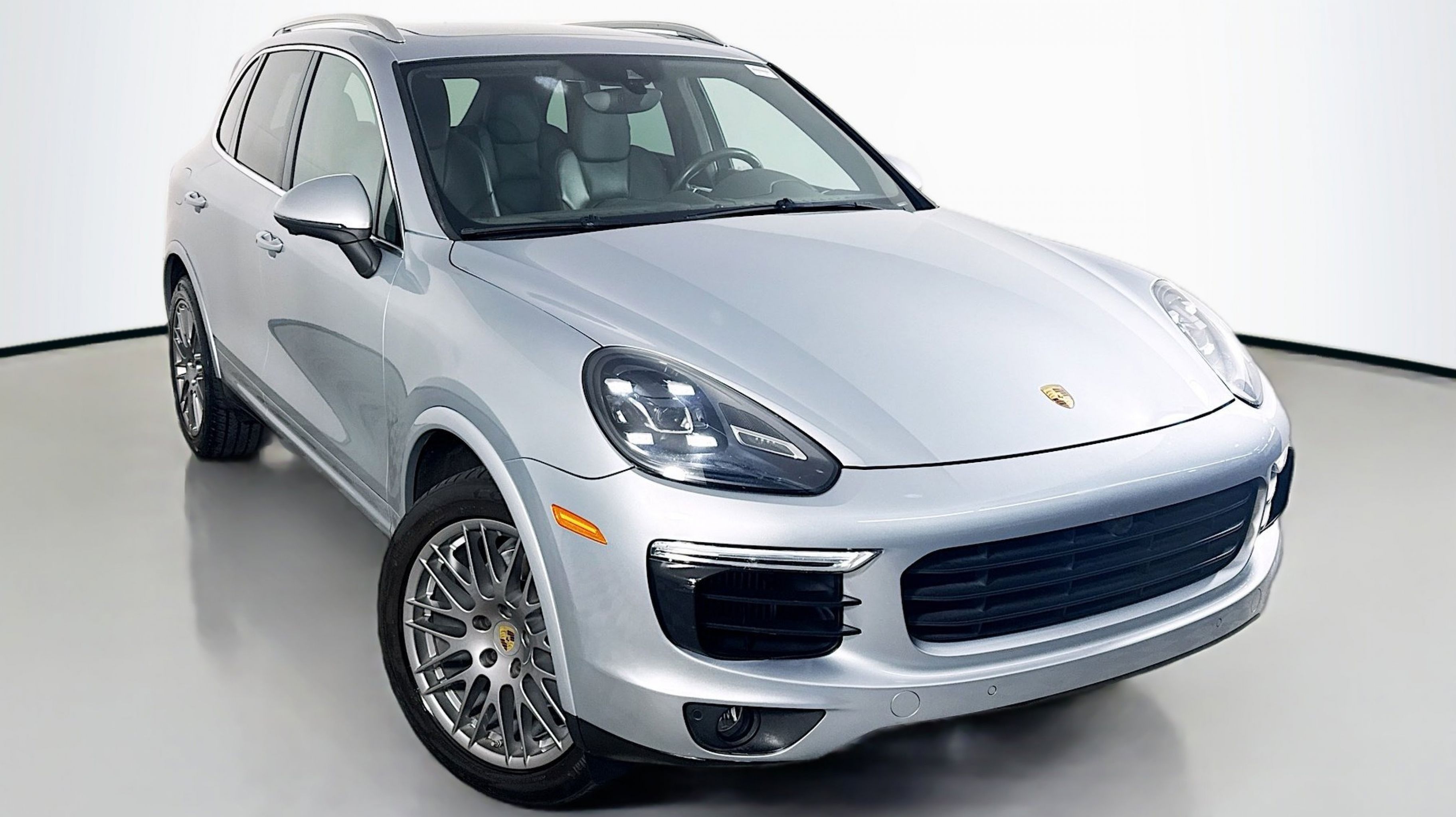Rhodium Silver Metallic 2017 Porsche Cayenne S AWD 8-Speed Automatic with Tiptronic 3.6L V6 Agate Grey w/Leather Seat Trim, 14-Way Power Seats w/Memory Package, Automatically Dimming Exterior & Interior Mirrors, Comfort Lighting Package w/Memory Package, Dark Walnut Interior Package (5MP), Electric Sunblinds for Rear Side Windows, Front & Rear Seat Heating, Front Seat Ventilation, Lane Change Assist (LCA), LED Headlights w/Porsche Dynamic Light System Plus, Panoramic Roof System, Porsche Entry & Drive, Premium Plus Package, Reversing Camera Including Front & Rear ParkAssist, 10 Speakers, 3.09 Axle Ratio, 4-Wheel Disc Brakes, 8-Way Power Front Seats, ABS brakes, Air Conditioning, Alloy wheels, AM/FM radio, Automatic temperature control, Brake assist, Bumpers: body-color, CD player, Delay-off headlights, Driver door bin, Driver vanity mirror, Dual front impact airbags, Dual front side impact airbags, DVD-Audio, Electronic Stability Control, Four wheel independent suspension, Front anti-roll bar, Front Bucket Seats, Front Center Armrest, Front dual zone A/C, Front fog lights, Front reading lights, Fully automatic headlights, Garage door transmitter: HomeLink, Heated door mirrors, High intensity discharge headlights: Bi-Xenon, Illuminated entry, Knee airbag, Leather Shift Knob, Low tire pressure warning, Memory seat, Navigation System, Occupant sensing airbag, Outside temperature display, Overhead airbag, Overhead console, Panic alarm, PANORAMA SUNROOF, Partial Leather Seat Trim, Passenger door bin, Passenger vanity mirror, Power door mirrors, Power driver seat, Power Liftgate, Power passenger seat, Power steering, Power windows, Radio: AM/FM/CD/DVD w/PCM & Navigation, Rain sensing wipers, Rear anti-roll bar, Rear fog lights, Rear reading lights, Rear seat center armrest, Rear side impact airbag, Rear window defroster, Rear window wiper, Remote keyless entry, Security system, Speed control, Speed-sensing steering, Split folding rear seat, Spoiler, Sport steering wheel, Steering wheel mounted audio controls, Tachometer, Telescoping steering wheel, Tilt steering wheel, Traction control, Trip computer, Variably intermittent wipers, Wheels: 8.5J x 19 Cayenne Design II, Agate Grey w/Leather Seat Trim, 14-Way Power Seats w/Memory Package, Automatically Dimming Exterior & Interior Mirrors, Comfort Lighting Package w/Memory Package, Dark Walnut Interior Package (5MP), Electric Sunblinds for Rear Side Windows, Front & Rear Seat Heating, Front Seat Ventilation, Lane Change Assist (LCA), LED Headlights w/Porsche Dynamic Light System Plus, Panoramic Roof System, Porsche Entry & Drive, Premium Plus Package, Reversing Camera Including Front & Rear ParkAssist.