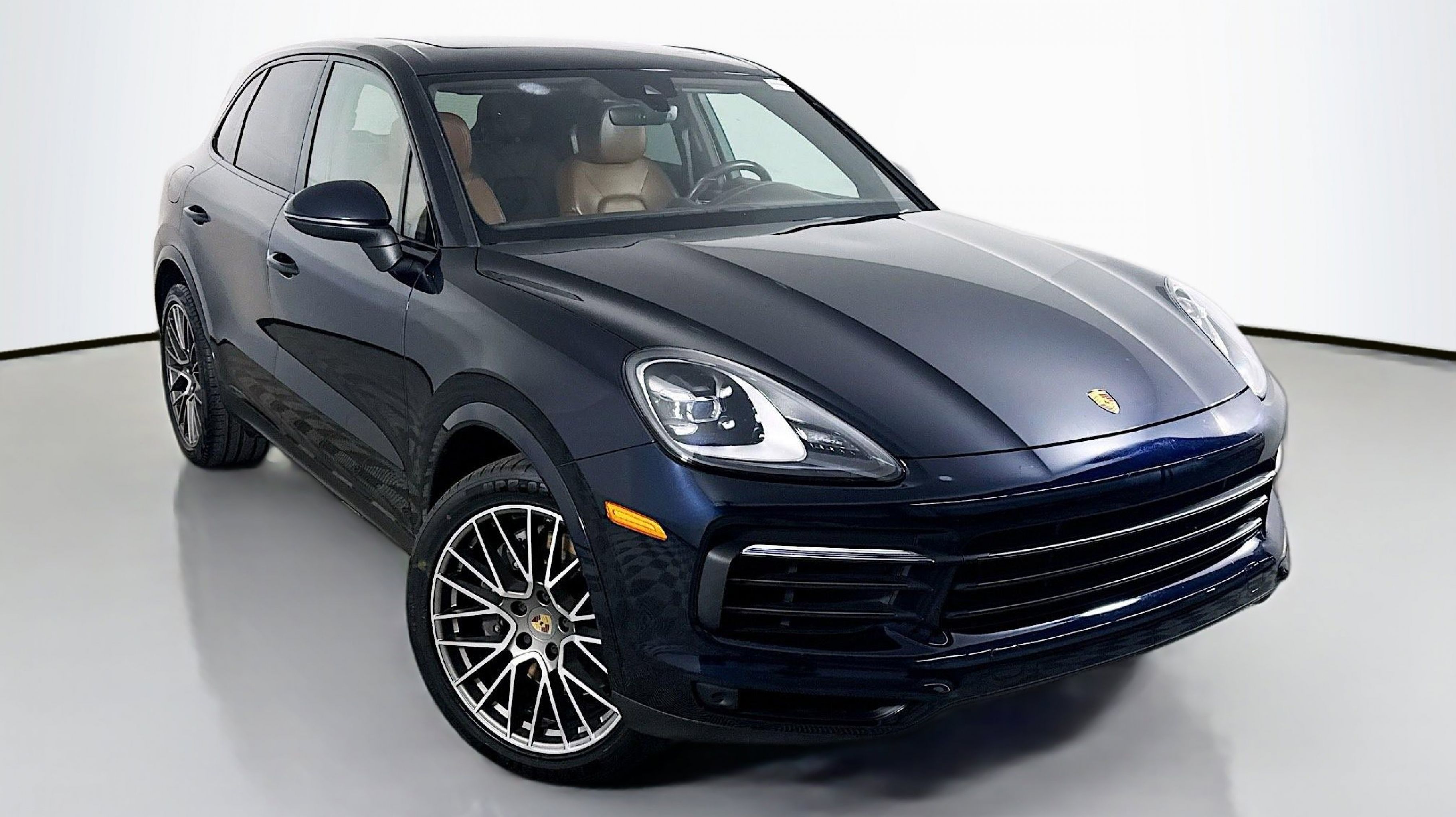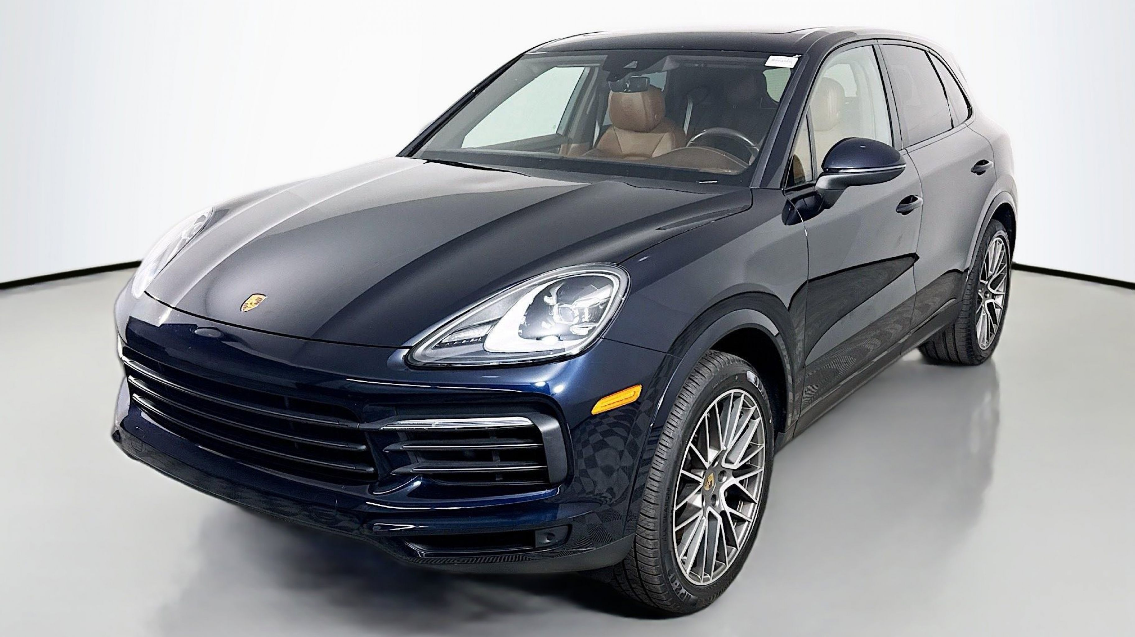 Moonlight Blue Metallic 2023 Porsche Cayenne AWD 8-Speed Automatic with Tiptronic 3.0L V6 Truffle Brown/Cohiba Brown w/Club Leather Seat Trim w/Two-Tone Leather Interior, 4-Wheel Disc Brakes, ABS brakes, Adaptive suspension, Air Conditioning, Alloy wheels, AM/FM radio: SiriusXM, Apple CarPlay, Automatic temperature control, Axle Ratio: 3.48, Brake assist, Bumpers: body-color, Delay-off headlights, Driver door bin, Driver vanity mirror, Dual front impact airbags, Dual front side impact airbags, Electronic Stability Control, Exterior Parking Camera Rear, Four wheel independent suspension, Front anti-roll bar, Front Bucket Seats, Front Center Armrest, Front dual zone A/C, Front reading lights, Fully automatic headlights, Garage door transmitter: HomeLink, Heated door mirrors, Illuminated entry, Knee airbag, Leather Shift Knob, Low tire pressure warning, Navigation System, Occupant sensing airbag, Outside temperature display, Overhead airbag, Overhead console, Panic alarm, Partial Leather Seat Trim, Passenger door bin, Passenger vanity mirror, Porsche Communication Management, Power door mirrors, Power driver seat, Power Liftgate, Power passenger seat, Power steering, Power windows, Radio data system, Rain sensing wipers, Rear anti-roll bar, Rear fog lights, Rear reading lights, Rear seat center armrest, Rear side impact airbag, Rear window defroster, Rear window wiper, Remote keyless entry, Security system, Speed control, Split folding rear seat, Spoiler, Steering wheel mounted audio controls, Tachometer, Telescoping steering wheel, Tilt steering wheel, Traction control, Trip computer, Turn signal indicator mirrors, Variably intermittent wipers, Voltmeter, Truffle Brown/Cohiba Brown w/Club Leather Seat Trim w/Two-Tone Leather Interior.