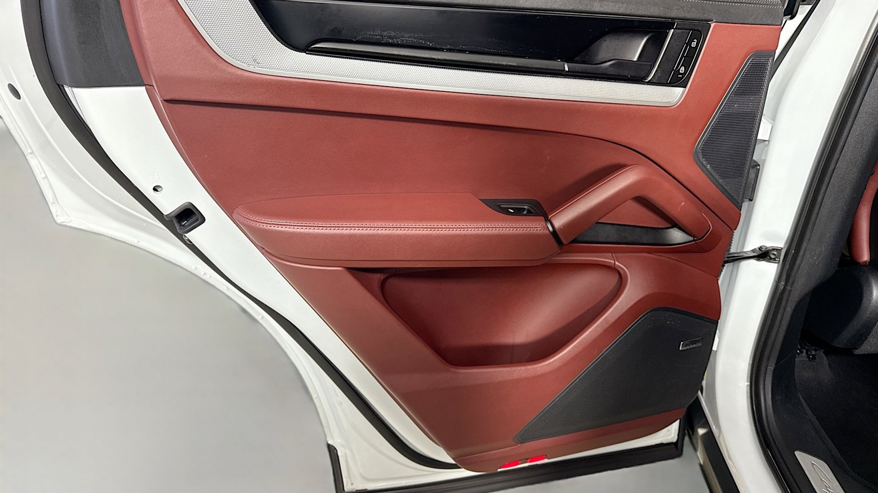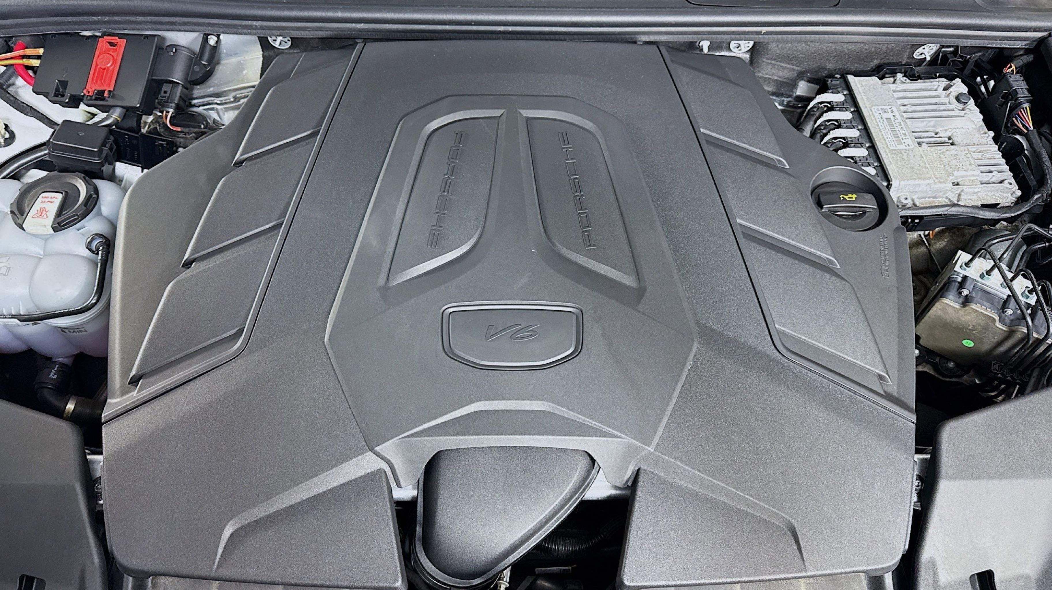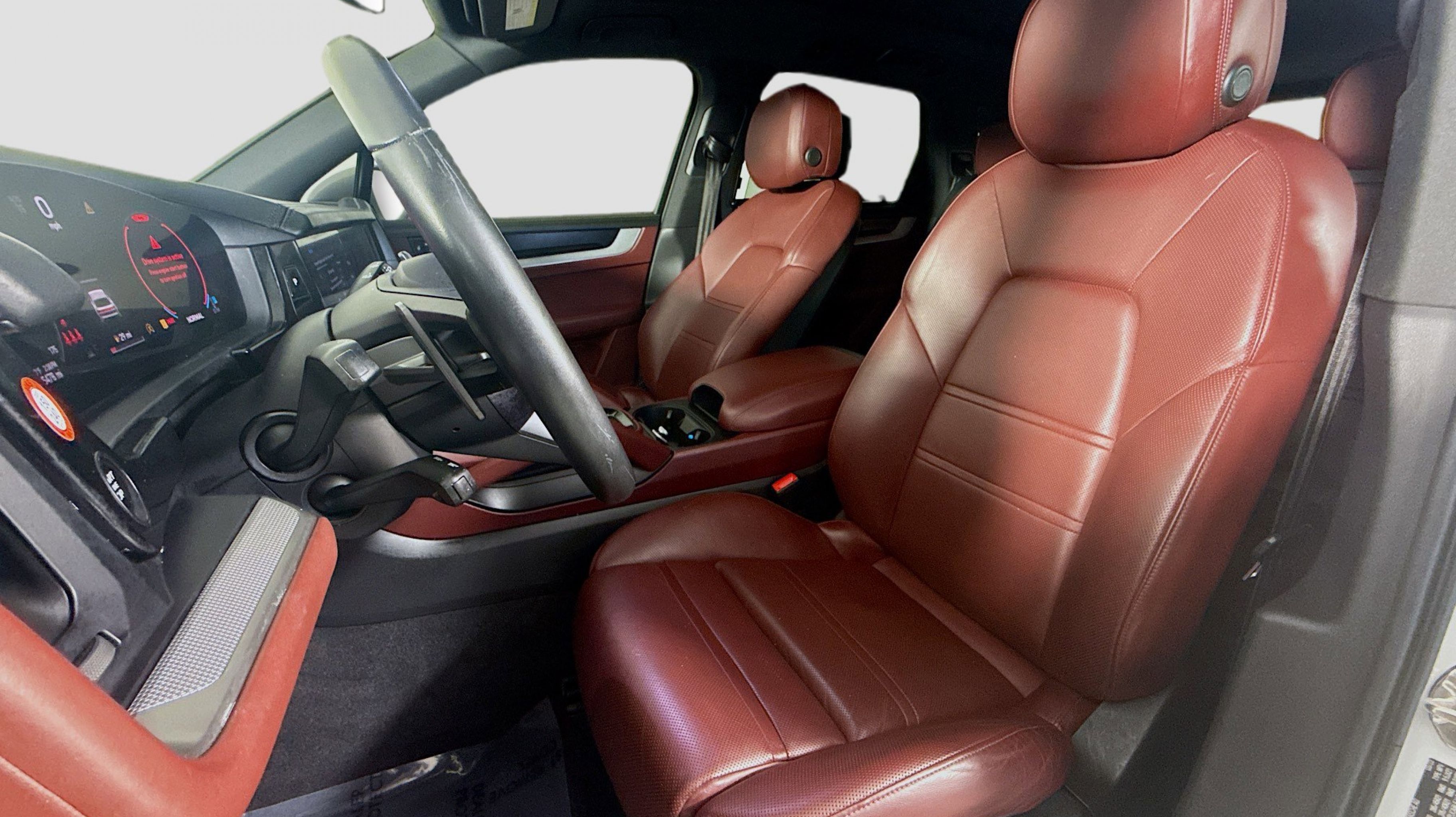 White 2024 Porsche Cayenne AWD 8-Speed Automatic with Tiptronic 3.0L V6 Black/Bordeaux Red w/Leather Seat Trim w/Two-Tone Leather Interior, 10 Speakers, 4-Wheel Disc Brakes, 8-Way Power Seats, ABS brakes, Adaptive suspension, Air Conditioning, Alloy wheels, AM/FM radio: SiriusXM w/360L, Audio memory, Auto High-beam Headlights, Auto-dimming door mirrors, Auto-dimming Rear-View mirror, Automatic temperature control, Axle Ratio: 3.48, Brake assist, Bumpers: body-color, Compass, Delay-off headlights, Driver door bin, Driver vanity mirror, Dual front impact airbags, Dual front side impact airbags, Electronic Stability Control, Exterior Parking Camera Rear, Four wheel independent suspension, Front anti-roll bar, Front Bucket Seats, Front Center Armrest, Front dual zone A/C, Front reading lights, Fully automatic headlights, Garage door transmitter: HomeLink, Heated door mirrors, Heated front seats, HVAC memory, Illuminated entry, Knee airbag, Leather steering wheel, Low tire pressure warning, Memory seat, Navigation System, Occupant sensing airbag, Outside temperature display, Overhead airbag, Overhead console, Panic alarm, Partial Leather Seat Trim, Passenger door bin, Passenger vanity mirror, Porsche Communication Management, Power door mirrors, Power driver seat, Power Liftgate, Power passenger seat, Power steering, Power windows, Radio data system, Rain sensing wipers, Rear anti-roll bar, Rear fog lights, Rear reading lights, Rear seat center armrest, Rear side impact airbag, Rear window defroster, Rear window wiper, Remote keyless entry, Security system, Speed control, Speed-sensing steering, Split folding rear seat, Spoiler, Steering wheel mounted audio controls, Tachometer, Telescoping steering wheel, Tilt steering wheel, Traction control, Trip computer, Turn signal indicator mirrors, Variably intermittent wipers, Voltmeter, Wheels: 20 Cayenne Design, Black/Bordeaux Red w/Leather Seat Trim w/Two-Tone Leather Interior.