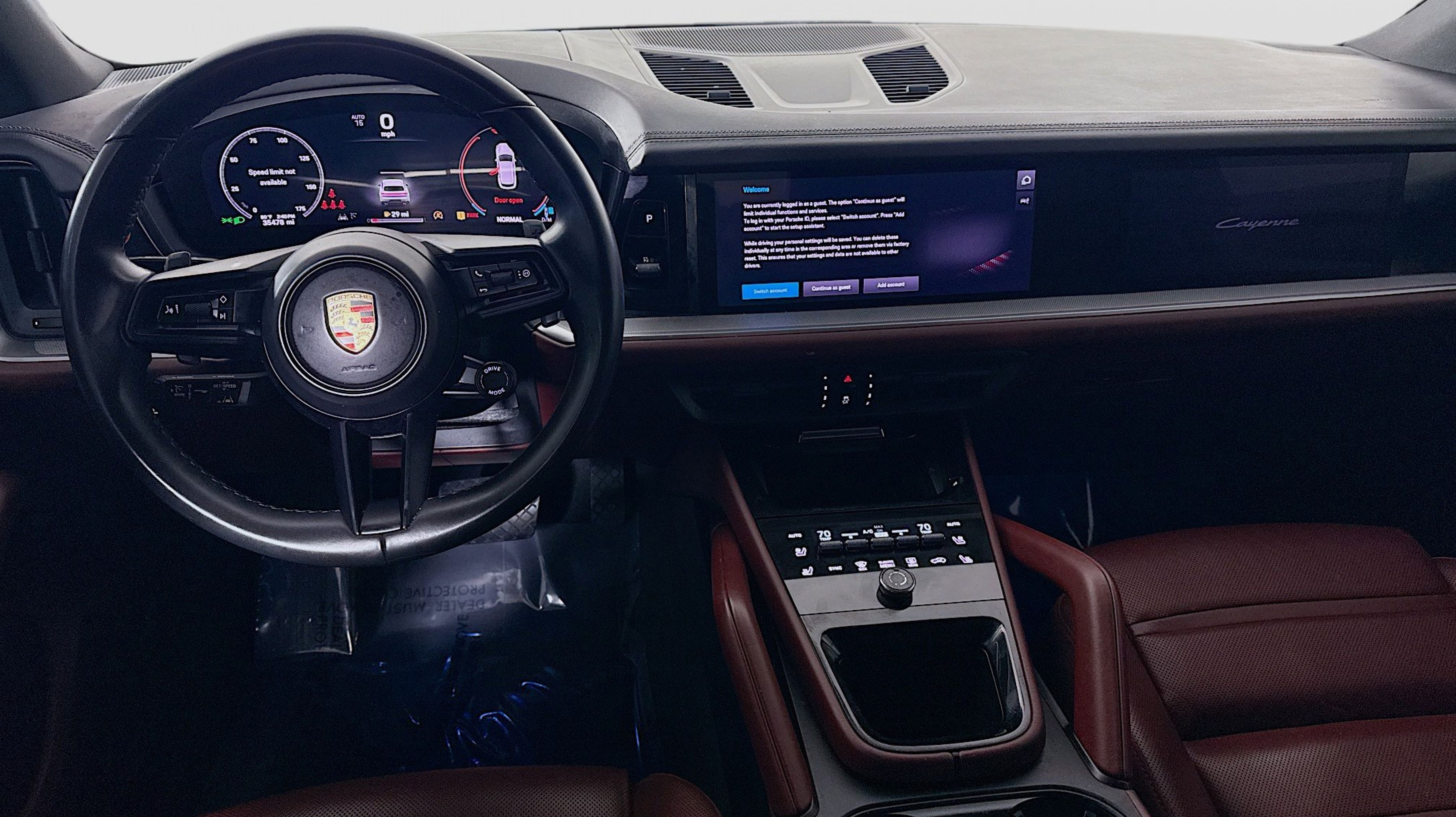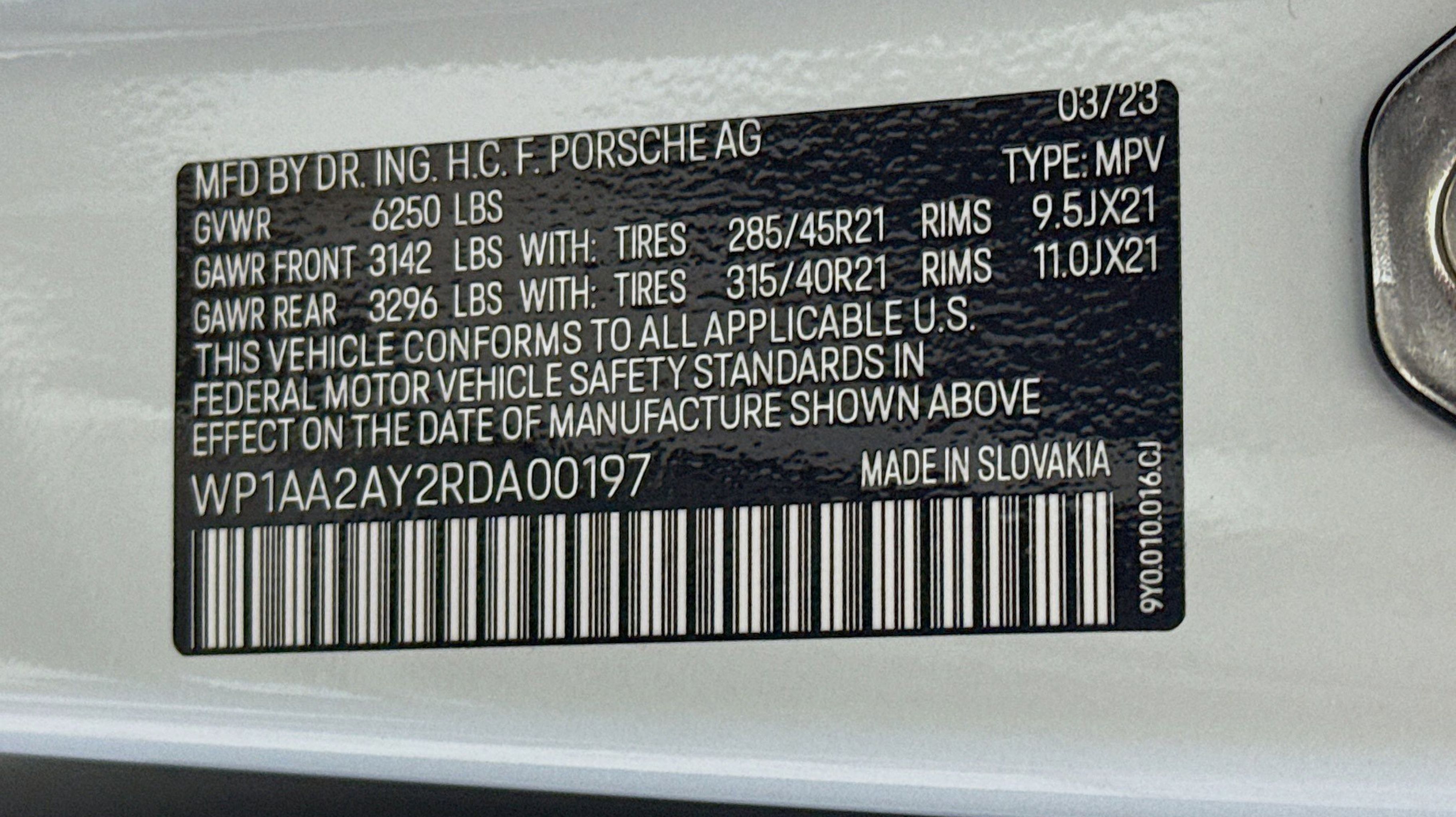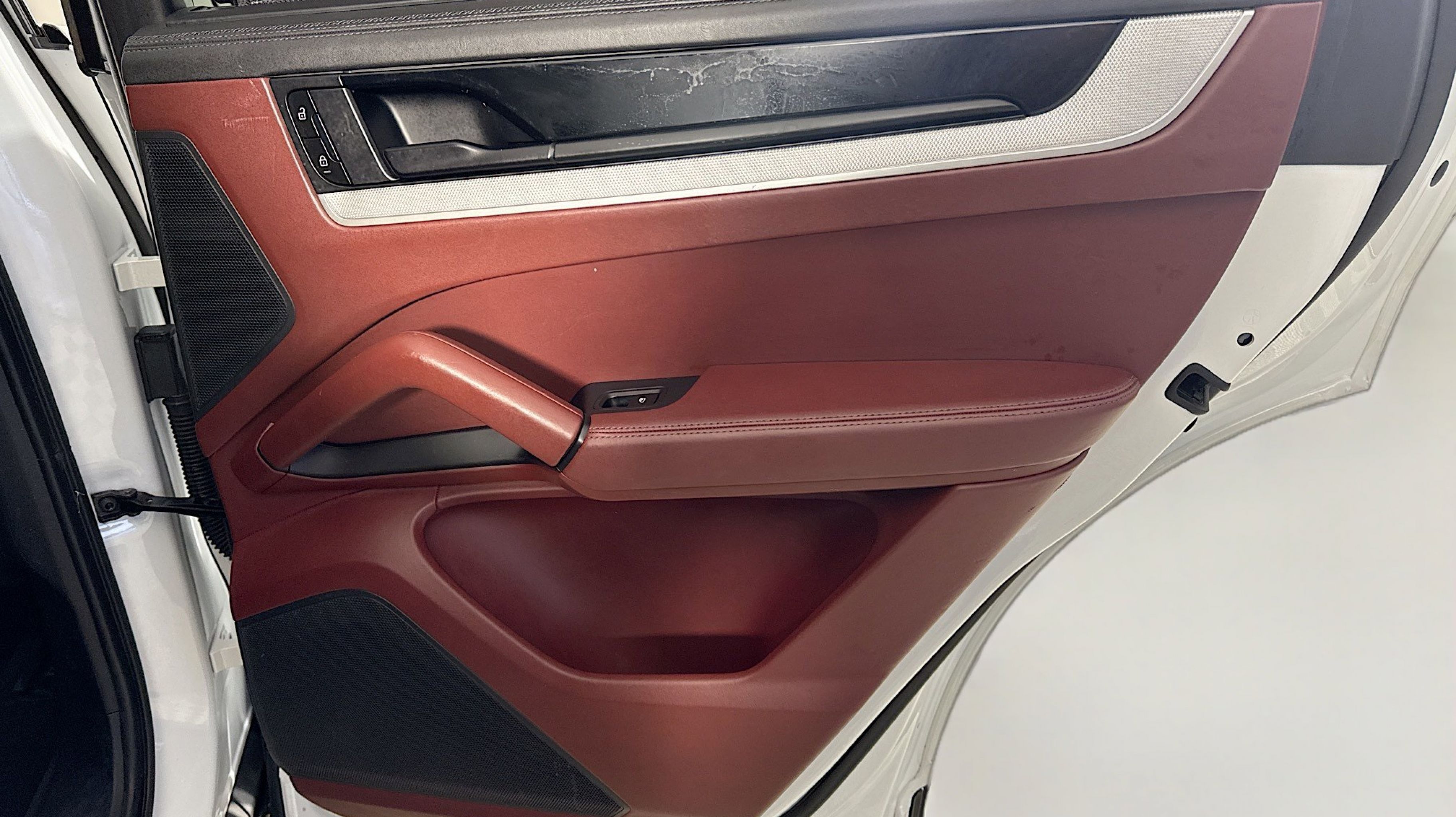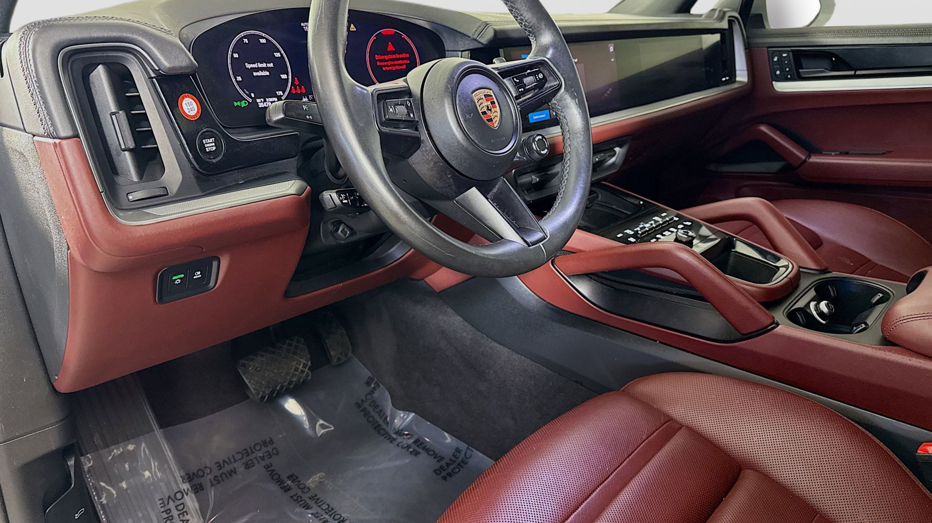White 2024 Porsche Cayenne AWD 8-Speed Automatic with Tiptronic 3.0L V6 Black/Bordeaux Red w/Leather Seat Trim w/Two-Tone Leather Interior, 10 Speakers, 4-Wheel Disc Brakes, 8-Way Power Seats, ABS brakes, Adaptive suspension, Air Conditioning, Alloy wheels, AM/FM radio: SiriusXM w/360L, Audio memory, Auto High-beam Headlights, Auto-dimming door mirrors, Auto-dimming Rear-View mirror, Automatic temperature control, Axle Ratio: 3.48, Brake assist, Bumpers: body-color, Compass, Delay-off headlights, Driver door bin, Driver vanity mirror, Dual front impact airbags, Dual front side impact airbags, Electronic Stability Control, Exterior Parking Camera Rear, Four wheel independent suspension, Front anti-roll bar, Front Bucket Seats, Front Center Armrest, Front dual zone A/C, Front reading lights, Fully automatic headlights, Garage door transmitter: HomeLink, Heated door mirrors, Heated front seats, HVAC memory, Illuminated entry, Knee airbag, Leather steering wheel, Low tire pressure warning, Memory seat, Navigation System, Occupant sensing airbag, Outside temperature display, Overhead airbag, Overhead console, Panic alarm, Partial Leather Seat Trim, Passenger door bin, Passenger vanity mirror, Porsche Communication Management, Power door mirrors, Power driver seat, Power Liftgate, Power passenger seat, Power steering, Power windows, Radio data system, Rain sensing wipers, Rear anti-roll bar, Rear fog lights, Rear reading lights, Rear seat center armrest, Rear side impact airbag, Rear window defroster, Rear window wiper, Remote keyless entry, Security system, Speed control, Speed-sensing steering, Split folding rear seat, Spoiler, Steering wheel mounted audio controls, Tachometer, Telescoping steering wheel, Tilt steering wheel, Traction control, Trip computer, Turn signal indicator mirrors, Variably intermittent wipers, Voltmeter, Wheels: 20 Cayenne Design, Black/Bordeaux Red w/Leather Seat Trim w/Two-Tone Leather Interior.