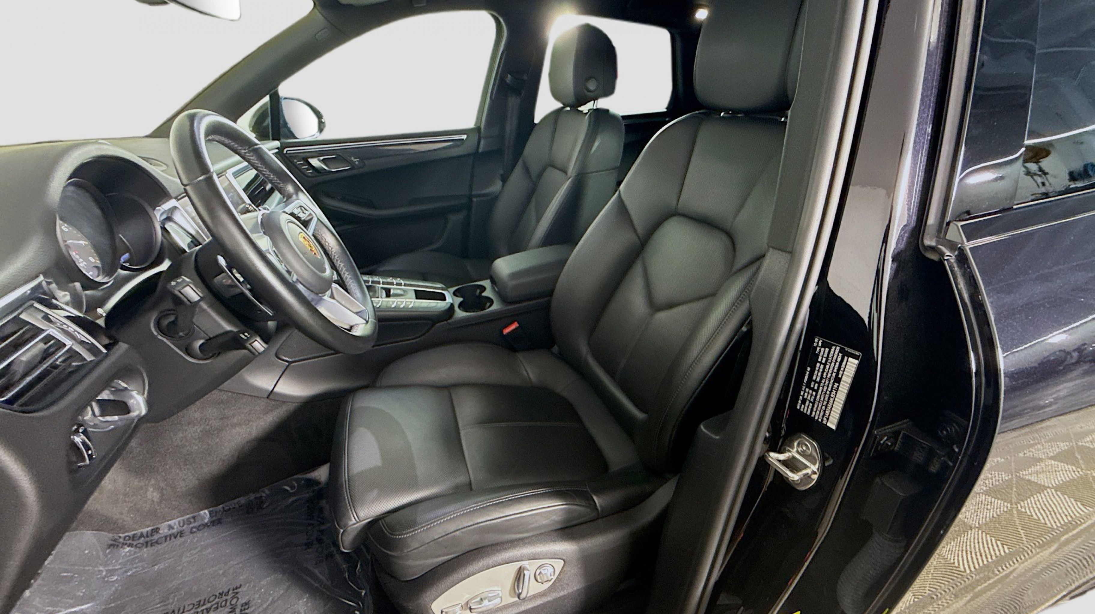 Black 2021 Porsche Macan S AWD 7-Speed Porsche Doppelkupplung (PDK) 3.0L V6 10 Speakers, 4-Wheel Disc Brakes, 8-Way Power Seats, ABS brakes, Air Conditioning, Alloy wheels, AM/FM radio: SiriusXM, Apple CarPlay, Automatic temperature control, Axle Ratio: 4.13, Brake assist, Bumpers: body-color, Delay-off headlights, Driver door bin, Driver vanity mirror, Dual front impact airbags, Dual front side impact airbags, Electronic Stability Control, Emergency communication system: Car Connect Services, Exterior Parking Camera Rear, Four wheel independent suspension, Front anti-roll bar, Front Bucket Seats, Front Center Armrest, Front dual zone A/C, Front fog lights, Front reading lights, Fully automatic headlights, Garage door transmitter: HomeLink, Heated door mirrors, Illuminated entry, Leather Shift Knob, Low tire pressure warning, Memory seat, Navigation System, Occupant sensing airbag, Outside temperature display, Overhead airbag, Overhead console, Panic alarm, Partial Leather Seat Trim w/Alcantara, Passenger door bin, Passenger vanity mirror, Porsche Communication Management, Power door mirrors, Power driver seat, Power Liftgate, Power passenger seat, Power steering, Power windows, Radio data system, Rain sensing wipers, Rear air conditioning, Rear anti-roll bar, Rear reading lights, Rear seat center armrest, Rear side impact airbag, Rear window defroster, Rear window wiper, Remote keyless entry, Security system, Speed control, Speed-sensing steering, Split folding rear seat, Spoiler, Sport steering wheel, Steering wheel mounted audio controls, Tachometer, Telescoping steering wheel, Tilt steering wheel, Traction control, Trip computer, Turn signal indicator mirrors, Variably intermittent wipers, Wheels: 19 Macan Design.