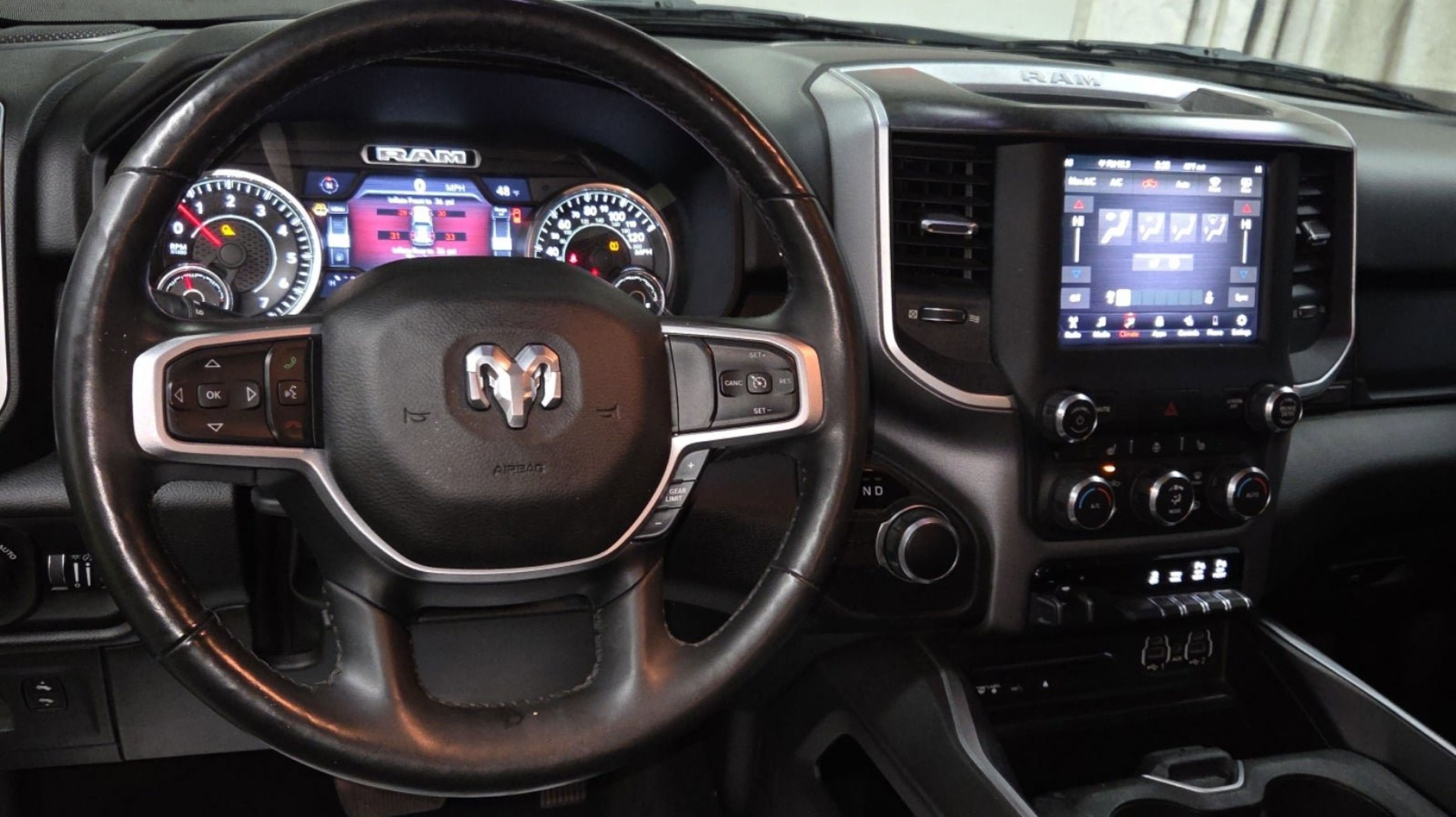 - BIG HORN LEVEL 2 EQUIPMENT GROUP -inc: Radio: Uconnect 4 w/8.4 Display Rear Window Defroster Integrated Center Stack Radio ParkSense Front/Rear Park Assist w/Stop Rear View Auto Dim Mirror Power Adjustable Pedals Rear Power Sliding Window Rear Dome w/On/Off Switch Lamp Glove Box Lamp Power 4-Way Driver Lumbar Adjust 115V Auxiliary Rear Power Outlet Power 8-Way Driver Seat 2 USB Full Function/Charge Only Media Hub Heated Front Seats Heated Steering Wheel 8.4 Touchscreen Display Foam Bottle Insert (Door Trim Panel) Class IV Receiver Hitch Dampened Tailgate Security Alarm Power Heated Fold Away Mirrors Big Horn IP Badge Remote Start System SiriusXM Satellite Radio 400W Inverter Air Conditioning ATC w/Dual Zone Control 115V Auxiliary Power Outlet Cluster 7.0 TFT Color Display Universal Garage Door Opener Single Disc Remote CD Player Sun Visors w/Illuminated Vanity Mirrors