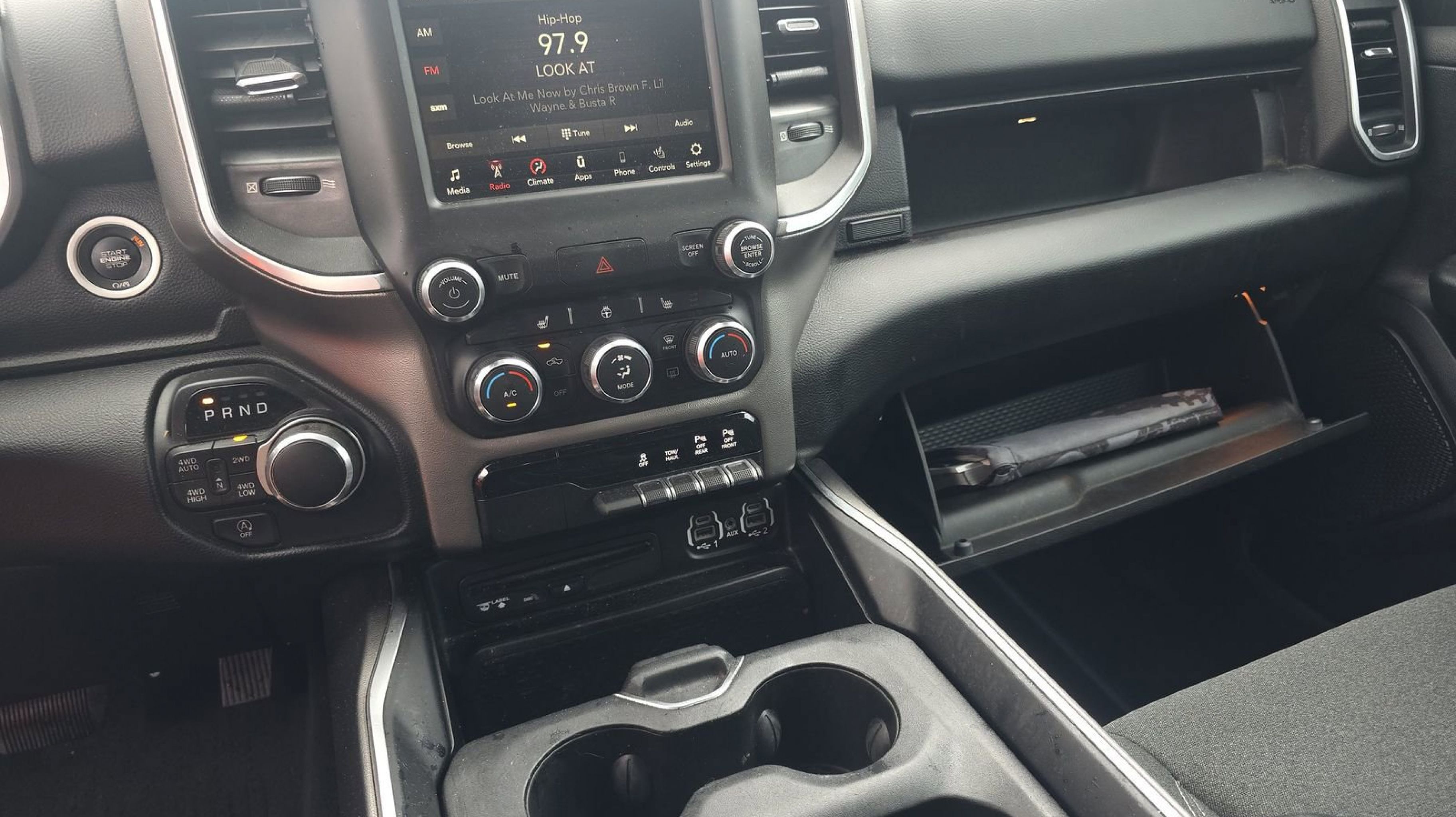 - BIG HORN LEVEL 2 EQUIPMENT GROUP -inc: Radio: Uconnect 4 w/8.4 Display Rear Window Defroster Integrated Center Stack Radio ParkSense Front/Rear Park Assist w/Stop Rear View Auto Dim Mirror Power Adjustable Pedals Rear Power Sliding Window Rear Dome w/On/Off Switch Lamp Glove Box Lamp Power 4-Way Driver Lumbar Adjust 115V Auxiliary Rear Power Outlet Power 8-Way Driver Seat 2 USB Full Function/Charge Only Media Hub Heated Front Seats Heated Steering Wheel 8.4 Touchscreen Display Foam Bottle Insert (Door Trim Panel) Class IV Receiver Hitch Dampened Tailgate Security Alarm Power Heated Fold Away Mirrors Big Horn IP Badge Remote Start System SiriusXM Satellite Radio 400W Inverter Air Conditioning ATC w/Dual Zone Control 115V Auxiliary Power Outlet Cluster 7.0 TFT Color Display Universal Garage Door Opener Single Disc Remote CD Player Sun Visors w/Illuminated Vanity Mirrors