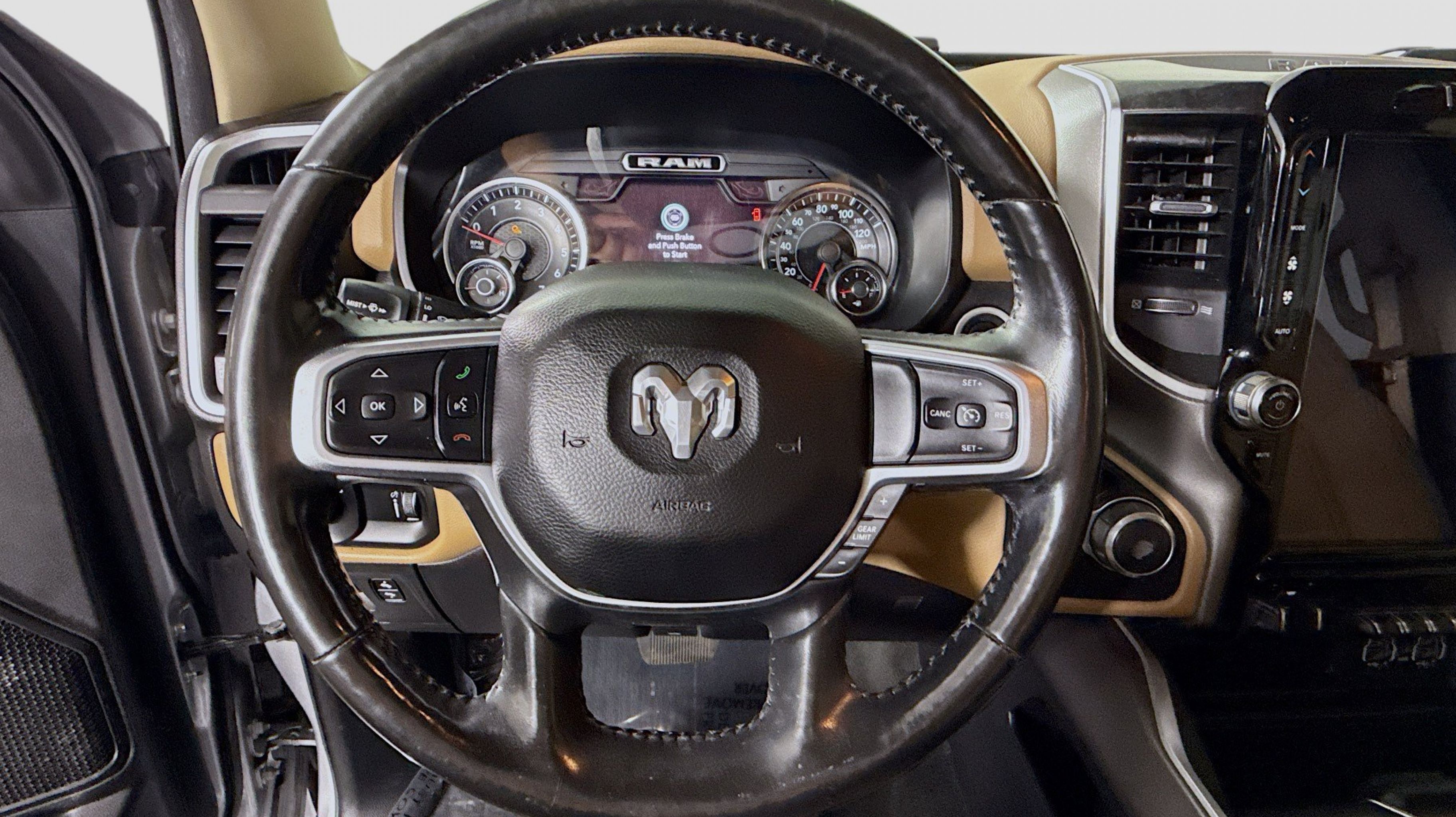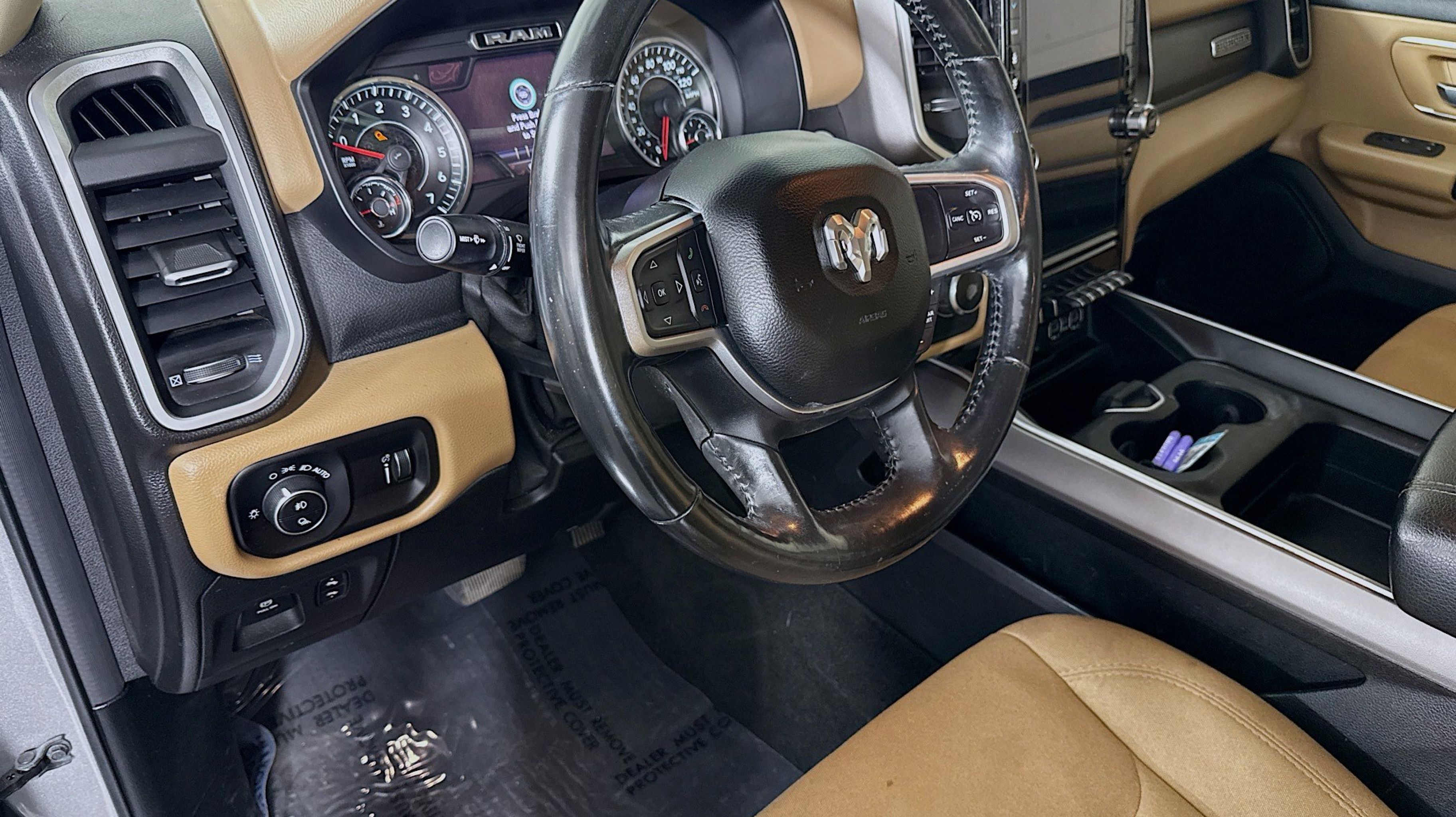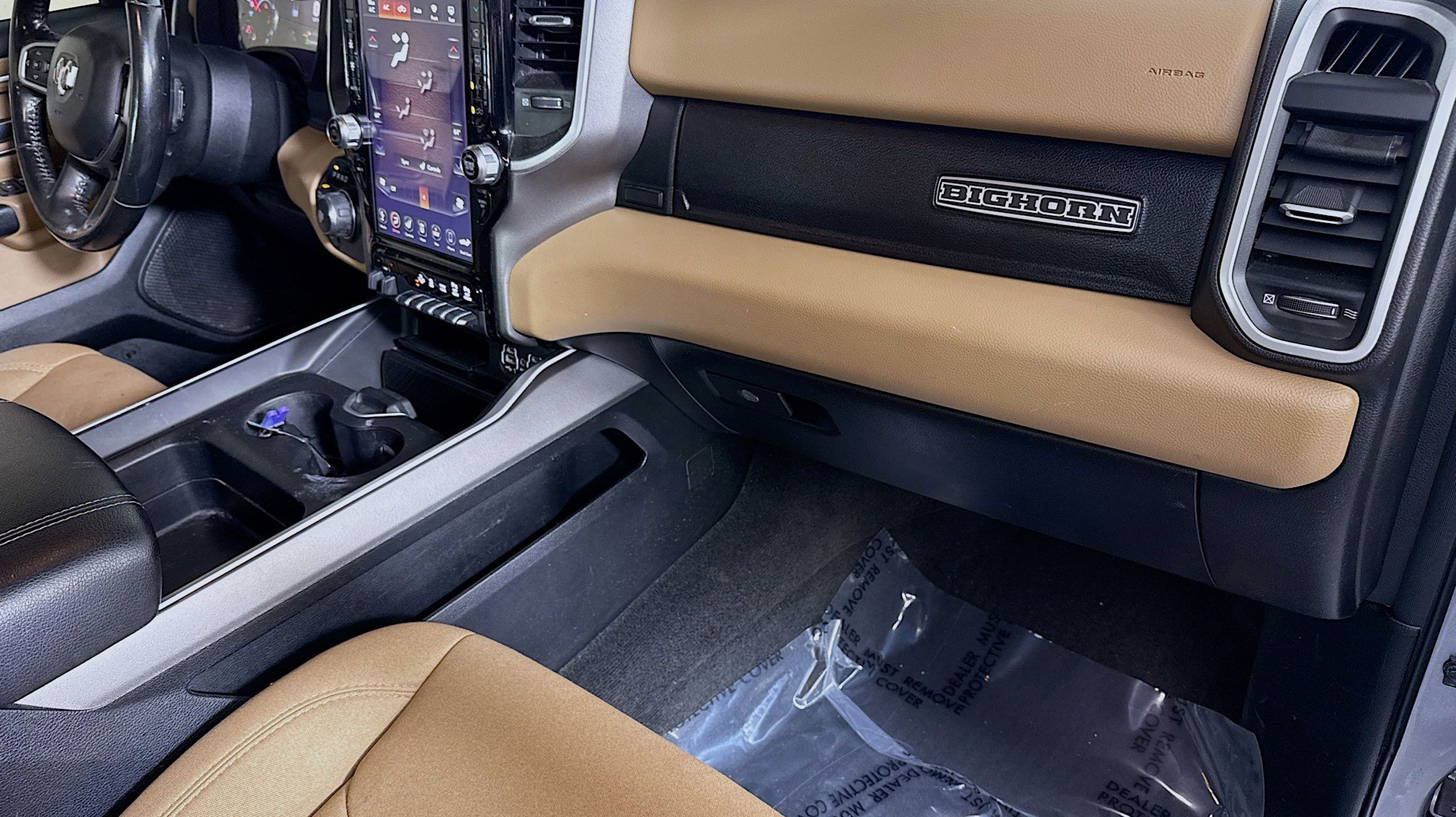 Clean CARFAX. 115V Auxiliary Power Outlet, 115V Auxiliary Rear Power Outlet, 2 USB Full Function/Charge Only Media Hub, 4 Adjustable Cargo Tie-Down Hooks, 400W Inverter, Add Class IV Receiver Hitch, Air Conditioning ATC w/Dual Zone Control, Auto-Dimming Rear-View Mirror, Bed Utility Group, Big Horn IP Badge, Big Horn Level 2 Equipment Group, Black Premium Power Mirrors, Black Trailer Tow Power Mirrors, Class IV Receiver Hitch, Cluster 7.0 TFT Color Display, Dampened Tailgate, Deployable Bed Step, Foam Bottle Insert (Door Trim Panel), Glove Box Lamp, Heated Front Seats, Heated Steering Wheel, ParkSense Front/Rear Park Assist w/Stop, Pick-Up Box Lighting, Power 4-Way Driver Lumbar Adjust, Power 8-Way Driver Seat, Power Adjustable Pedals, Quick Order Package 27Z Big Horn, Radio: Uconnect 4 w/8.4 Display, Rear Dome w/On/Off Switch Lamp, Rear Power Sliding Window, Rear Window Defroster, Security Alarm, SiriusXM Satellite Radio, Spray In Bedliner, Sun Visors w/Illuminated Vanity Mirrors, Trailer Brake Control, Trailer Tow Group, Universal Garage Door Opener, 1-Year SiriusXM Radio Service, 1-Yr SiriusXM Guardian Trial, 12 Touchscreen Display, 3 Rear Seat Head Restraints, 3.21 Rear Axle Ratio, 4 Way Front Headrests, 4-Corner Air Suspension, 4-Wheel Disc Brakes, 48V Belt Starter Generator, 4G LTE Wi-Fi Hot Spot, 5-Year SiriusXM Traffic Service, 5-Year SiriusXM Travel Link Service, 6 Speakers, 9 Amplified Speakers w/Subwoofer, ABS brakes, Air Conditioning, Alloy wheels, AM/FM radio, Anti-Spin Differential Rear Axle, Apple CarPlay, Brake assist, Bumpers: chrome, Cloth Bench Seat, Compass, Delay-off headlights, Disassociated Touchscreen Display, Driver door bin, Dual front impact airbags, Dual front side impact airbags, Electronic Stability Control, For Details, Visit DriveUconnect.com, Front & Rear Rubber Floor Mats, Front anti-roll bar, Front fog lights, Front reading lights, Front Seat Back Map Pockets, Front wheel independent suspension, Fully automatic headlights, Google Android Auto, GPS Antenna Input, GPS Navigation, HD Radio, Heated door mirrors, Illuminated entry, Integrated Center Stack Radio, Leather steering wheel, LED Footwell Lighting, Low tire pressure warning, Manual Adjust 4-Way Front Passenger Seat, Occupant sensing airbag, Outside temperature display, Overhead airbag, Overhead console, Panic alarm, ParkView Rear Back-Up Camera, Passenger door bin, Passenger vanity mirror, Power door mirrors, Power steering, Power Sunroof, Power windows, Radio data system, Radio: Uconnect 12 w/Navigation, Radio: Uconnect 3 w/5 Display, Rear 60/40 Folding Seat, Rear anti-roll bar, Rear seat center armrest, REAR SEAT Center Armrest w/Storage, Rear step bumper, Rear Wheelhouse Liners, Remote keyless entry, Remote Start System, SiriusXM Traffic Plus, SiriusXM Travel Link, SiriusXM w/360L, Speed control, Split folding rear seat, Steering wheel mounted audio controls, Tachometer, Telescoping steering wheel, Tilt steering wheel, Traction control, Trip computer, USB Host Flip, Variably intermittent wipers, Voltmeter, Wheel to Wheel Side Steps, Wheels: 18 x 8 Cast-Aluminum Painted, Wheels: 20 x 9 Aluminum Chrome Clad (WRK), 115V Auxiliary Power Outlet, 115V Auxiliary Rear Power Outlet, 2 USB Full Function/Charge Only Media Hub, 4 Adjustable Cargo Tie-Down Hooks, 400W Inverter, Add Class IV Receiver Hitch, Air Conditioning ATC w/Dual Zone Control, Auto-Dimming Rear-View Mirror, Bed Utility Group, Big Horn IP Badge, Big Horn Level 2 Eq