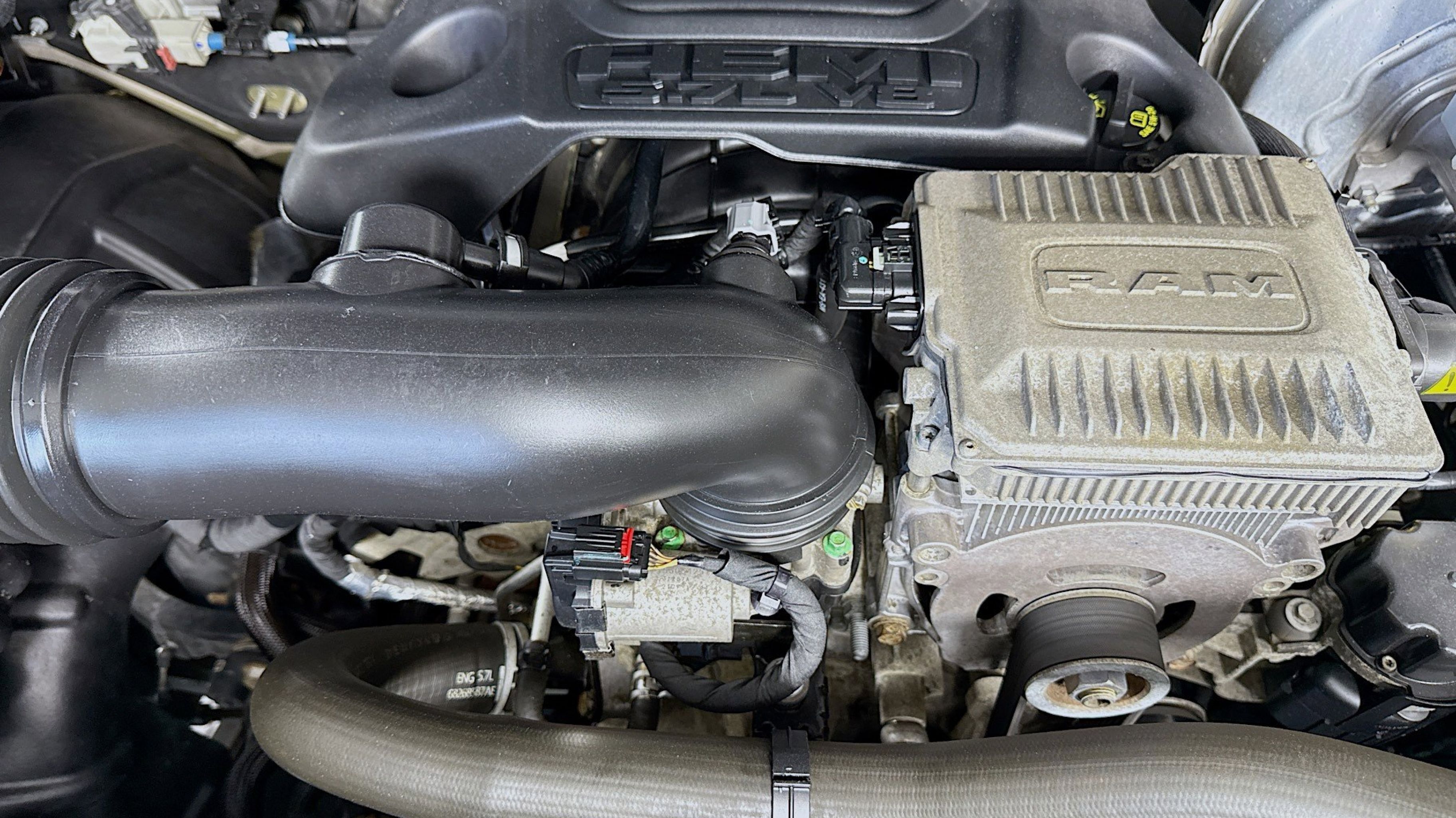 - ENGINE: 5.7L V8 HEMI MDS VVT ETORQUE -inc: Active Noise Control System Heavy Duty Engine Cooling GVWR: 7 100 lbs Dual Rear Exhaust w/Bright Tips HEMI badge 600W Engine Cooling Fan 26 Gallon Fuel Tank