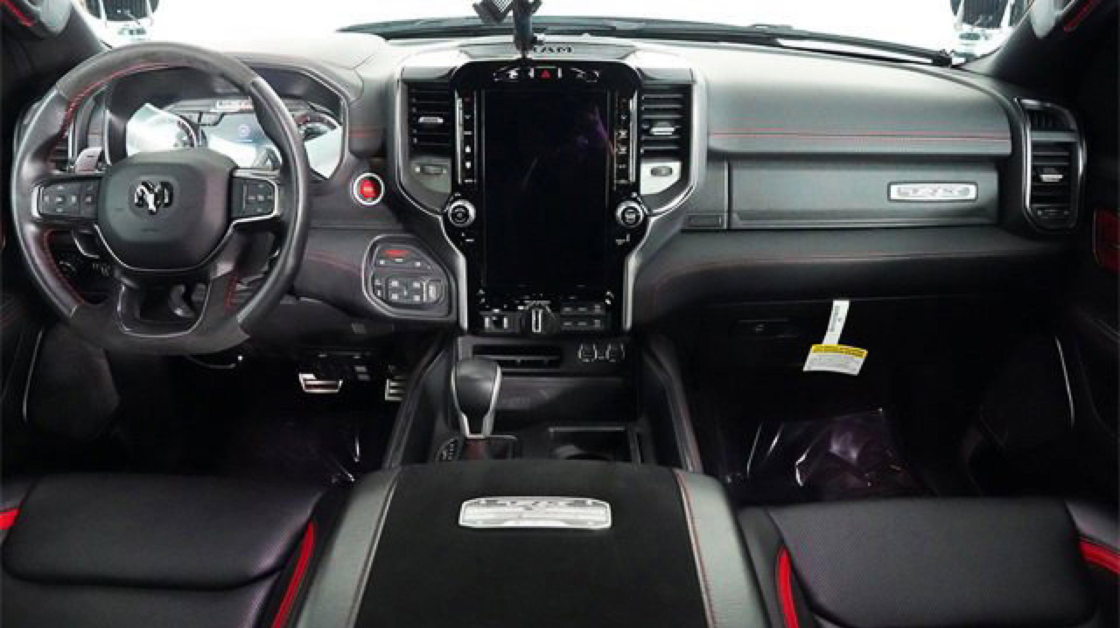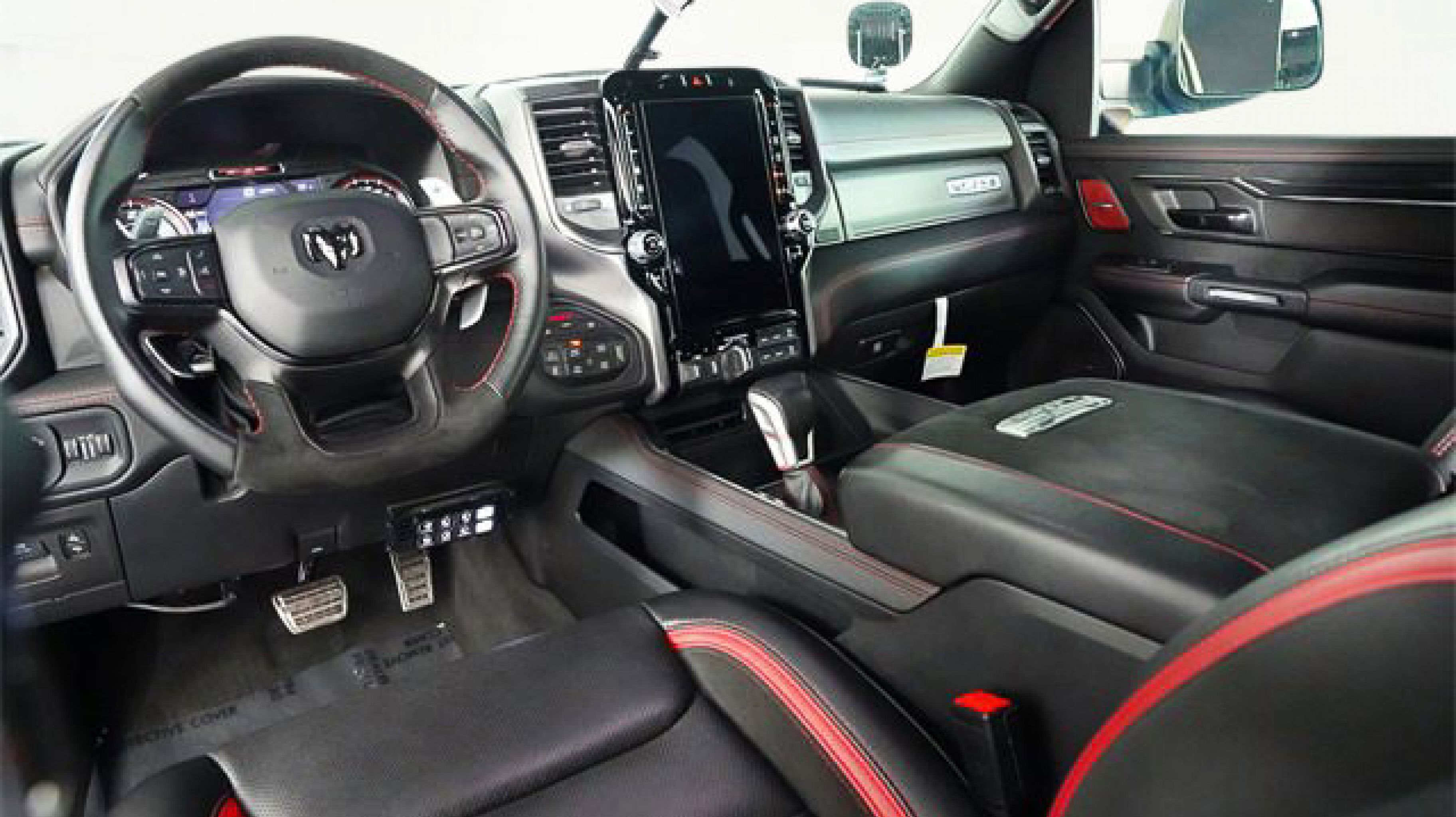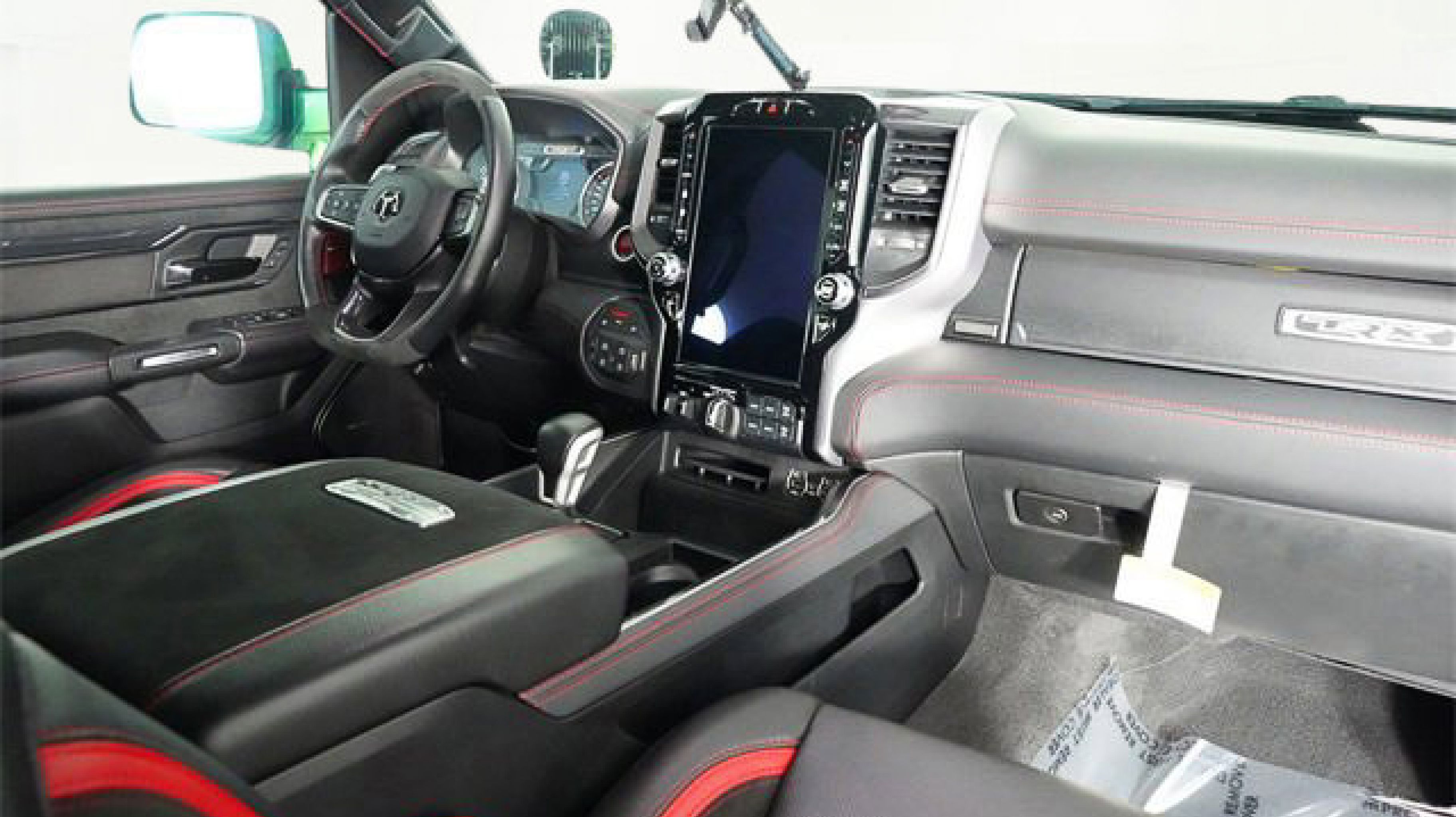 #2 Seat Foam Cushion, 10 Speakers, 2-Door Passive Entry, Front Door Locks, 3.55 Rear Axle Ratio, 4 Way Front Headrests, 4-Wheel Disc Brakes, ABS brakes, Adaptive suspension, Air Conditioning, Alloy wheels, AM/FM radio: SiriusXM with 360L, Apple CarPlay/Android Auto, Auto High-beam Headlights, Auto-dimming door mirrors, Auto-dimming Rear-View mirror, Automatic temperature control, Bed Utility Group, Black Exterior Mirrors, Black Power-Fold Trailer Tow Mirrors, Blind Spot & Cross Path Detection, Body Color Door Handles, Brake assist, Bucket Seats, Center Console Parts Module, Cloth/Vinyl Bucket Seats, Compass, Delay-off headlights, Digital Rearview Mirror, Dome Dual LED Reading Lamp, Driver door bin, Driver Seat Memory, Driver/Passenger Wrapped Assist Handles, Dual front impact airbags, Dual front side impact airbags, Dual-Pane Panoramic Sunroof, Electronic Stability Control, Engine Block Heater, Exterior Mirrors Courtesy Lamps, Exterior Mirrors w/Heating Element, Exterior Mirrors w/Memory, Exterior Mirrors w/Supplemental Signals, Front anti-roll bar, Front Bucket Seats, Front Center Armrest w/Storage, Front Door Accent Lighting, Front dual zone A/C, Front fog lights, Front License Plate Bracket, Front reading lights, Front Seat Back Map Pockets, Front wheel independent suspension, Full Length Premium Upgraded Floor Console, Fully automatic headlights, harman/kardon 19 Speaker Premium Sound, Heads-Up Display, Heated door mirrors, Heated Front Seats, Heated Second Row Seats, Heated Steering Wheel, Illuminated entry, IP LED Ambient Light Pipe, Leather Shift Knob, Leather steering wheel, Leather Trimmed Bucket Seats, Leather/Suede Flat-Bottom Steering Wheel, LED CHMSL Lamp, Low tire pressure warning, Luxury Front Door Trim Panel, Mirror Clearance/Running Lights, Mirror-Mounted Aux Reverse Lamps, MOPAR 4 Adjustable Cargo Tie-Down Hooks, MOPAR Bright Pedal Kit, MOPAR Deployable Bed Step, MOPAR Rock Rails, MOPAR Spray In Bedliner, Navigation System, Occupant sensing airbag, Outside temperature display, Overhead airbag, Overhead console, Panic alarm, ParkSense Front/Rear Park Assist w/Stop, ParkView Rear Back-Up Camera, Passenger door bin, Passenger vanity mirror, Pick-Up Box Lighting, Power 4-Way Driver Lumbar Adjust, Power 4-Way Passenger Lumbar Adjust, Power 8-Way Driver & Passenger Seats, Power Adjustable Pedals w/Memory, Power door mirrors, Power driver seat, Power steering, Power windows, Power-Folding Mirrors, Premium Wrapped IP Bezel, Quick Order Package 29Y, Radio data system, Radio: Uconnect 5 Nav w/12.0 Display, Radio/Driver Seat/Mirrors/Pedals Memory, Rain Sensitive Windshield Wipers, Rear 60/40 Folding Seat, Rear 60/40 Folding Split Recline Seat, Rear Door Accent Lighting, Rear seat center armrest, Rear step bumper, Rear Underseat Compartment Storage, Rear Window Defroster, Remote keyless entry, Remote Tailgate Release, Security system, Speed control, Split folding rear seat, Sport steering wheel, Steering wheel mounted audio controls, Sun Visors w/Illuminated Vanity Mirrors, Surround View Camera System, Tachometer, Telescoping steering wheel, Tilt steering wheel, Traction control, Trailer Brake Control, Trailer Light Check, Trailer Reverse Steering Control, Trailer Tow Group (B) (DISC), Trailer Tow Mirrors, Trip computer, TRX Level 2 Equipment Group, TRX Red Interior Accents, Turn signal indicator mirrors, Universal Garage Door Opener, Variably intermittent wipers, Ventilated Front Seats, Ventilated Rear Seats, Volt