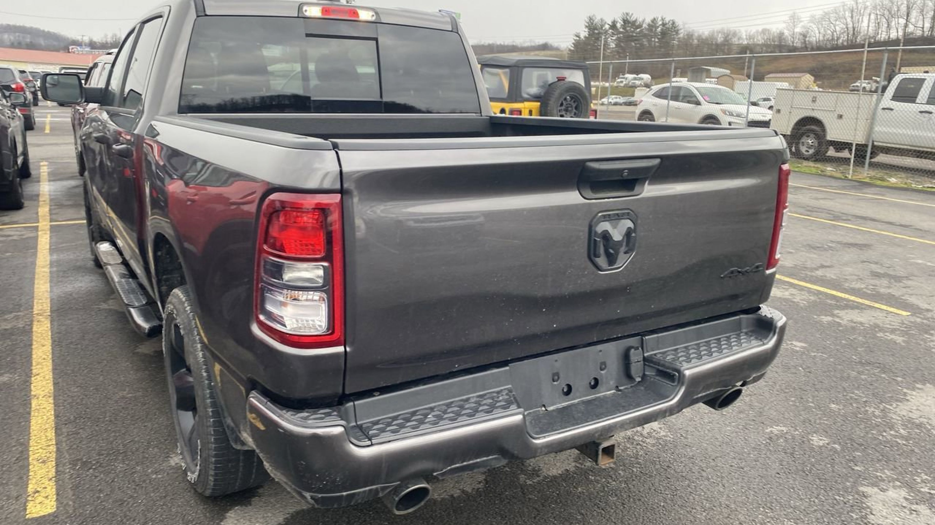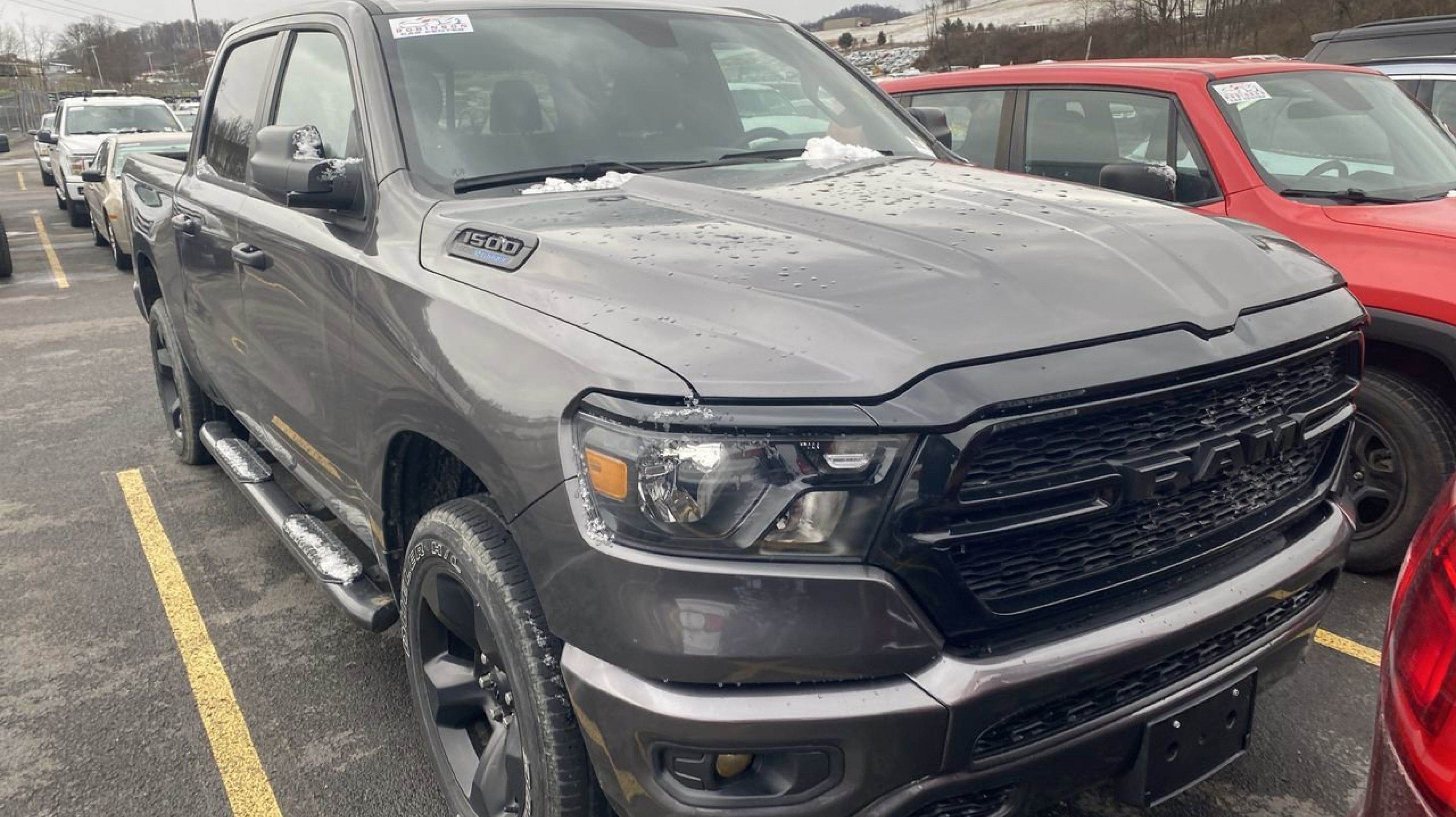 Granite Crystal Metallic Clearcoat 2023 Ram 1500 Tradesman 4WD 8-Speed Automatic HEMI 5.7L V8 Multi Displacement VVT eTorque 2nd Row In Floor Storage Bins, 3 Rear Seat Head Restraints, 4 Way Front Headrests, 40/20/40 Split Bench Seat, Anti-Spin Differential Rear Axle, Black Exterior Truck Badging, Black Interior Accents, Body Color Front Bumper, Body Color Rear Bumper w/Step Pads, Carpet Floor Covering, Cloth 40/20/40 Bench Seat, Front & Rear Floor Mats, Front Center Seat Cushion Storage, Front Fog Lamps, Grille Black Surround Black Mesh, Manual Adjust 4-Way Driver Seat, Manual Adjust 4-Way Front Passenger Seat, Night Edition, Quick Order Package 27A Tradesman, RAM Grille Badge - Black, Rear Folding Seat, Rear Power Sliding Window, SiriusXM Satellite Radio, Tradesman Level 1 Equipment Group, Wheels: 20 x 9 Cast Aluminum Black, 33 Gallon Fuel Tank, 4-Wheel Disc Brakes, 48V Belt Starter Generator, 6 Speakers, ABS brakes, Air Conditioning, AM/FM radio, Black Exterior Mirrors, Brake assist, Class IV Receiver Hitch, Compass, Delay-off headlights, Driver door bin, Dual front impact airbags, Dual front side impact airbags, Electronic Stability Control, Emergency communication system: SiriusXM Guardian, Exterior Mirrors w/Heating Element, For Details, Visit DriveUconnect.com, Front anti-roll bar, Front Center Armrest, Front License Plate Bracket, Front reading lights, Front wheel independent suspension, Fully automatic headlights, Global Telematics Box Module (TBM), GPS Antenna Input, Heated door mirrors, Heavy Duty Vinyl 40/20/40 Split Bench Seat, Illuminated entry, Low tire pressure warning, Occupant sensing airbag, Outside temperature display, Overhead airbag, Overhead console, Panic alarm, ParkView Rear Back-Up Camera, Passenger door bin, Passenger vanity mirror, Power door mirrors, Power steering, Power windows, Radio data system, Radio: Uconnect 3 w/5 Display, RAM Grille Badge - Chrome, Rear anti-roll bar, Rear step bumper, Remote keyless entry, Speed control, Tachometer, Telescoping steering wheel, Tilt steering wheel, Traction control, Trailer Brake Control, Variably intermittent wipers, Voltmeter, Wheels: 18 x 7.5 Steel Painted, 2nd Row In Floor Storage Bins, 3 Rear Seat Head Restraints, 4 Way Front Headrests, 40/20/40 Split Bench Seat, Anti-Spin Differential Rear Axle, Black Exterior Truck Badging, Black Interior Accents, Body Color Front Bumper, Body Color Rear Bumper w/Step Pads, Carpet Floor Covering, Cloth 40/20/40 Bench Seat, Front & Rear Floor Mats, Front Center Seat Cushion Storage, Front Fog Lamps, Grille Black Surround Black Mesh, Manual Adjust 4-Way Driver Seat, Manual Adjust 4-Way Front Passenger Seat, Night Edition, Quick Order Package 27A Tradesman, RAM Grille Badge - Black, Rear Folding Seat, Rear Power Sliding Window, SiriusXM Satellite Radio, Tradesman Level 1 Equipment Group, Wheels: 20 x 9 Cast Aluminum Black.