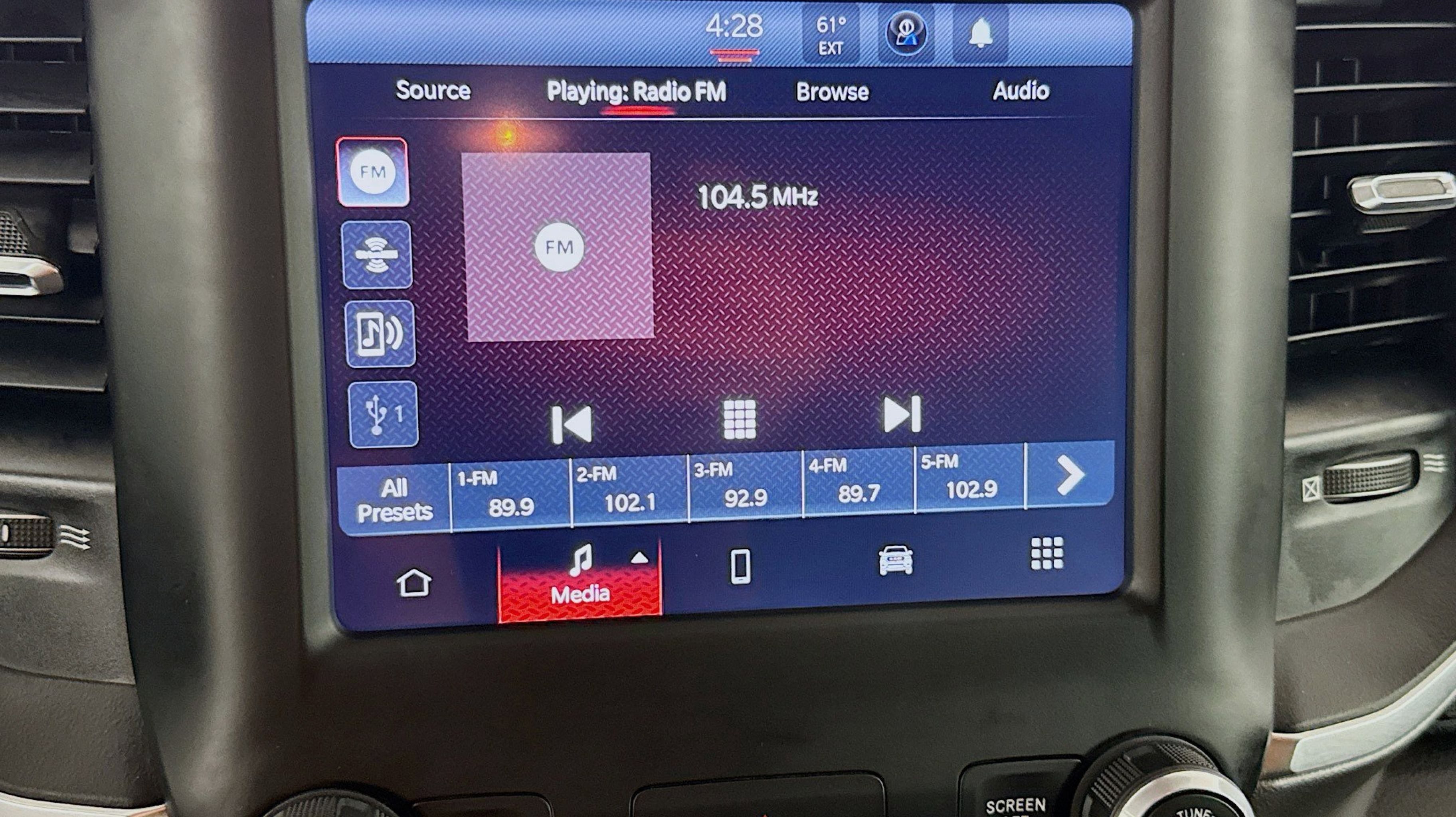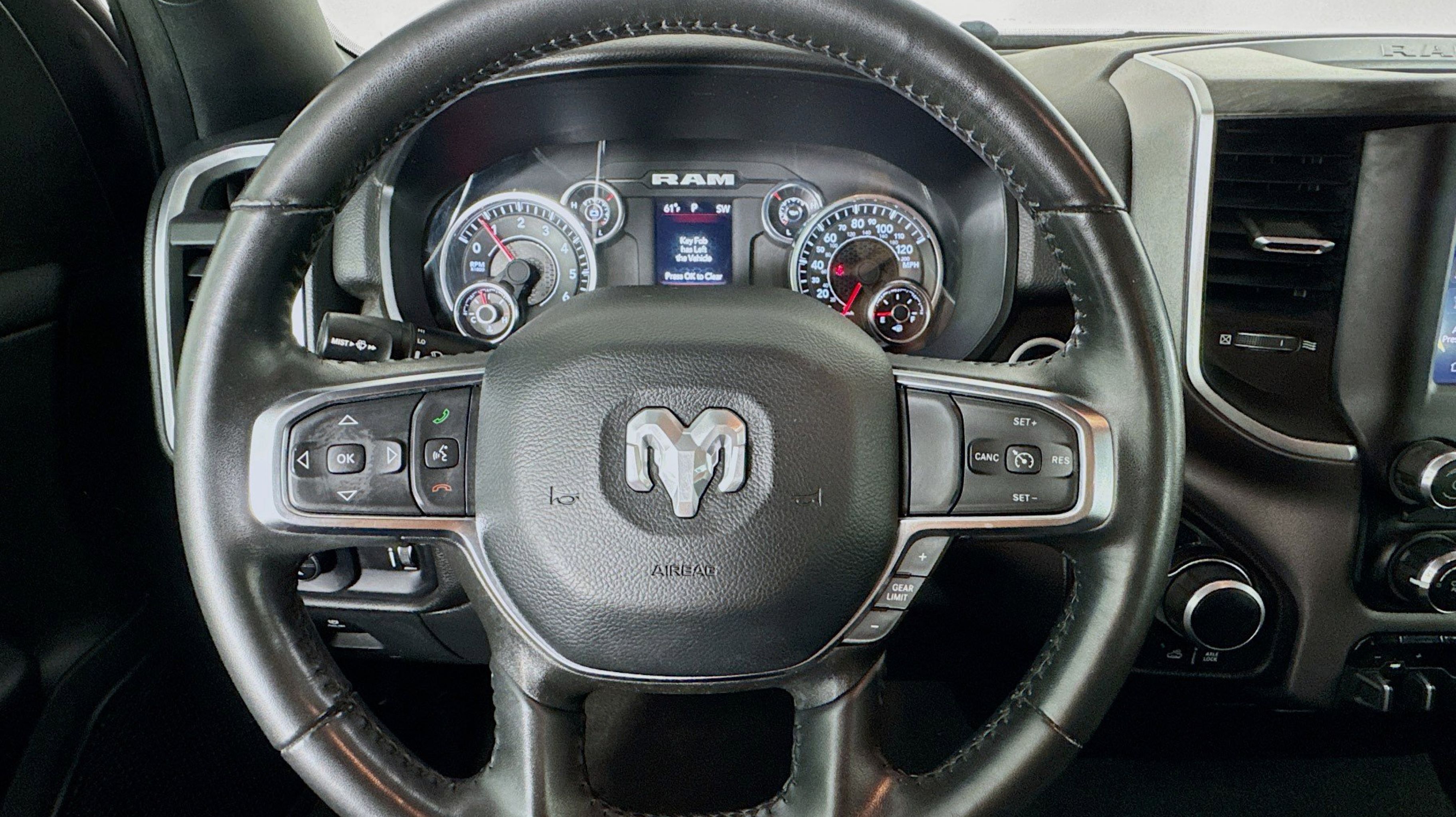 - BIG HORN LEVEL 1 EQUIPMENT GROUP -inc: Google Android Auto SiriusXM Radio Service Bluetooth Handsfree Phone & Audio USB Host Flip Rear Window Defroster Rear View Auto Dim Mirror For More Info Call 800-643-2112 Rear Power Sliding Window Rear Dome w/On/Off Switch Lamp Front Fog Lamps Connectivity - US/Canada Glove Box Lamp 4G LTE Wi-Fi Hot Spot Auto Dim Exterior Driver Mirror Heated Front Seats Radio: Uconnect 5 W w/8.4 Display Heated Steering Wheel Class IV Receiver Hitch Black Premium Power Mirrors Apple CarPlay Big Horn IP Badge SiriusXM Satellite Radio Exterior Mirrors w/Supplemental Signals Exterior Mirrors Courtesy Lamps Passenger Sun Visor w/Illuminated Mirror Electric Shift On Demand Transfer Case Power-Folding Mirrors 2nd Row In Floor Storage Bins