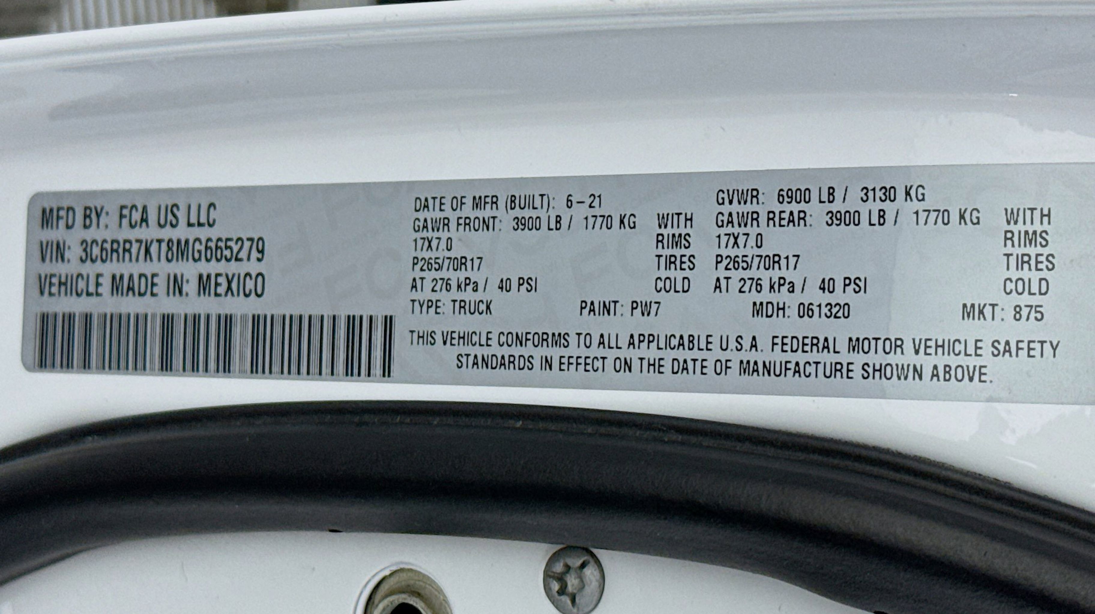 - GVWR: 6 900 LBS