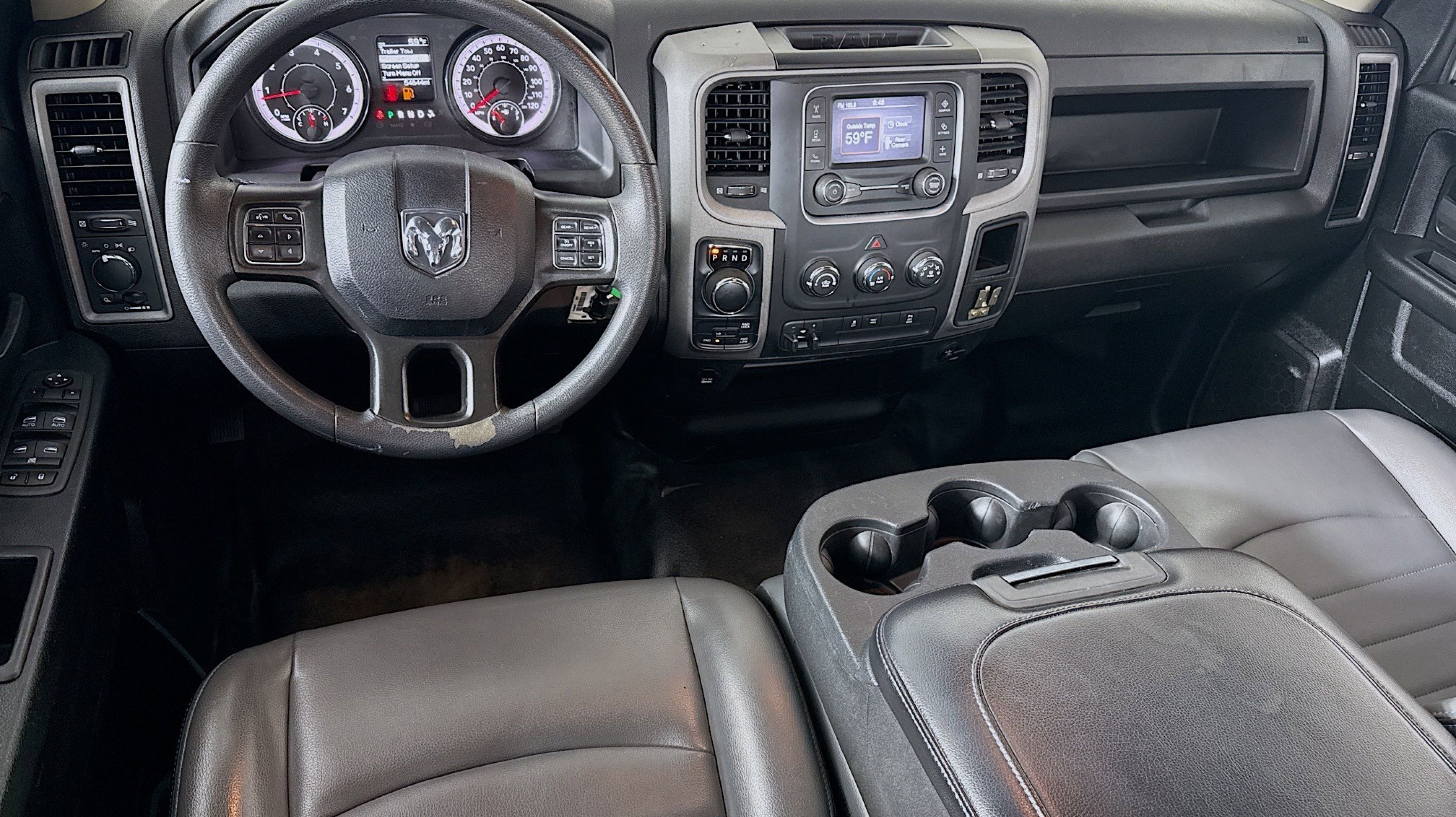 17 x 7 Aluminum Wheels, Black Exterior Mirrors, Bright Front Bumper, Bright Grille, Bright Rear Bumper, Center Hub, Chrome Appearance Group, Class IV Receiver Hitch, Exterior Mirrors Courtesy Lamps, Exterior Mirrors w/Heating Element, Exterior Mirrors w/Supplemental Signals, Power Black Trailer Tow Mirrors, Protection Group, Quick Order Package 29B Tradesman, Tow Hooks, Tradesman Package, Trailer Brake Control, Trailer Tow Group, Trailer Tow Mirrors, 17 x 7 Steel Wheels, 3.21 Rear Axle Ratio, 4-Wheel Disc Brakes, 40/20/40 Split Bench Seat, 6 Speakers, ABS brakes, Active Grille Shutters, Add Electronic Stability Control, Air Conditioning, AM/FM radio, Anti-Spin Differential Rear Axle, Audio Input Jack for Mobile Devices, Brake assist, Charge Only Remote USB Port, Compass, Delay-off headlights, Driver door bin, Dual front impact airbags, Dual front side impact airbags, Electronic Shift, Electronic Stability Control, Engine Calibration Flash, V2, Front anti-roll bar, Front Armrest w/3 Cupholders, Front Center Armrest, Front License Plate Bracket, Front wheel independent suspension, Fully automatic headlights, GPS Antenna Input, Heated door mirrors, Heavy Duty Vinyl 40/20/40 Split Bench Seat, Integrated Voice Command w/Bluetooth, Low tire pressure warning, Manual Adjust Seats, Manufacturer's Statement of Origin, MOPAR Spray In Bedliner, Occupant sensing airbag, Outside temperature display, Overhead airbag, Overhead console, ParkSense Rear Park Assist System, ParkView Rear Back-Up Camera, Passenger door bin, Power door mirrors, Power steering, Power windows, Radio data system, Radio: Uconnect 3 w/5 Display, Rear anti-roll bar, Rear Folding Seat, Rear step bumper, Remote Keyless Entry w/All-Secure, Remote USB Port, Rotary Shifter-Black, Speed control, Tachometer, Tilt steering wheel, Tip Start, Traction control, Variably intermittent wipers, Voltmeter, 17 x 7 Aluminum Wheels, Black Exterior Mirrors, Bright Front Bumper, Bright Grille, Bright Rear Bumper, Center Hub, Chrome Appearance Group, Class IV Receiver Hitch, Exterior Mirrors Courtesy Lamps, Exterior Mirrors w/Heating Element, Exterior Mirrors w/Supplemental Signals, Power Black Trailer Tow Mirrors, Protection Group, Quick Order Package 29B Tradesman, Tow Hooks, Tradesman Package, Trailer Brake Control, Trailer Tow Group, Trailer Tow Mirrors. Odometer is 15063 miles below market average!
