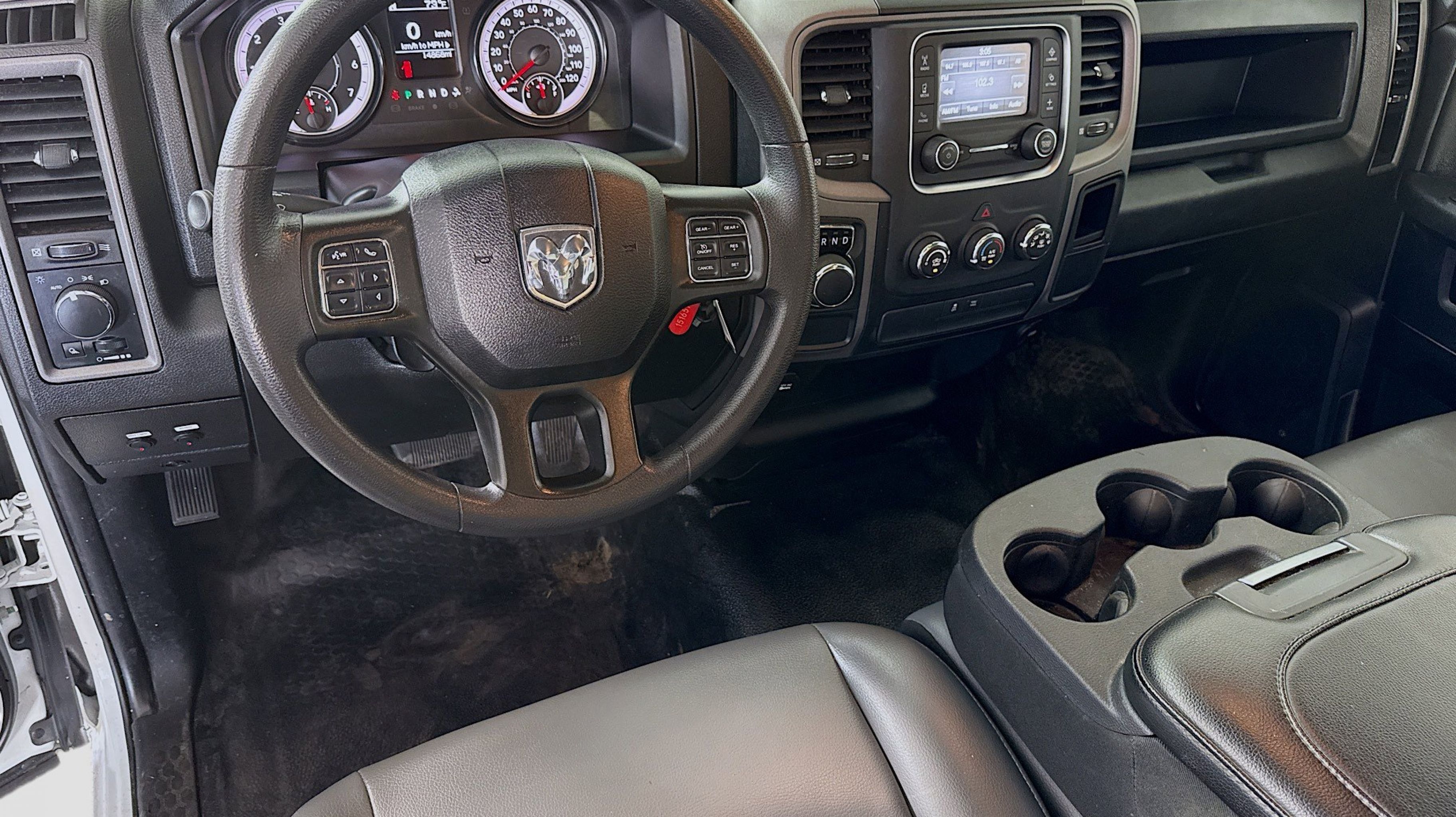 CARFAX One-Owner. Clean CARFAX. Black Exterior Mirrors, Exterior Mirrors w/Heating Element, Power & Remote Entry Group, Power Heated Fold-Away Mirrors, Power Locks, Power Windows w/Front 1-Touch Down, Premium Vinyl Door Trim w/Map Pocket, Quick Order Package 29B Tradesman, Remote Keyless Entry w/All-Secure, Tradesman Package, 17 x 7 Steel Wheels, 3.21 Rear Axle Ratio, 4-Wheel Disc Brakes, 40/20/40 Split Bench Seat, 6 Speakers, ABS brakes, Active Grille Shutters, Air Conditioning, AM/FM radio, Audio Input Jack for Mobile Devices, Brake assist, Center Hub, Class IV Receiver Hitch, Compass, Delay-off headlights, Driver door bin, Dual front impact airbags, Dual front side impact airbags, Electronic Shift, Electronic Stability Control, Engine Calibration Flash, V2, Front anti-roll bar, Front Armrest w/3 Cupholders, Front Center Armrest, Front License Plate Bracket, Front wheel independent suspension, Fully automatic headlights, GPS Antenna Input, Heavy Duty Vinyl 40/20/40 Split Bench Seat, Integrated Voice Command w/Bluetooth, Low tire pressure warning, Manual Adjust Seats, MOPAR Spray In Bedliner, Occupant sensing airbag, Outside temperature display, Overhead airbag, Overhead console, ParkView Rear Back-Up Camera, Passenger door bin, Power steering, Radio data system, Radio: Uconnect 3 w/5 Display, Rear step bumper, Remote USB Port, Rotary Shifter-Black, Speed control, Tachometer, Tilt steering wheel, Tip Start, Traction control, Variably intermittent wipers, Voltmeter, Black Exterior Mirrors, Exterior Mirrors w/Heating Element, Power & Remote Entry Group, Power Heated Fold-Away Mirrors, Power Locks, Power Windows w/Front 1-Touch Down, Premium Vinyl Door Trim w/Map Pocket, Quick Order Package 29B Tradesman, Remote Keyless Entry w/All-Secure, Tradesman Package. Odometer is 42827 miles below market average!
