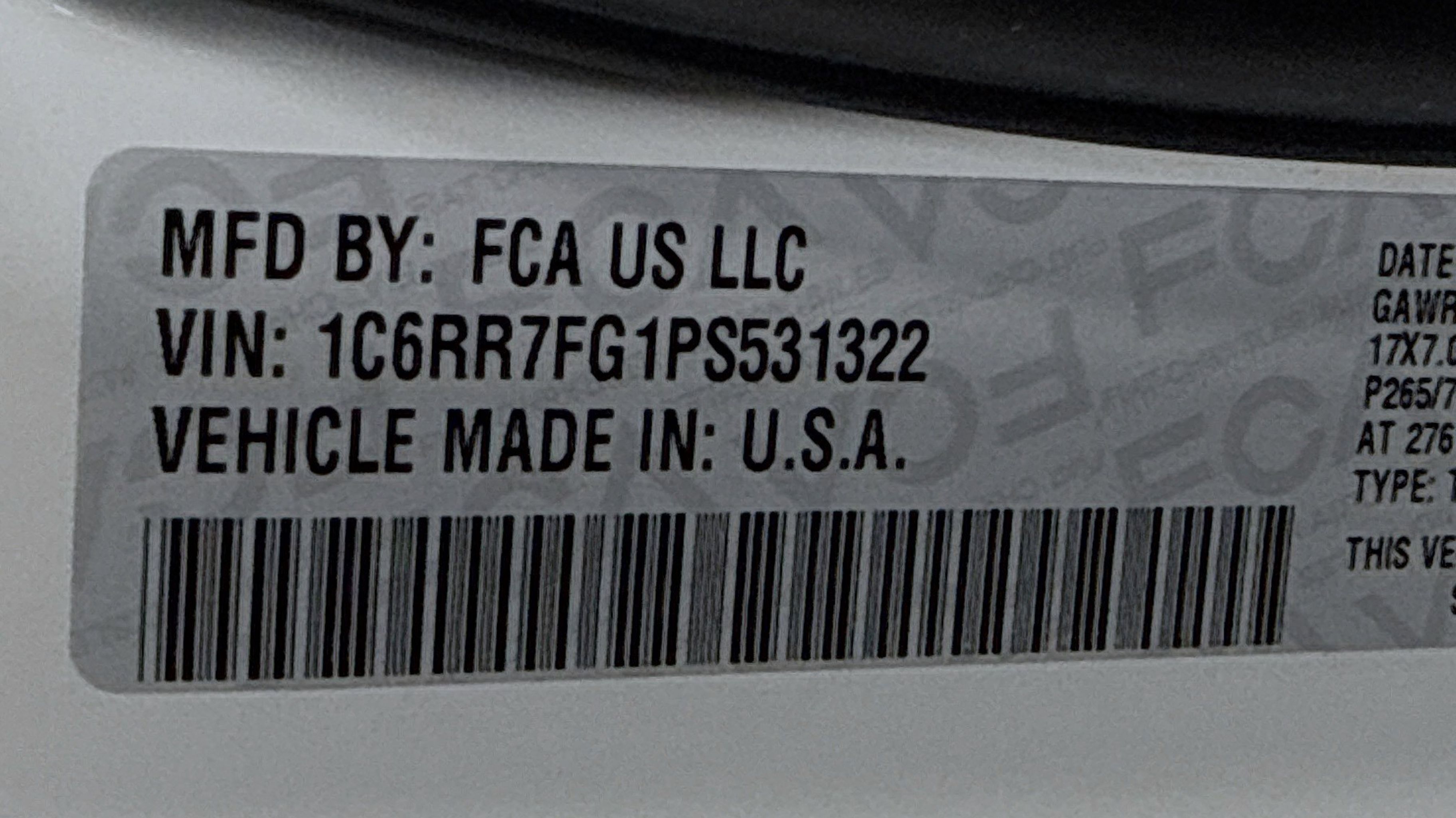 - TIRES: P265/70R17 BSW AS (STD)