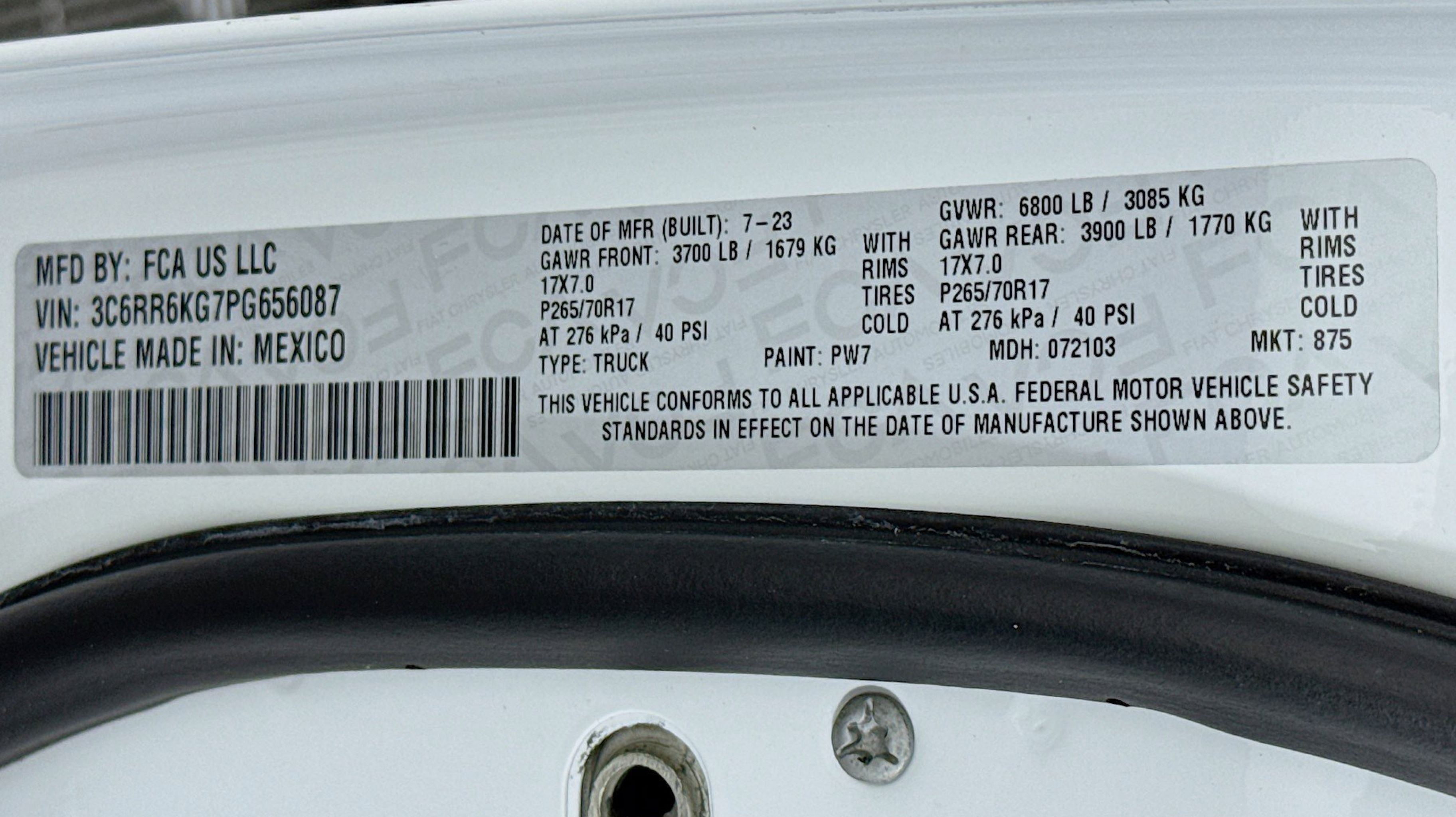 - GVWR: 6 800 LBS (STD)