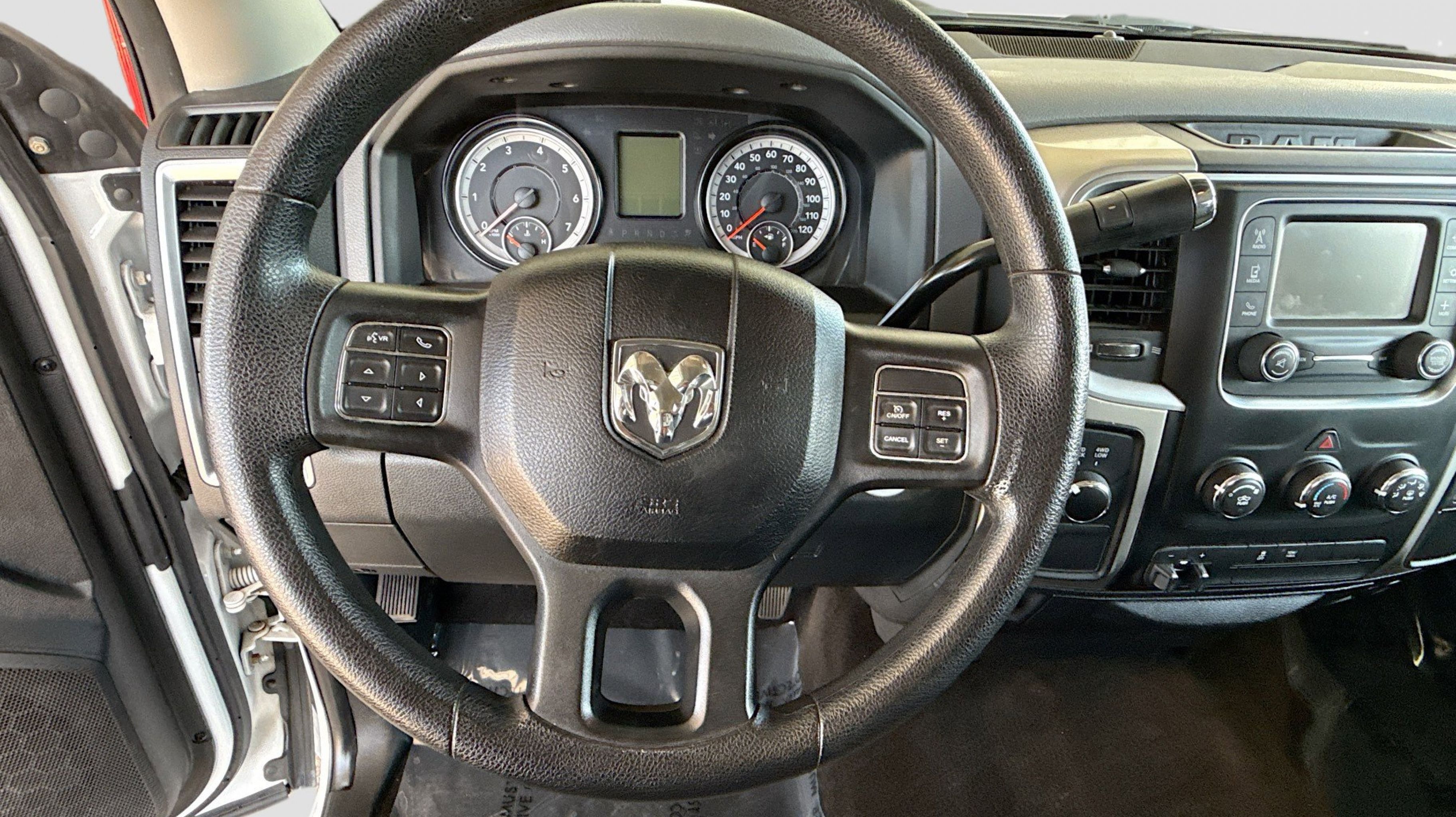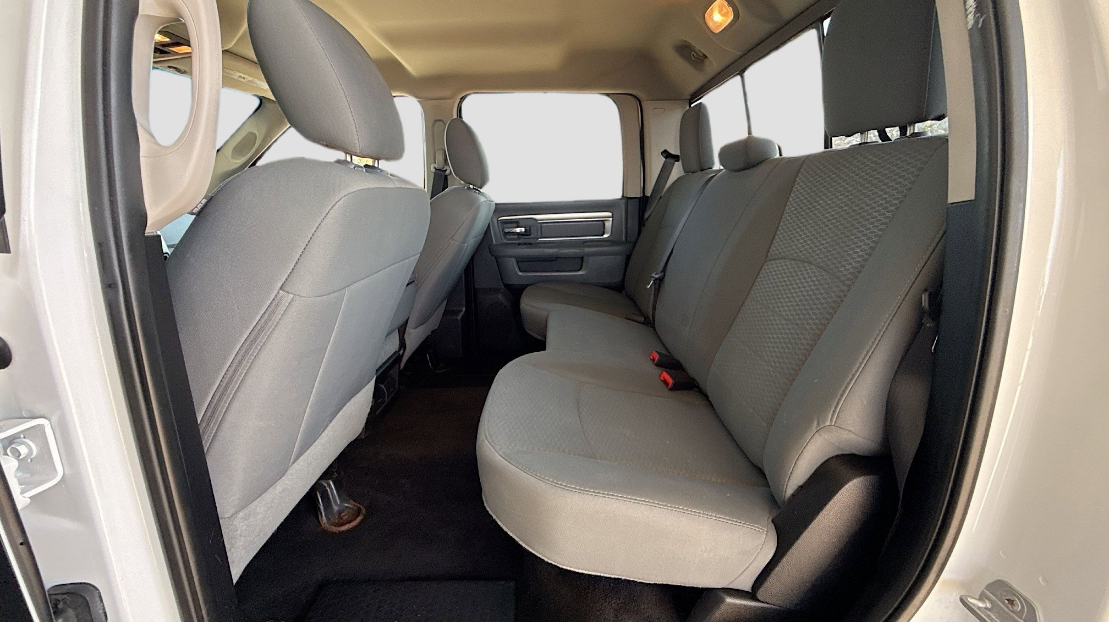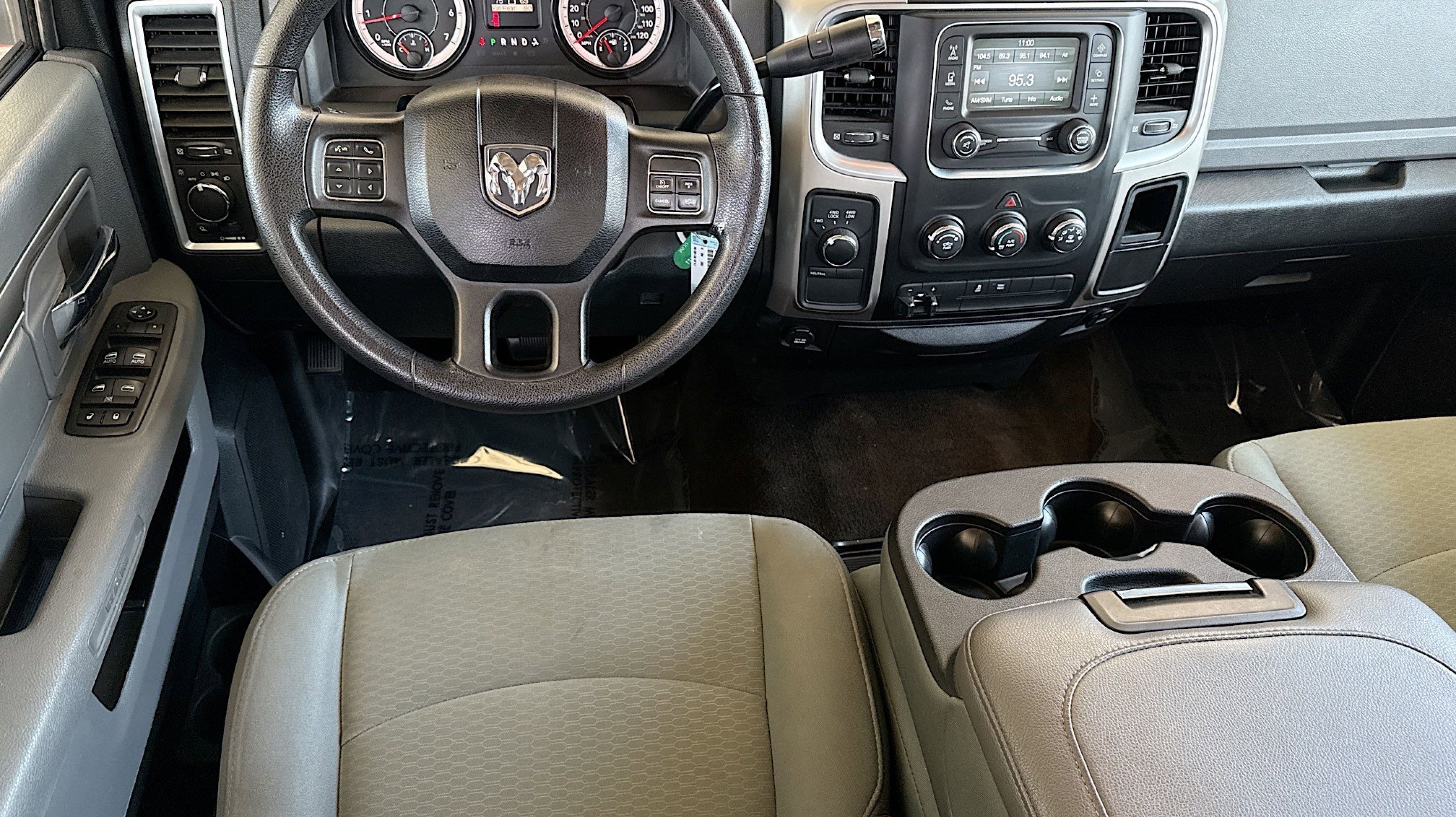 Front Armrest w/Cupholders, Quick Order Package 26G SLT, Storage Tray, 3.73 Rear Axle Ratio, 4-Wheel Disc Brakes, 40/20/40 Split Bench Seat, 6 Speakers, ABS brakes, Air Conditioning, AM/FM radio: SiriusXM, Black Exterior Mirrors, Brake assist, Bumpers: chrome, Center Hub, Charge Only Remote USB Port, Cloth 40/20/40 Bench Seat, Compass, Delay-off headlights, Driver door bin, Dual front impact airbags, Dual front side impact airbags, Electronic Stability Control, Electronically Controlled Throttle, Exterior Mirrors w/Heating Element, Front anti-roll bar, Front Bumper Sight Shields, Front reading lights, Fully automatic headlights, GPS Antenna Input, Heated door mirrors, Hemi Badge, Illuminated entry, Integrated Voice Command w/Bluetooth, Low tire pressure warning, Manual Adjust Seats, Manufacturer's Statement of Origin, Next Generation Engine Controller, Occupant sensing airbag, Outside temperature display, Overhead airbag, Overhead console, Panic alarm, Passenger door bin, Passenger vanity mirror, Power door mirrors, Power steering, Power windows, Radio data system, Radio: Uconnect 5.0, Rear seat center armrest, REAR SEAT Center Armrest w/Storage, Rear step bumper, Remote keyless entry, SiriusXM Satellite Radio, Speed control, Tachometer, Tilt steering wheel, Tip Start, Traction control, Transmission Oil Cooler, Trip computer, Variably intermittent wipers, Voltmeter, Wheels: 18 x 8.0 Steel Chrome Clad, Front Armrest w/Cupholders, Quick Order Package 26G SLT, Storage Tray. Odometer is 75421 miles below market average!