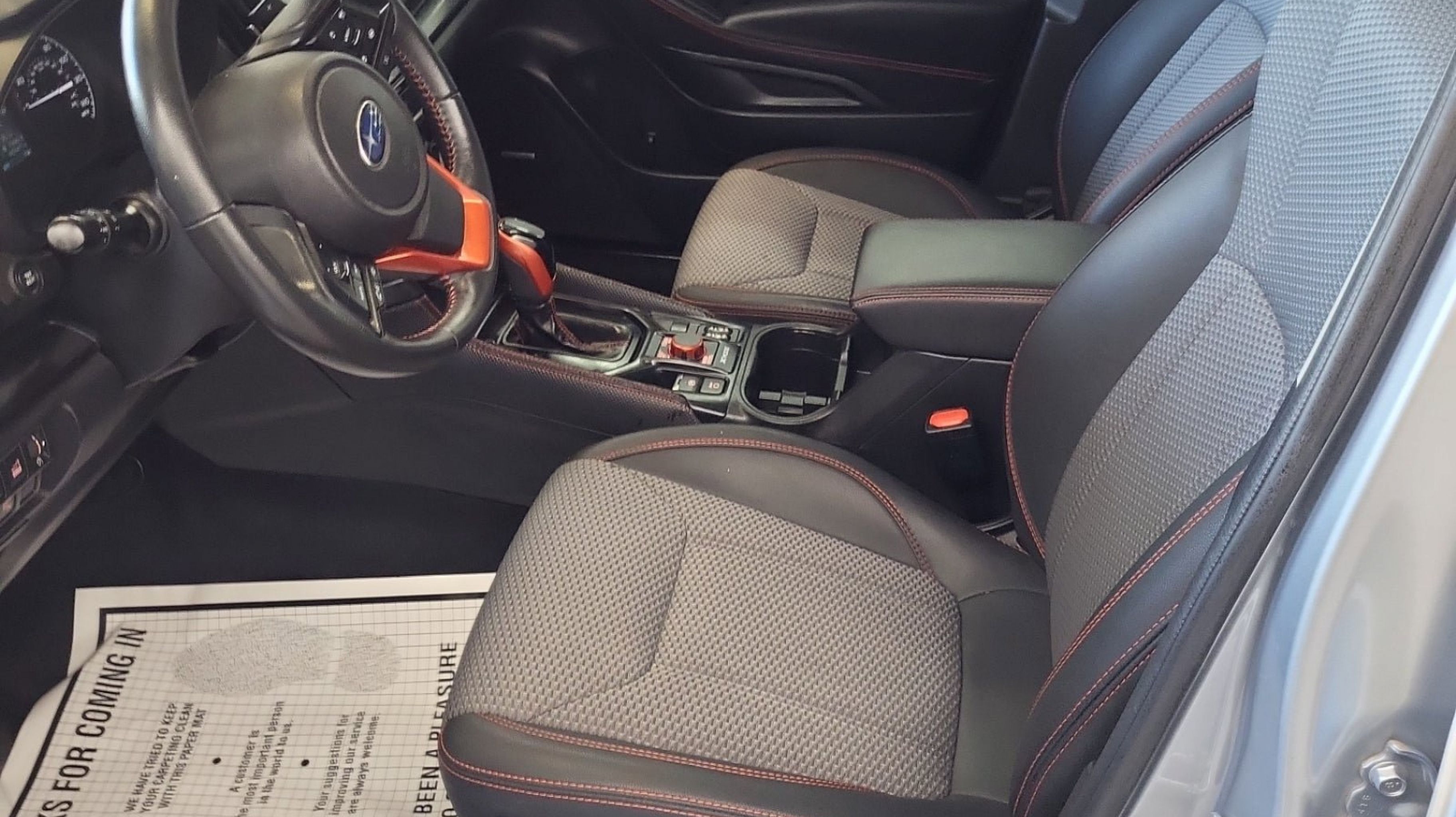 - GRAY SPORT CLOTH UPHOLSTERY -inc: orange stitching
