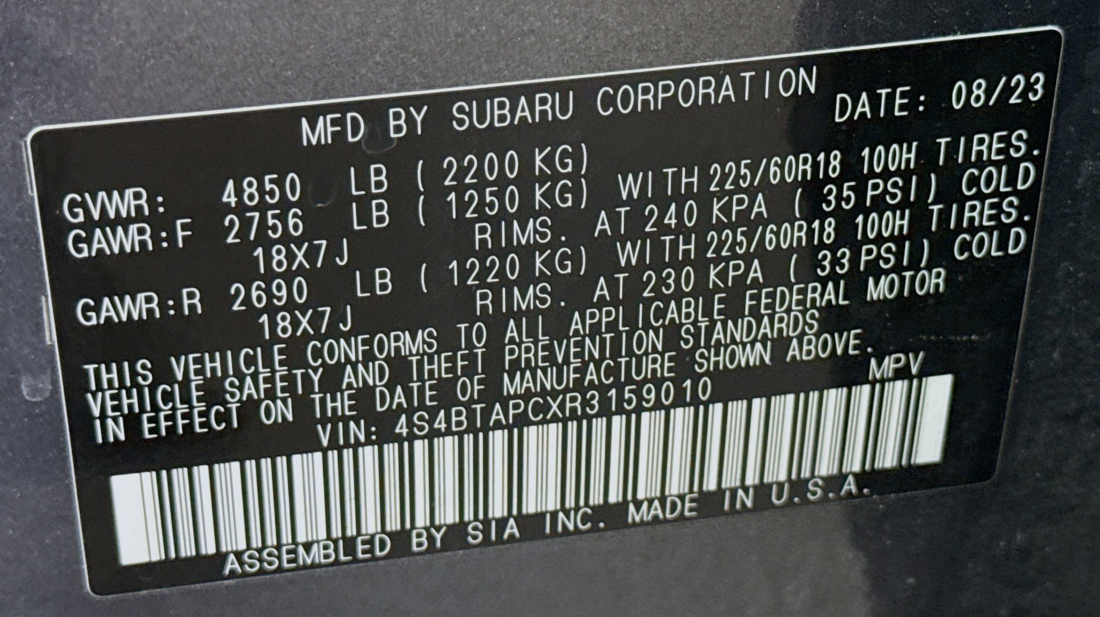 Clean CARFAX. Standard Model, 12 Speakers, 3.90 Axle Ratio, 4-Wheel Disc Brakes, ABS brakes, Air Conditioning, Alloy wheels, AM/FM radio: SiriusXM, Auto High-beam Headlights, Auto-dimming Rear-View mirror, Automatic temperature control, Brake assist, Bumpers: body-color, Compass, Driver door bin, Driver vanity mirror, Dual front impact airbags, Dual front side impact airbags, Electronic Stability Control, Emergency communication system: STARLINK Safety Plus (3-year free trial), Exterior Parking Camera Rear, Four wheel independent suspension, Front anti-roll bar, Front Bucket Seats, Front dual zone A/C, Front fog lights, Front reading lights, Fully automatic headlights, Garage door transmitter: HomeLink, harman/kardon® Speakers, Heated & Ventilated Front Bucket Seats, Heated door mirrors, Heated front seats, Heated rear seats, Heated steering wheel, HVAC memory, Illuminated entry, Knee airbag, Leather Shift Knob, Leather steering wheel, Low tire pressure warning, Memory seat, Navigation system: TomTom Navigation w/what3words, Occupant sensing airbag, Outside temperature display, Overhead airbag, Overhead console, Panic alarm, Passenger door bin, Passenger vanity mirror, Perforated Nappa Leather-Trimmed Upholstery, Power door mirrors, Power driver seat, Power Liftgate, Power moonroof, Power passenger seat, Power steering, Power windows, Radio: Subaru STARLINK 11.6 Multimedia Nav System, Rear anti-roll bar, Rear seat center armrest, REAR SEAT Center Armrest w/Storage, Rear window defroster, Rear window wiper, Remote CD player, Remote keyless entry, Roof rack, Security system, Speed control, Speed-sensing steering, Split folding rear seat, Spoiler, Steering wheel mounted audio controls, Tachometer, Telescoping steering wheel, Tilt steering wheel, Traction control, Trip computer, Turn signal indicator mirrors, Variably intermittent wipers, Ventilated front seats, Wheels: 18 x 7J Black Aluminum-Alloy, Standard Model.