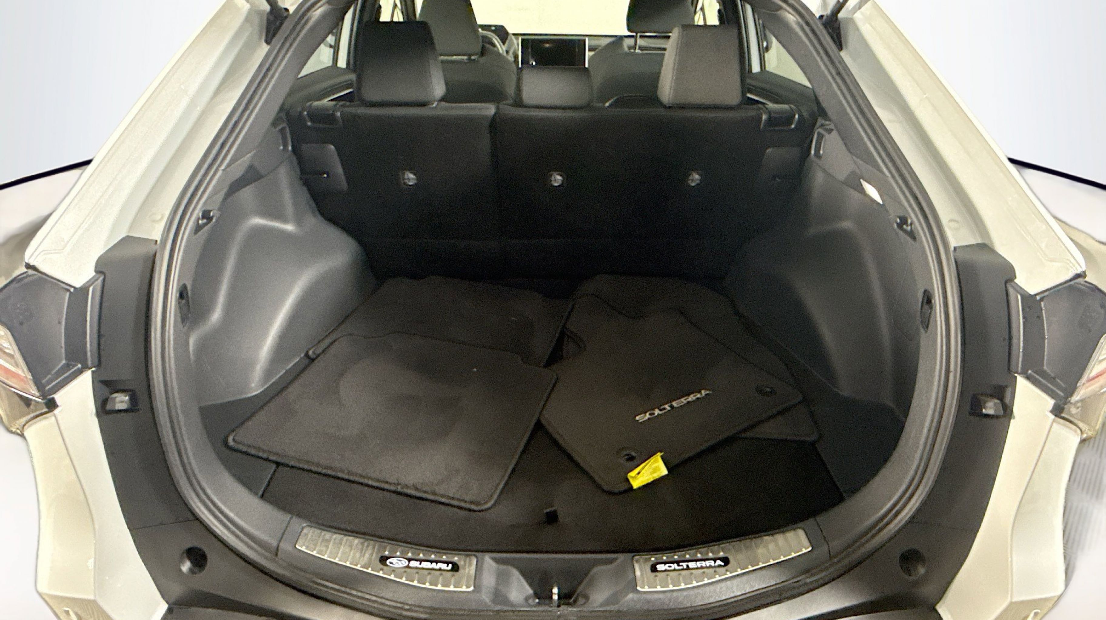 Standard Model, 13.8 Axle Ratio, 4-Wheel Disc Brakes, 6 Speakers, ABS brakes, Accessory Activity Mount, Air Conditioning, Alloy wheels, AM/FM radio: SiriusXM, Auto High-beam Headlights, Auto-dimming Rear-View mirror, Automatic temperature control, Brake assist, Bumpers: body-color, Cloth Upholstery, Driver door bin, Driver vanity mirror, Dual front impact airbags, Dual front side impact airbags, Electronic Stability Control, Emergency communication system: Subaru Solterra Connect - Safety Connect (1 year trial included), Exterior Parking Camera Rear, Four wheel independent suspension, Front anti-roll bar, Front Bucket Seats, Front Center Armrest, Front dual zone A/C, Front reading lights, Fully automatic headlights, Heated door mirrors, Heated Front Bucket Seats, Heated front seats, Illuminated entry, Knee airbag, Leather steering wheel, Low tire pressure warning, Occupant sensing airbag, Outside temperature display, Overhead airbag, Overhead console, Panic alarm, Passenger door bin, Passenger vanity mirror, Power door mirrors, Power steering, Power windows, Radio data system, Radio: Subaru 8.0 Multimedia System, Rear anti-roll bar, Rear reading lights, Rear seat center armrest, Rear window defroster, Remote keyless entry, Security system, Side Sill Plates - Illuminated, Speed control, Speed-sensing steering, Split folding rear seat, Spoiler, Steering wheel mounted audio controls, Telescoping steering wheel, Tilt steering wheel, Traction control, Trip computer, Trunk Sill - Illuminated, Variably intermittent wipers, Wheels: 18 x 7.5 J Aluminum-Alloy, Standard Model.