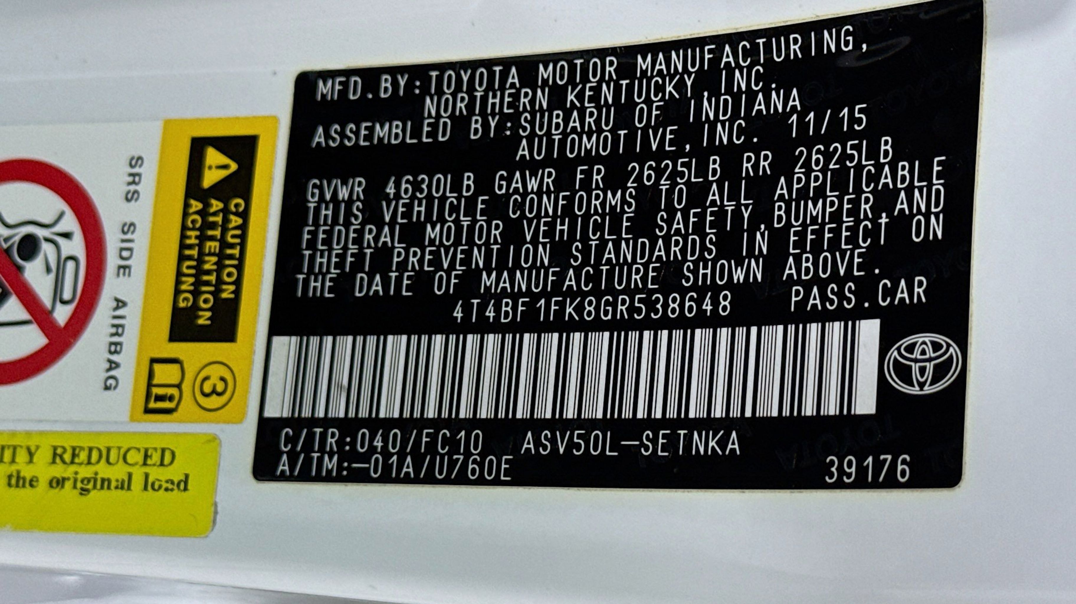 Ash w/Fabric Seat Trim, 4-Wheel Disc Brakes, 6 Speakers, ABS brakes, Air Conditioning, AM/FM radio, Brake assist, Bumpers: body-color, CD player, Delay-off headlights, Driver door bin, Driver vanity mirror, Dual front impact airbags, Dual front side impact airbags, Electronic Stability Control, Exterior Parking Camera Rear, Fabric Seat Trim, Four wheel independent suspension, Front anti-roll bar, Front Bucket Seats, Front Center Armrest, Front reading lights, Fully automatic headlights, Heated door mirrors, Illuminated entry, Knee airbag, Low tire pressure warning, Occupant sensing airbag, Outside temperature display, Overhead airbag, Overhead console, Panic alarm, Passenger door bin, Passenger vanity mirror, Power door mirrors, Power driver seat, Power steering, Power windows, Radio: Entune Audio, Radio: Entune Audio Plus, Rear anti-roll bar, Rear seat center armrest, Rear side impact airbag, Rear window defroster, Remote keyless entry, Speed control, Speed-sensing steering, Split folding rear seat, Steering wheel mounted audio controls, Tachometer, Telescoping steering wheel, Tilt steering wheel, Traction control, Trip computer, Variably intermittent wipers, Wheels: 7.0J x 16 Steel, Ash w/Fabric Seat Trim. Odometer is 63321 miles below market average!