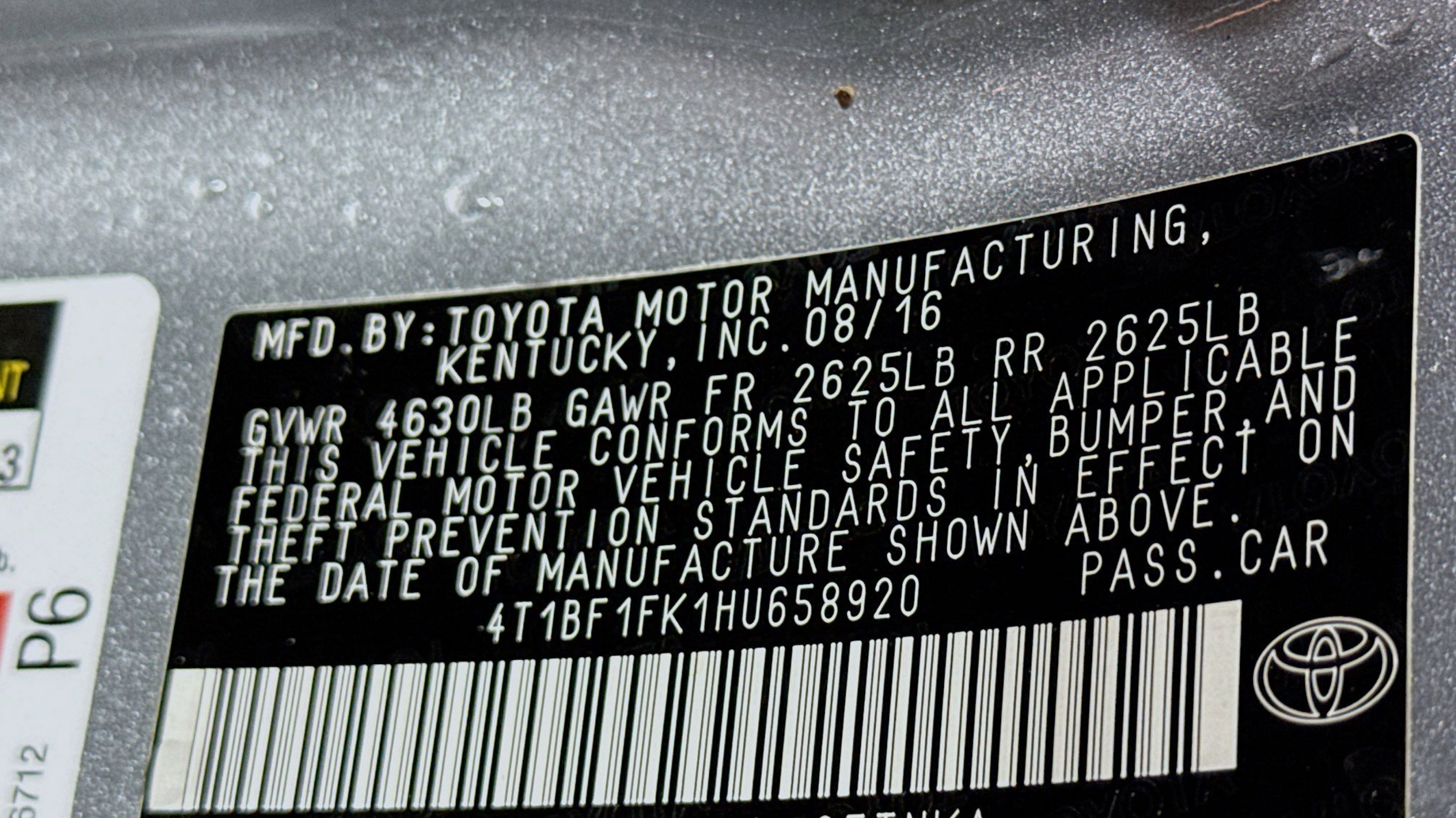 CARFAX One-Owner. Black w/Fabric Seat Trim, 4-Wheel Disc Brakes, 6 Speakers, ABS brakes, Air Conditioning, AM/FM radio, Brake assist, Bumpers: body-color, CD player, Delay-off headlights, Driver door bin, Driver vanity mirror, Dual front impact airbags, Dual front side impact airbags, Electronic Stability Control, Exterior Parking Camera Rear, Fabric Seat Trim, Four wheel independent suspension, Front anti-roll bar, Front Bucket Seats, Front Center Armrest, Front reading lights, Fully automatic headlights, Heated door mirrors, Illuminated entry, Knee airbag, Low tire pressure warning, Occupant sensing airbag, Outside temperature display, Overhead airbag, Overhead console, Panic alarm, Passenger door bin, Passenger vanity mirror, Power door mirrors, Power driver seat, Power steering, Power windows, Radio: Entune Audio, Rear anti-roll bar, Rear seat center armrest, Rear side impact airbag, Rear window defroster, Remote keyless entry, Speed control, Speed-sensing steering, Split folding rear seat, Steering wheel mounted audio controls, Tachometer, Telescoping steering wheel, Tilt steering wheel, Traction control, Trip computer, Variably intermittent wipers, Wheels: 7.0J x 16 Steel, Black w/Fabric Seat Trim. Odometer is 23761 miles below market average!