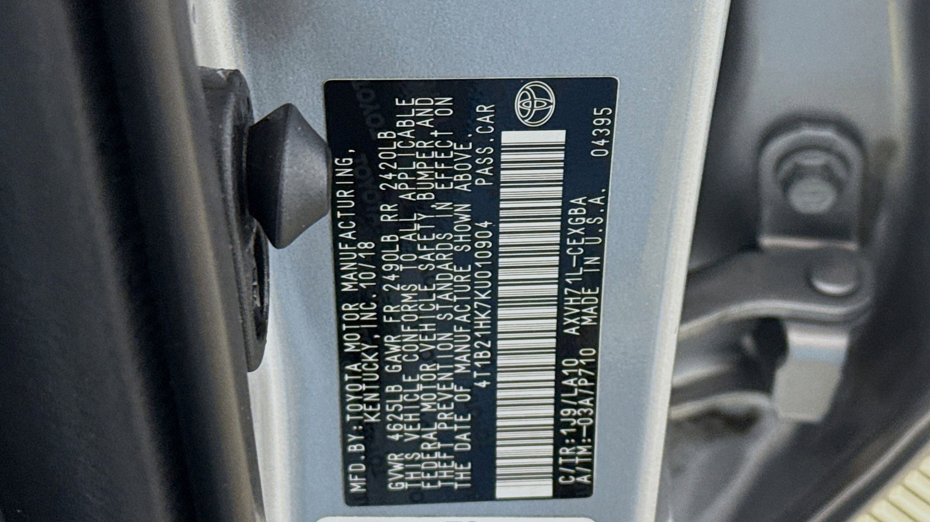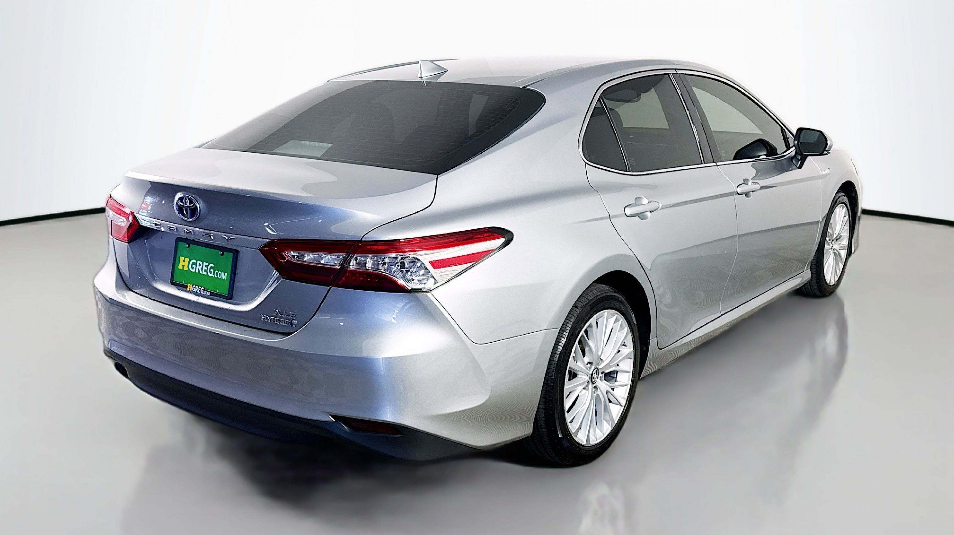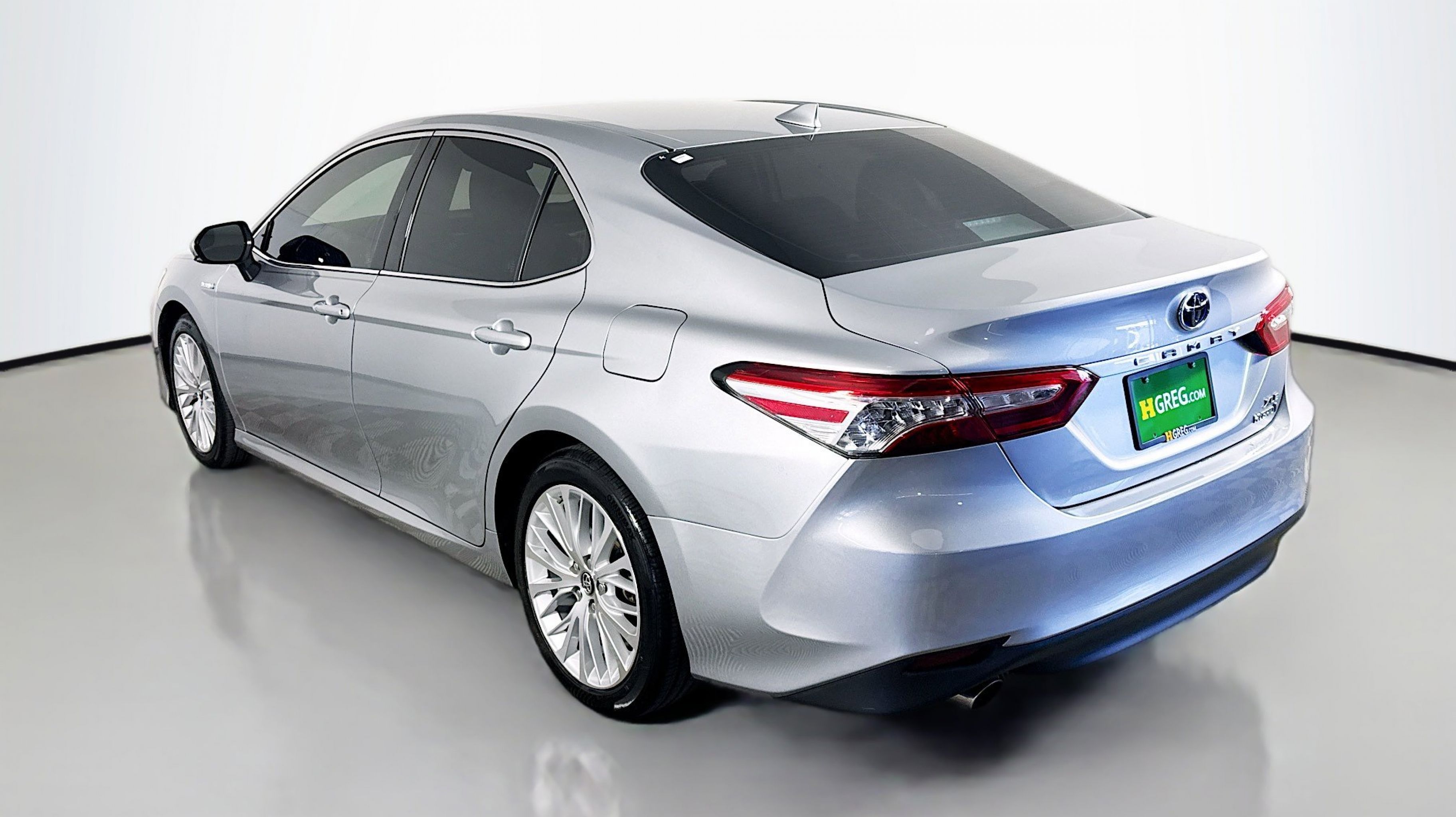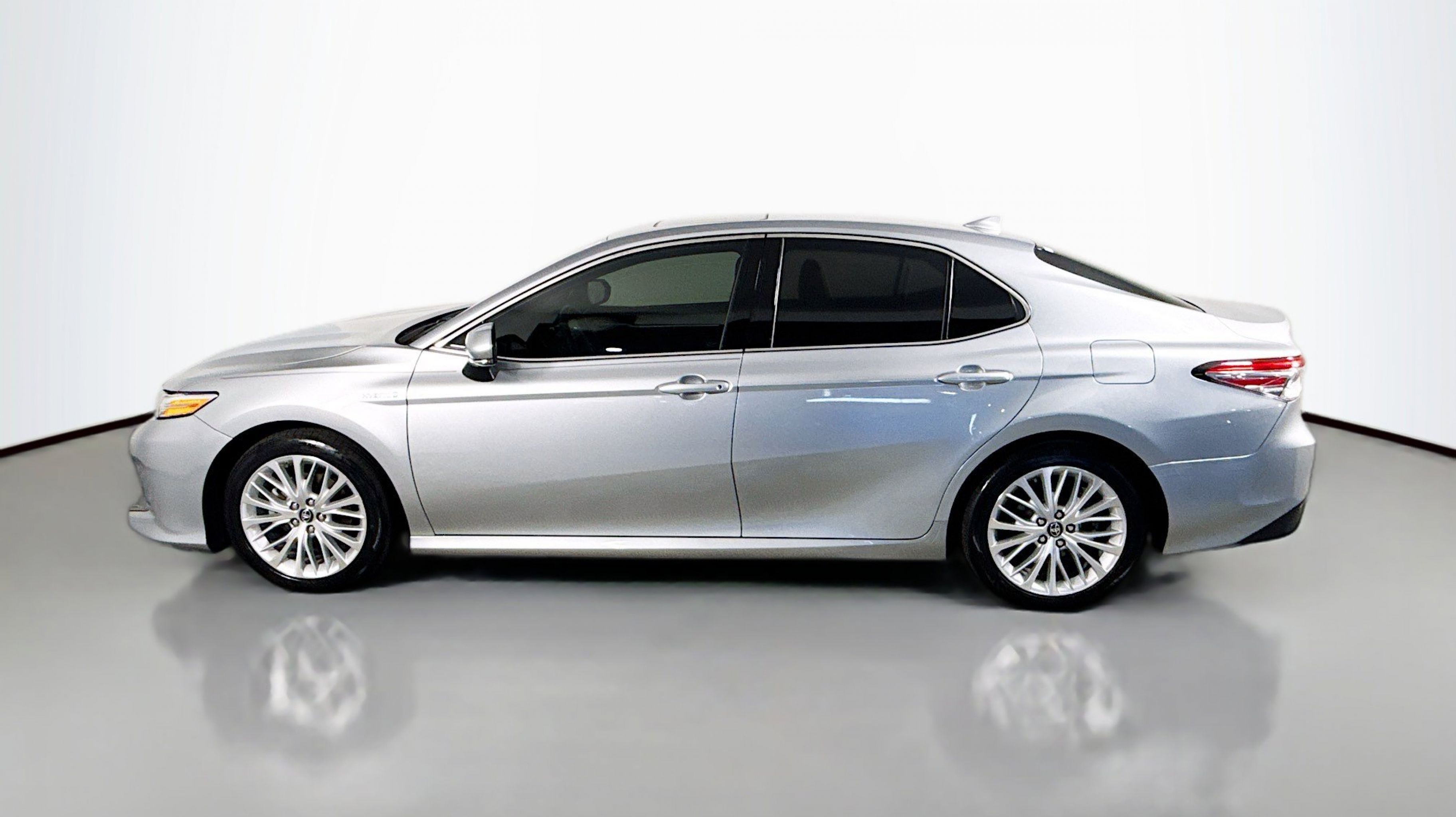 Celestial Silver Metallic 2019 Toyota Camry Hybrid LE FWD eCVT 2.5L I4 Hybrid DOHC 2.5L I4 Hybrid DOHC, Sunroof Package, 4-Wheel Disc Brakes, 6 Speakers, 6.5J x 16 Steel Wheels, ABS brakes, Air Conditioning, AM/FM radio, Auto High-beam Headlights, Automatic temperature control, Brake assist, Bumpers: body-color, Delay-off headlights, Driver door bin, Driver vanity mirror, Dual front impact airbags, Dual front side impact airbags, Electronic Stability Control, Emergency communication system: Safety Connect, Exterior Parking Camera Rear, Fabric Seat Trim, Four wheel independent suspension, Front anti-roll bar, Front Bucket Seats, Front Center Armrest, Front dual zone A/C, Front reading lights, Fully automatic headlights, Heated front seats, Illuminated entry, Knee airbag, Low tire pressure warning, Occupant sensing airbag, Outside temperature display, Overhead airbag, Overhead console, Panic alarm, Passenger door bin, Passenger vanity mirror, Power door mirrors, Power driver seat, Power steering, Power windows, Radio data system, Radio: Entune 3.0 Audio, Radio: Entune 3.0 Audio Plus, Rear anti-roll bar, Rear reading lights, Rear seat center armrest, Rear side impact airbag, Rear window defroster, Remote keyless entry, Security system, Speed control, Speed-sensing steering, Split folding rear seat, Steering wheel mounted audio controls, Telescoping steering wheel, Tilt steering wheel, Traction control, Trip computer, Variably intermittent wipers, 2.5L I4 Hybrid DOHC, Sunroof Package.