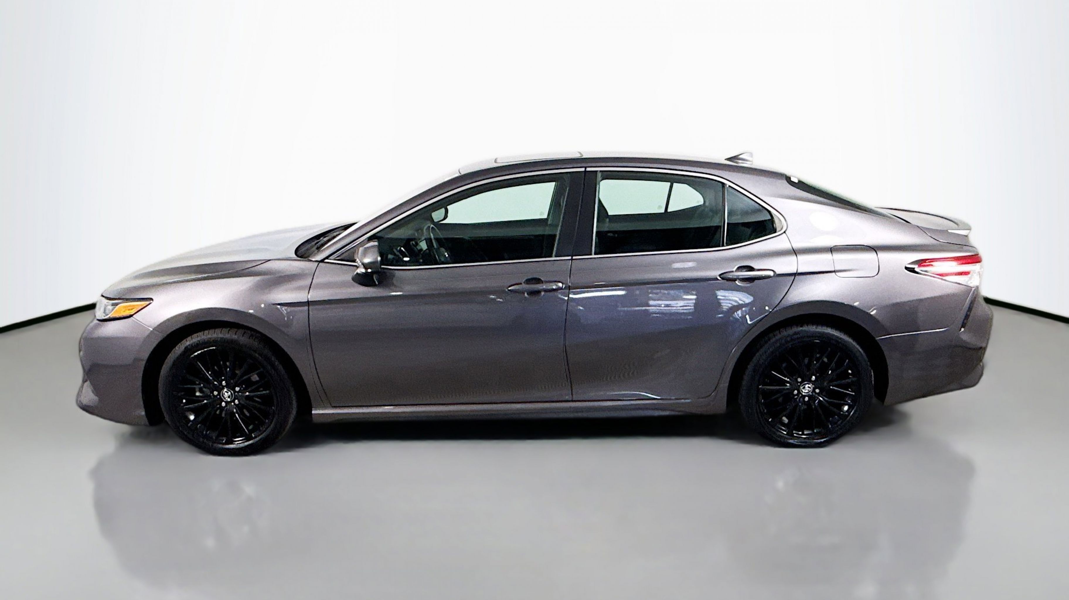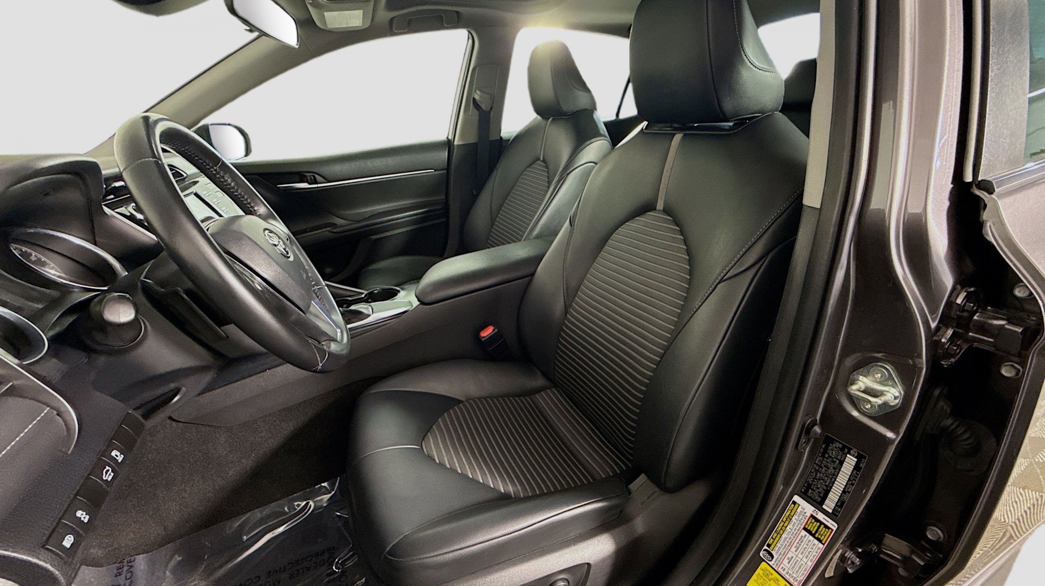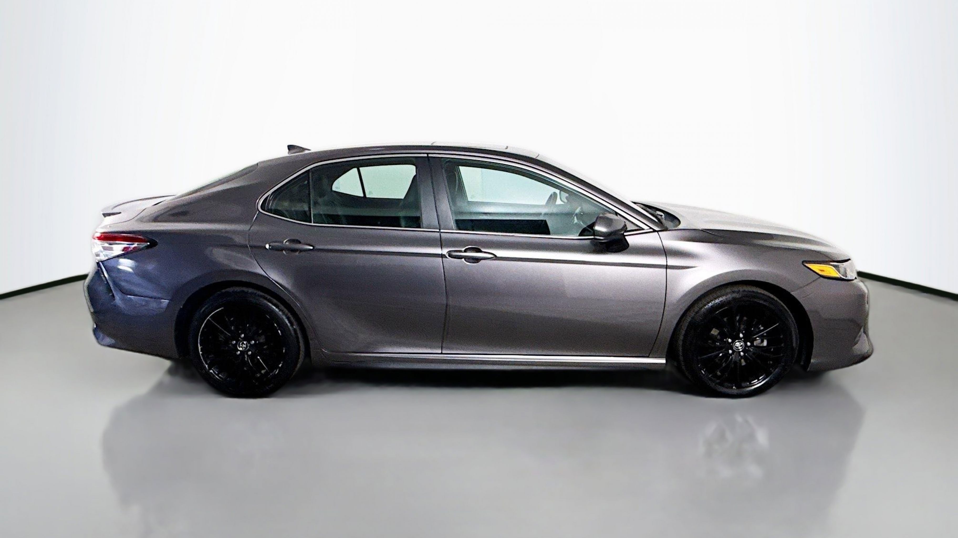 Predawn Gray Mica 2020 Toyota Camry SE FWD 8-Speed Automatic 2.5L I4 DOHC 16V Black w/Fabric Seat Trim, All-Weather Floor Liner Package, Blackout Emblem Overlays, Blackout Package, Lower Rocker Applique, Rear Bumper Applique (Black), 4-Wheel Disc Brakes, 6 Speakers, ABS brakes, Air Conditioning, Alloy wheels, AM/FM radio: SiriusXM, Apple CarPlay/Android Auto, Auto High-beam Headlights, Automatic temperature control, Brake assist, Bumpers: body-color, Delay-off headlights, Driver door bin, Driver vanity mirror, Dual front impact airbags, Dual front side impact airbags, Electronic Stability Control, Emergency communication system: Safety Connect with 1-year trial, Exterior Parking Camera Rear, Fabric Seat Trim w/SofTex, Four wheel independent suspension, Front anti-roll bar, Front Bucket Seats, Front Center Armrest, Front reading lights, Front Sport Bucket Seats, Fully automatic headlights, Illuminated entry, Knee airbag, Leather Shift Knob, Low tire pressure warning, Occupant sensing airbag, Outside temperature display, Overhead airbag, Overhead console, Panic alarm, Passenger door bin, Passenger vanity mirror, Power door mirrors, Power driver seat, Power steering, Power Tilt/Slide Moonroof, Power windows, Radio data system, Radio: AM/FM Audio System, Rear anti-roll bar, Rear reading lights, Rear seat center armrest, Rear side impact airbag, Rear window defroster, Remote keyless entry, Security system, Speed control, Speed-sensing steering, Split folding rear seat, Spoiler, Sport steering wheel, Steering wheel mounted audio controls, Tachometer, Telescoping steering wheel, Tilt steering wheel, Traction control, Trip computer, Variably intermittent wipers, Wheels: 8.0J x 18 Black Machined-Finish Alloy, Black w/Fabric Seat Trim, All-Weather Floor Liner Package, Blackout Emblem Overlays, Blackout Package, Lower Rocker Applique, Rear Bumper Applique (Black).