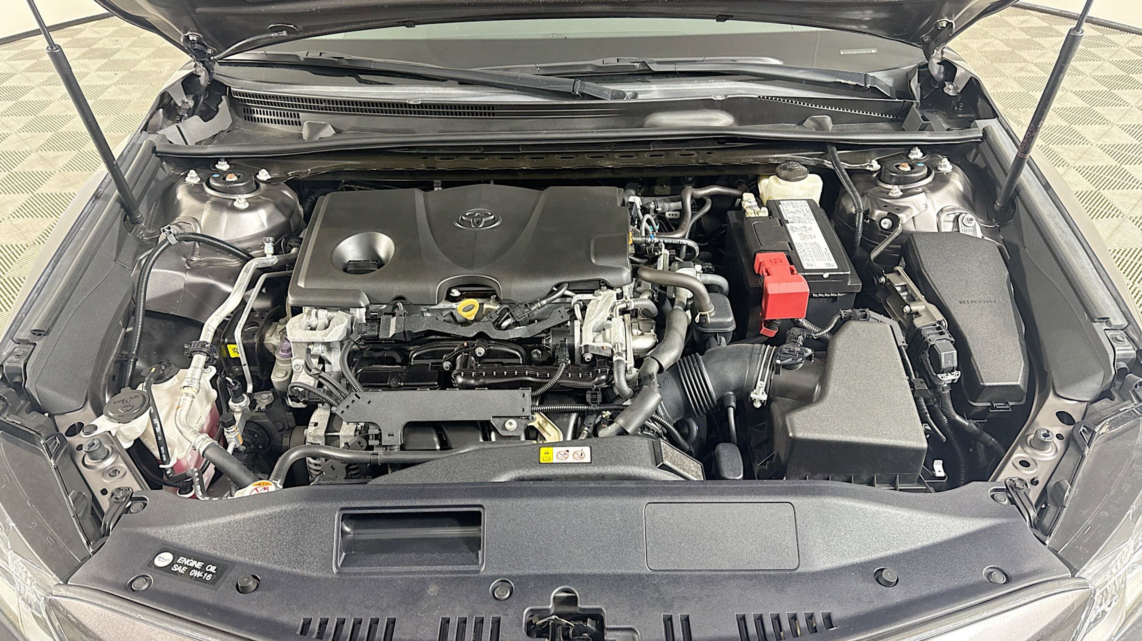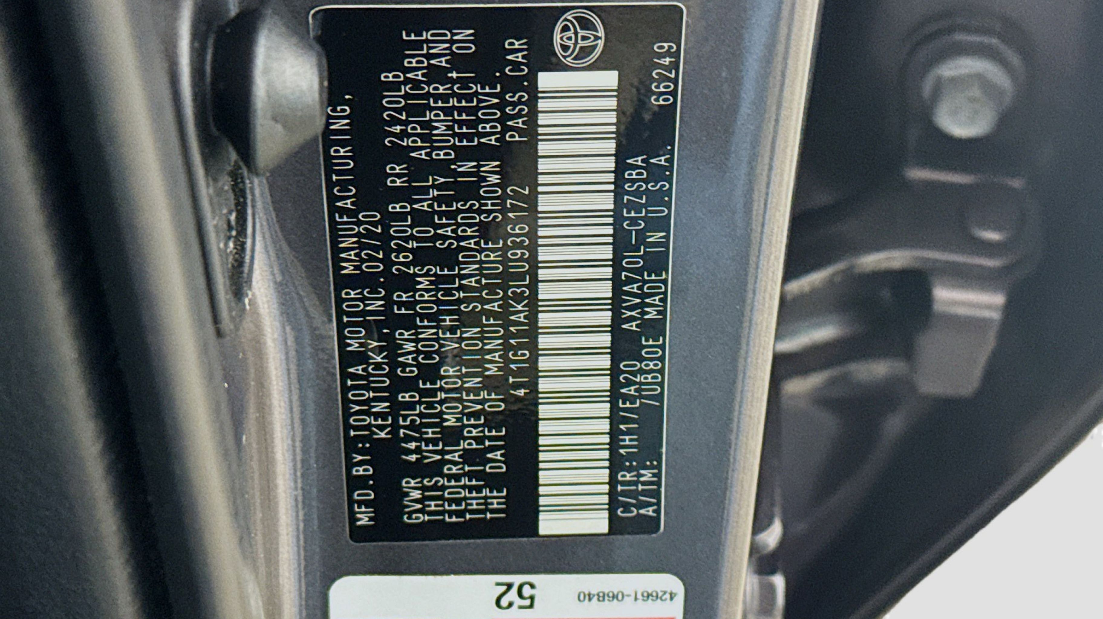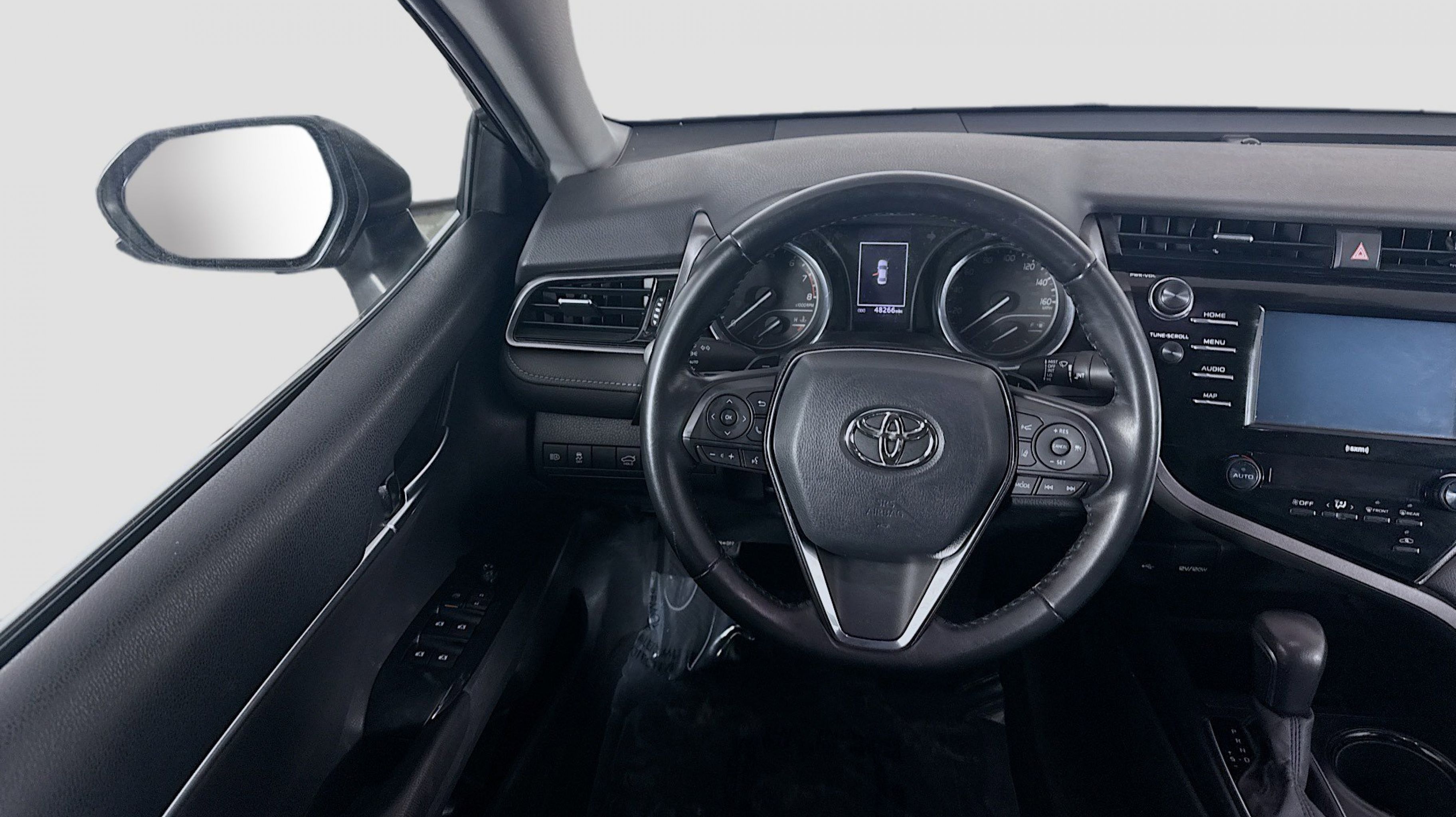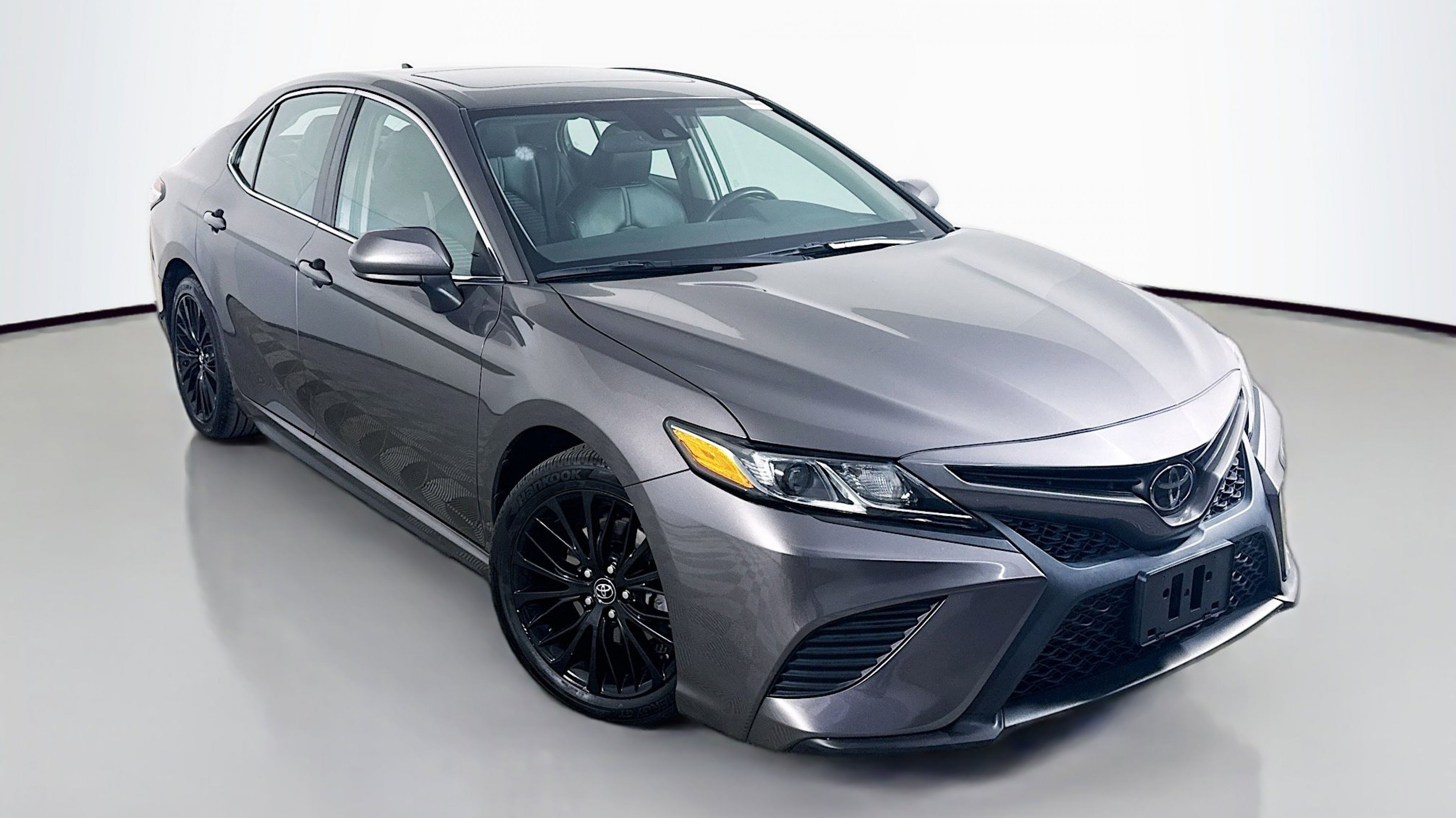 Predawn Gray Mica 2020 Toyota Camry SE FWD 8-Speed Automatic 2.5L I4 DOHC 16V Black w/Fabric Seat Trim, All-Weather Floor Liner Package, Blackout Emblem Overlays, Blackout Package, Lower Rocker Applique, Rear Bumper Applique (Black), 4-Wheel Disc Brakes, 6 Speakers, ABS brakes, Air Conditioning, Alloy wheels, AM/FM radio: SiriusXM, Apple CarPlay/Android Auto, Auto High-beam Headlights, Automatic temperature control, Brake assist, Bumpers: body-color, Delay-off headlights, Driver door bin, Driver vanity mirror, Dual front impact airbags, Dual front side impact airbags, Electronic Stability Control, Emergency communication system: Safety Connect with 1-year trial, Exterior Parking Camera Rear, Fabric Seat Trim w/SofTex, Four wheel independent suspension, Front anti-roll bar, Front Bucket Seats, Front Center Armrest, Front reading lights, Front Sport Bucket Seats, Fully automatic headlights, Illuminated entry, Knee airbag, Leather Shift Knob, Low tire pressure warning, Occupant sensing airbag, Outside temperature display, Overhead airbag, Overhead console, Panic alarm, Passenger door bin, Passenger vanity mirror, Power door mirrors, Power driver seat, Power steering, Power Tilt/Slide Moonroof, Power windows, Radio data system, Radio: AM/FM Audio System, Rear anti-roll bar, Rear reading lights, Rear seat center armrest, Rear side impact airbag, Rear window defroster, Remote keyless entry, Security system, Speed control, Speed-sensing steering, Split folding rear seat, Spoiler, Sport steering wheel, Steering wheel mounted audio controls, Tachometer, Telescoping steering wheel, Tilt steering wheel, Traction control, Trip computer, Variably intermittent wipers, Wheels: 8.0J x 18 Black Machined-Finish Alloy, Black w/Fabric Seat Trim, All-Weather Floor Liner Package, Blackout Emblem Overlays, Blackout Package, Lower Rocker Applique, Rear Bumper Applique (Black).