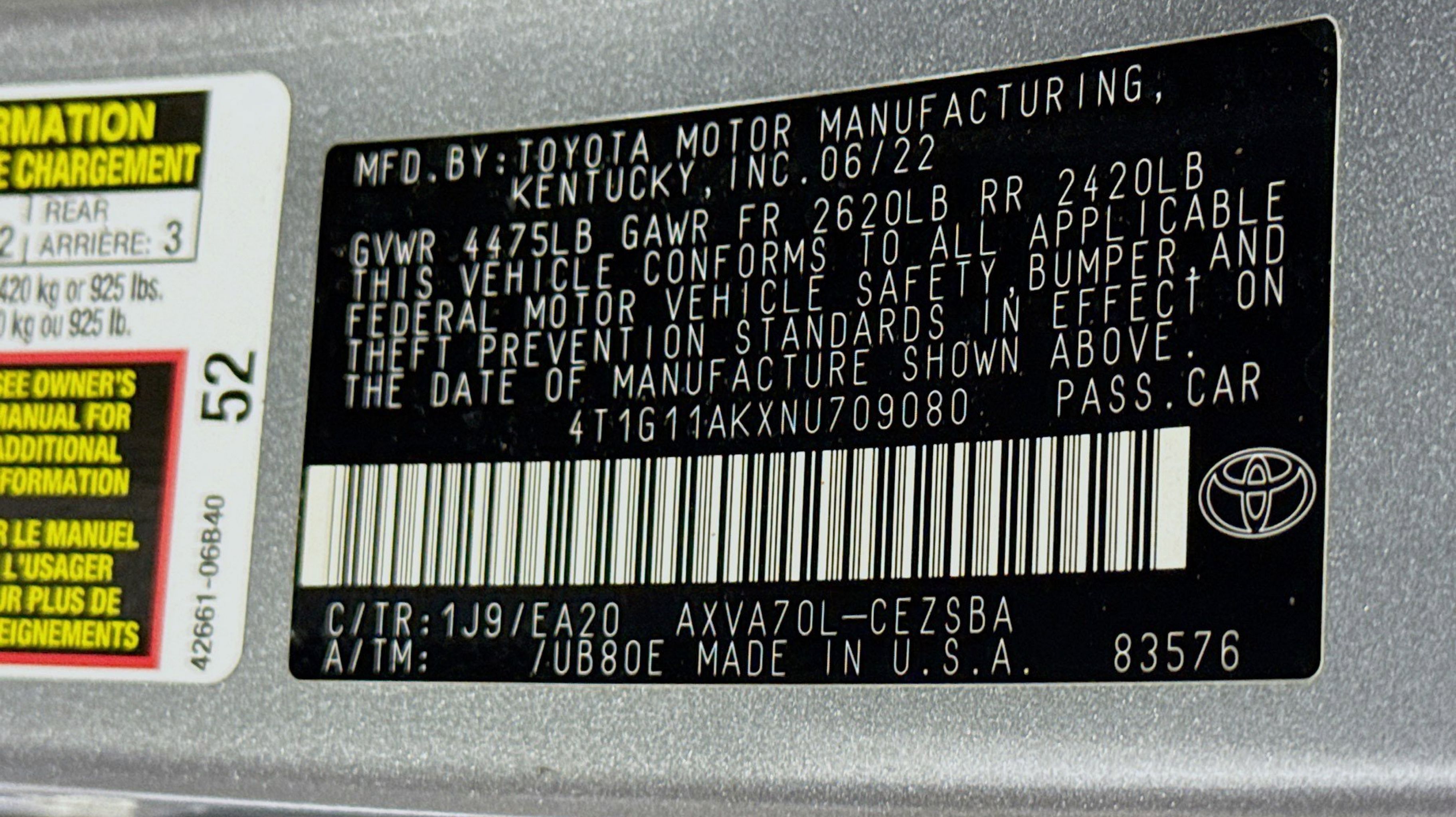 Black w/Fabric Seat Trim, 4-Wheel Disc Brakes, 6 Speakers, ABS brakes, Air Conditioning, Alloy wheels, AM/FM radio: SiriusXM, Apple CarPlay/Android Auto, Auto High-beam Headlights, Automatic temperature control, Brake assist, Bumpers: body-color, Delay-off headlights, Driver door bin, Driver vanity mirror, Dual front impact airbags, Dual front side impact airbags, Electronic Stability Control, Emergency communication system: Safety Connect with 1-year trial, Exterior Parking Camera Rear, Fabric Seat Trim w/Sport SofTex, Four wheel independent suspension, Front anti-roll bar, Front Bucket Seats, Front Center Armrest, Front dual zone A/C, Front reading lights, Fully automatic headlights, Heated door mirrors, Illuminated entry, Knee airbag, Low tire pressure warning, Occupant sensing airbag, Outside temperature display, Overhead airbag, Overhead console, Panic alarm, Passenger door bin, Passenger vanity mirror, Power door mirrors, Power driver seat, Power steering, Power windows, Radio data system, Radio: AM/FM Audio System, Rear anti-roll bar, Rear seat center armrest, Rear side impact airbag, Rear window defroster, Remote keyless entry, Security system, Speed control, Speed-sensing steering, Split folding rear seat, Spoiler, Steering wheel mounted audio controls, Tachometer, Telescoping steering wheel, Tilt steering wheel, Traction control, Trip computer, Turn signal indicator mirrors, Variably intermittent wipers, Wheels: 8.0J x 18 Black Machined-Finish Alloy, Black w/Fabric Seat Trim.