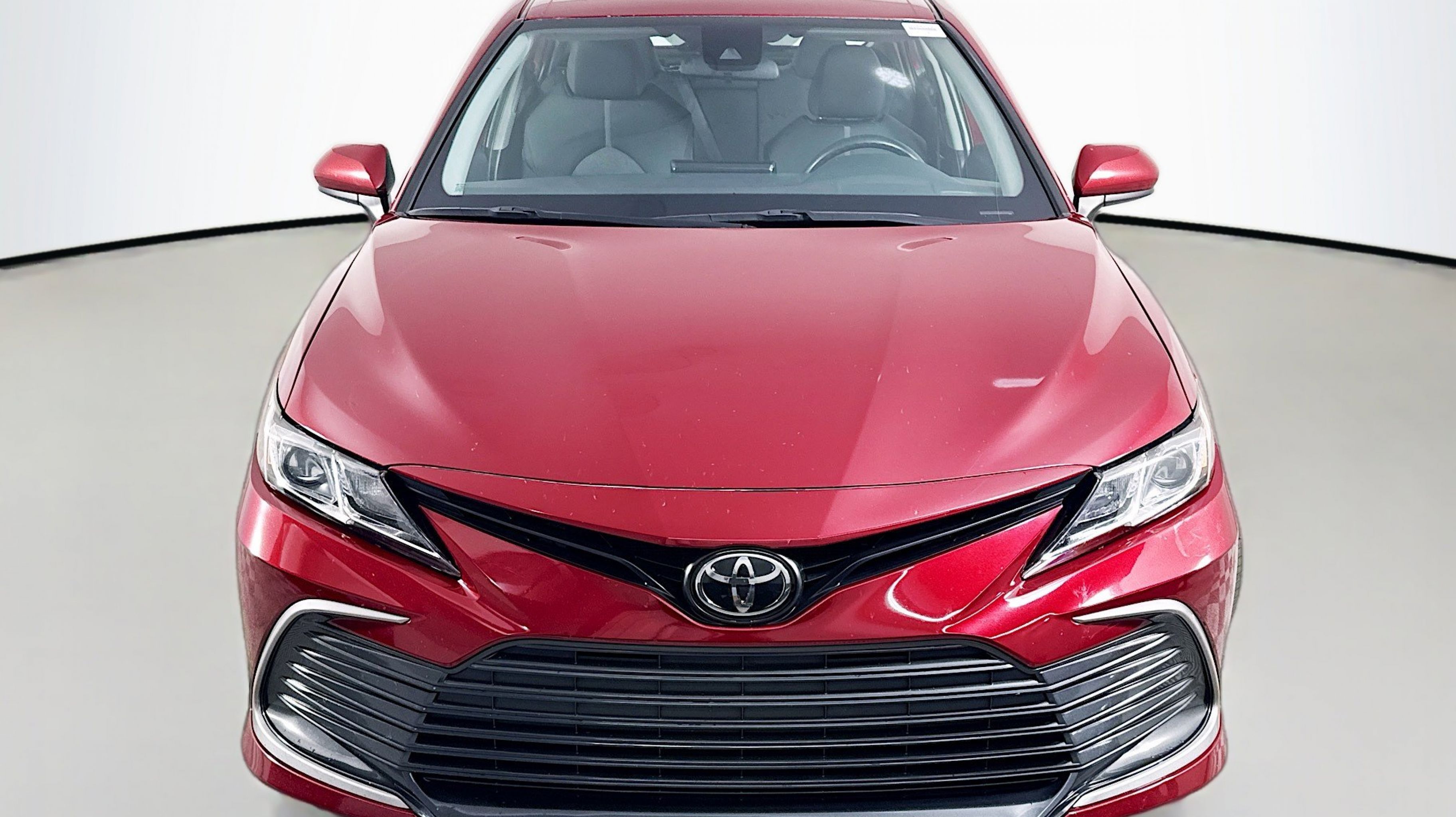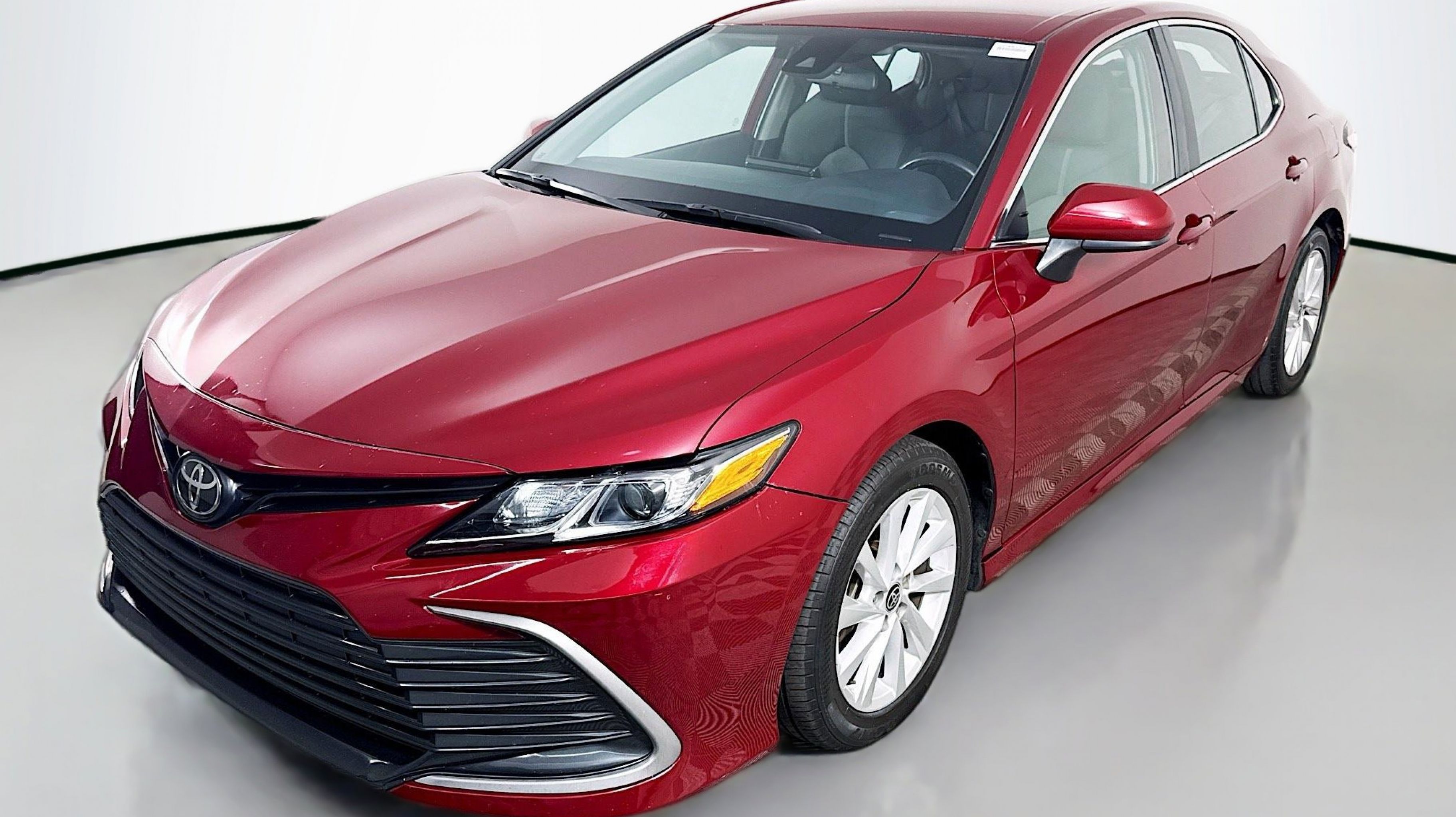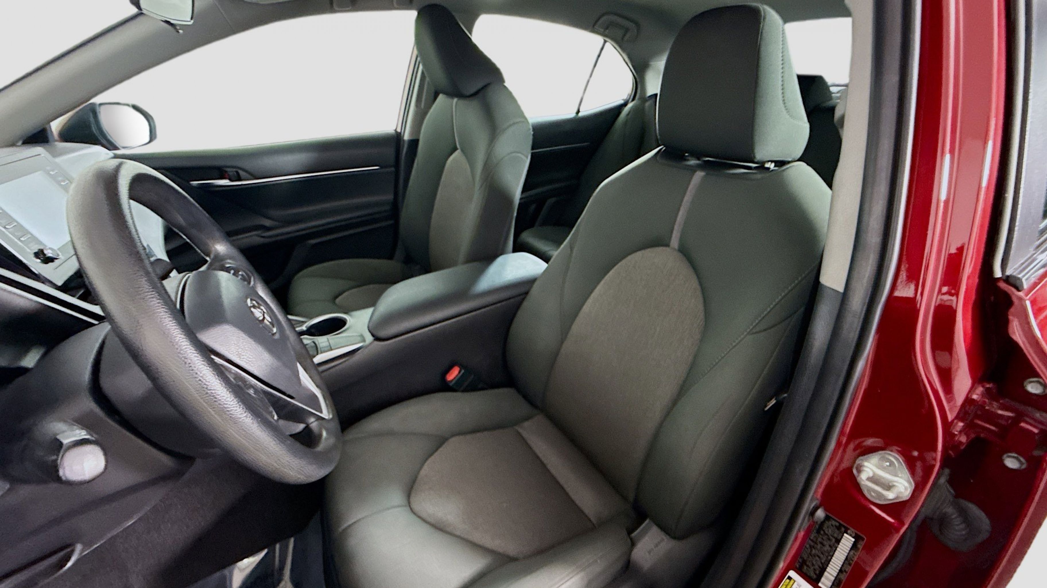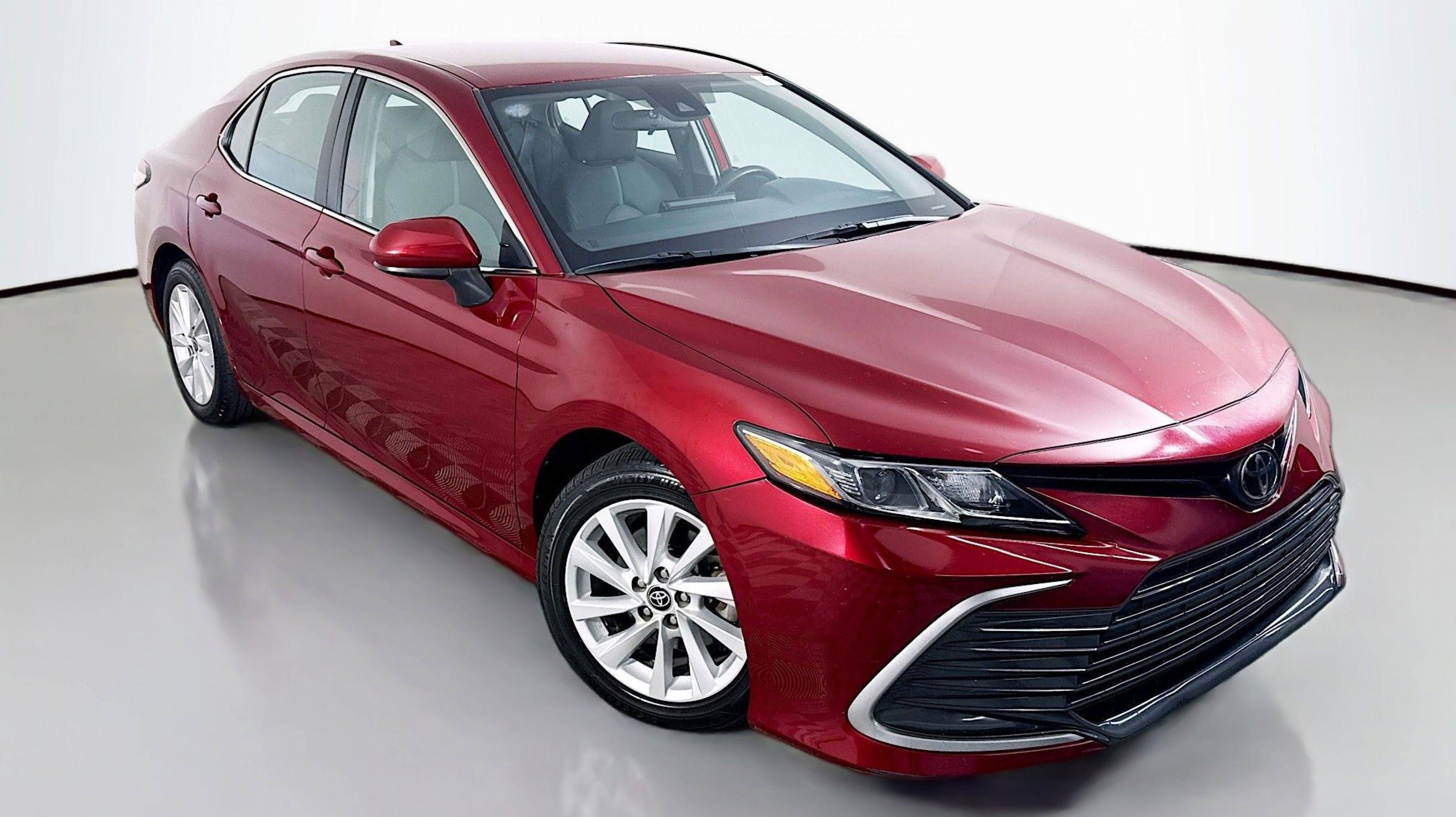 Ruby Flare Pearl 2022 Toyota Camry LE FWD 8-Speed Automatic 2.5L I4 DOHC 16V Black w/Fabric Seat Trim, 4-Wheel Disc Brakes, 6 Speakers, 7.5J x 17 Alloy Wheels, ABS brakes, Air Conditioning, Alloy wheels, AM/FM radio: SiriusXM, Apple CarPlay/Android Auto, Auto High-beam Headlights, Automatic temperature control, Brake assist, Bumpers: body-color, Delay-off headlights, Driver door bin, Driver vanity mirror, Dual front impact airbags, Dual front side impact airbags, Electronic Stability Control, Emergency communication system: Safety Connect with 1-year trial, Exterior Parking Camera Rear, Fabric Seat Trim, Four wheel independent suspension, Front anti-roll bar, Front Bucket Seats, Front Center Armrest, Front dual zone A/C, Front reading lights, Fully automatic headlights, Illuminated entry, Knee airbag, Low tire pressure warning, Occupant sensing airbag, Outside temperature display, Overhead airbag, Overhead console, Panic alarm, Passenger door bin, Passenger vanity mirror, Power door mirrors, Power driver seat, Power steering, Power windows, Radio data system, Radio: AM/FM Audio System, Rear anti-roll bar, Rear seat center armrest, Rear side impact airbag, Rear window defroster, Remote keyless entry, Security system, Speed control, Speed-sensing steering, Split folding rear seat, Steering wheel mounted audio controls, Tachometer, Telescoping steering wheel, Tilt steering wheel, Traction control, Trip computer, Variably intermittent wipers, Black w/Fabric Seat Trim.