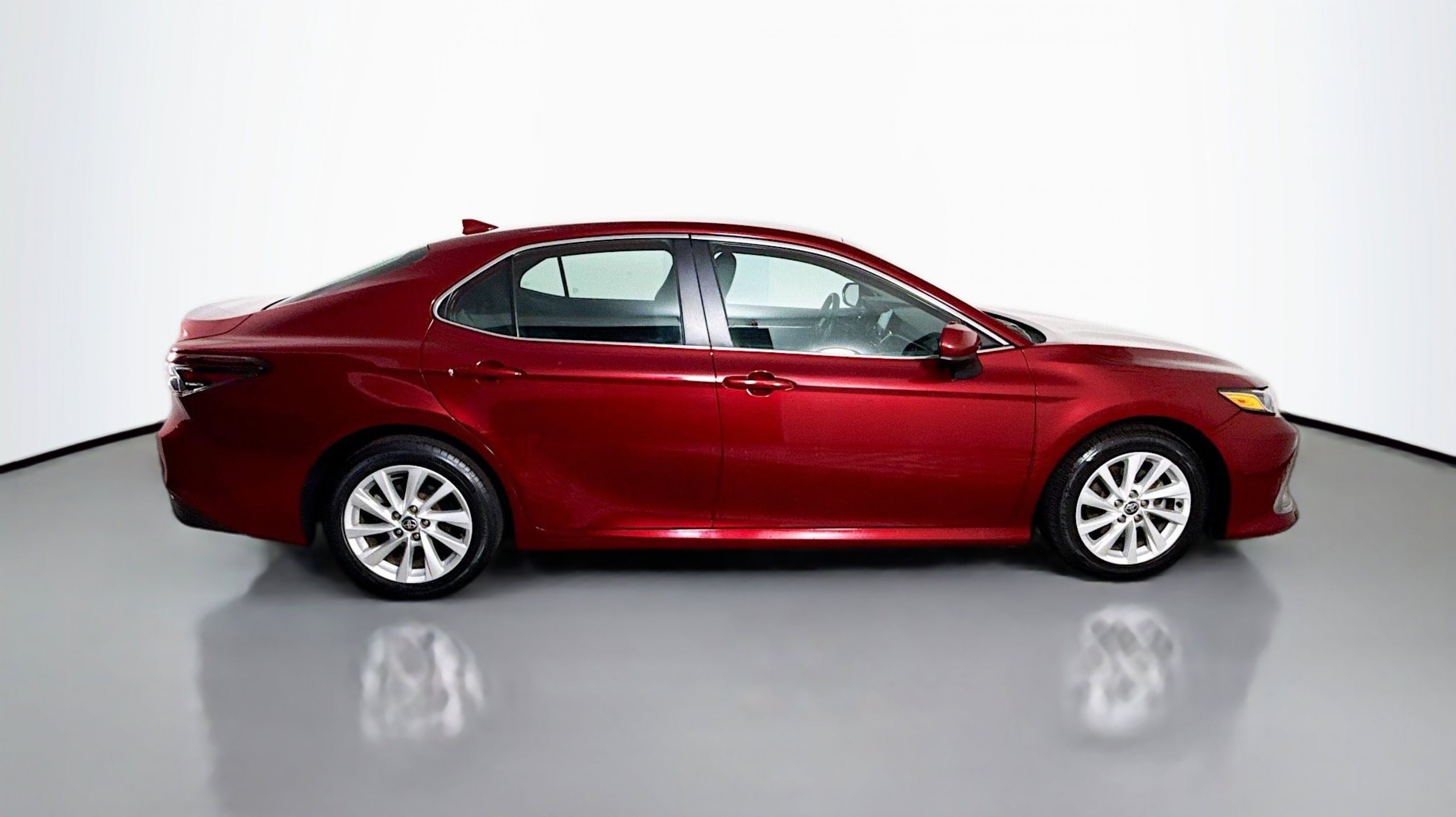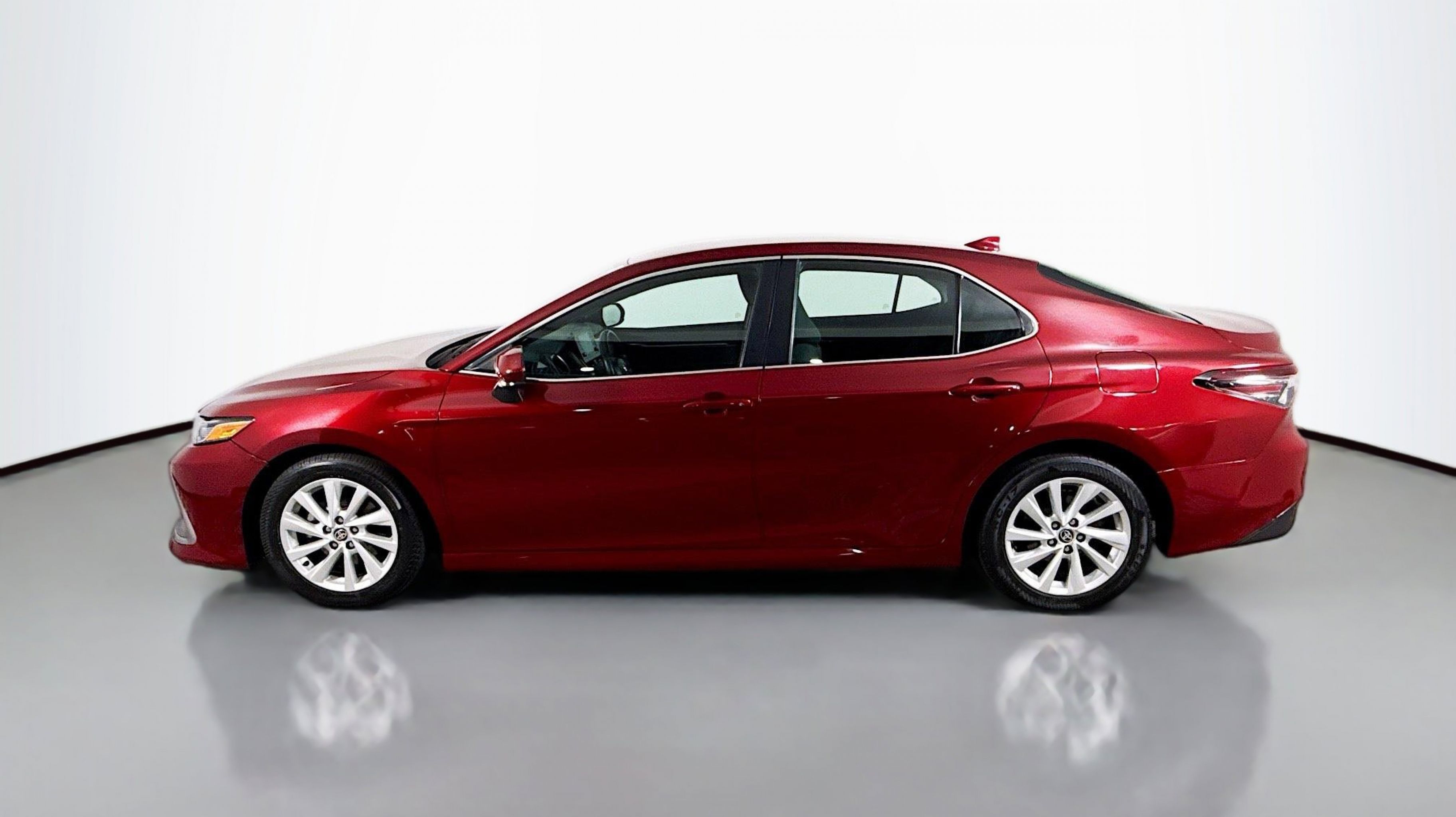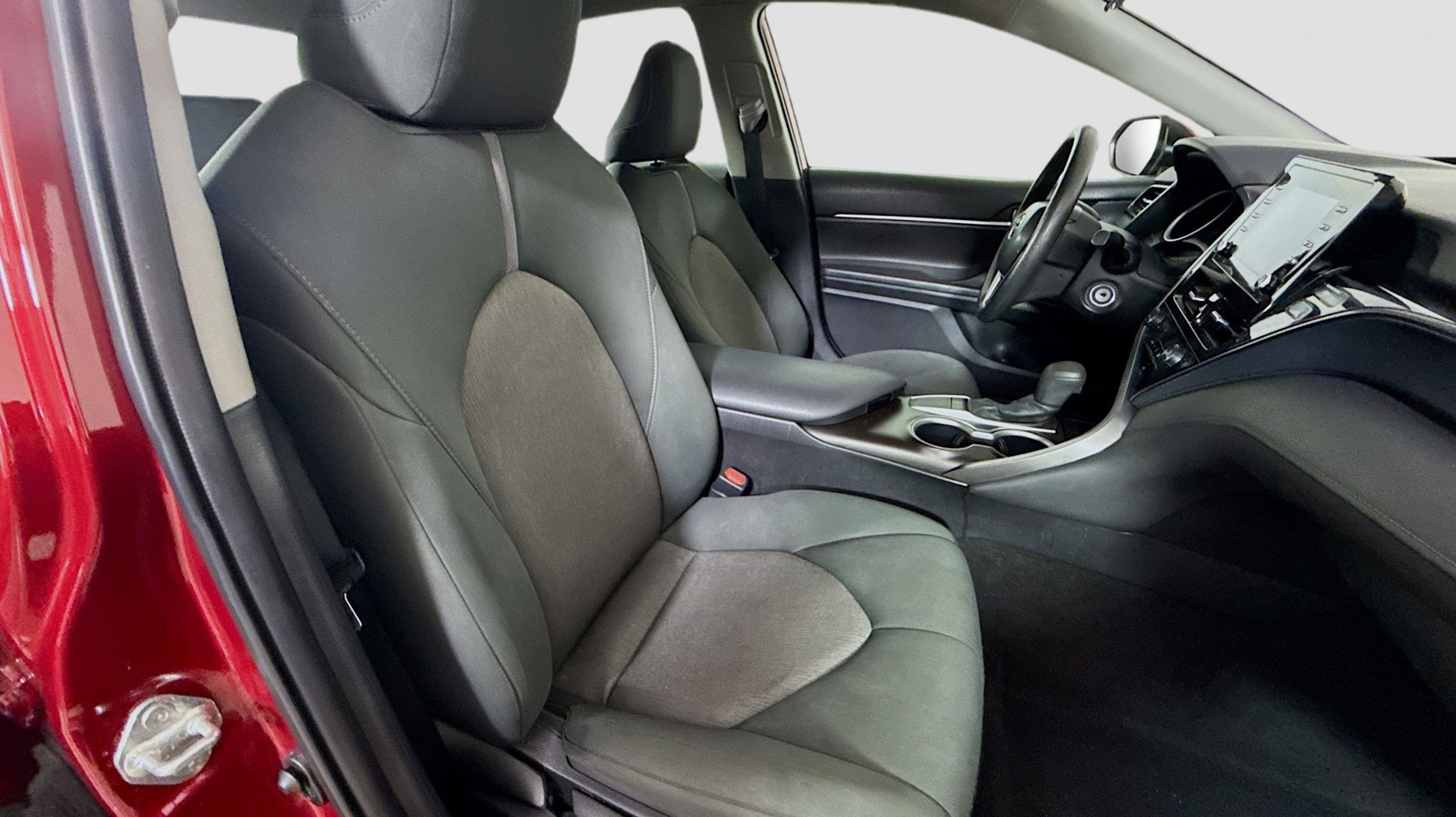 Ruby Flare Pearl 2022 Toyota Camry LE FWD 8-Speed Automatic 2.5L I4 DOHC 16V Black w/Fabric Seat Trim, 4-Wheel Disc Brakes, 6 Speakers, 7.5J x 17 Alloy Wheels, ABS brakes, Air Conditioning, Alloy wheels, AM/FM radio: SiriusXM, Apple CarPlay/Android Auto, Auto High-beam Headlights, Automatic temperature control, Brake assist, Bumpers: body-color, Delay-off headlights, Driver door bin, Driver vanity mirror, Dual front impact airbags, Dual front side impact airbags, Electronic Stability Control, Emergency communication system: Safety Connect with 1-year trial, Exterior Parking Camera Rear, Fabric Seat Trim, Four wheel independent suspension, Front anti-roll bar, Front Bucket Seats, Front Center Armrest, Front dual zone A/C, Front reading lights, Fully automatic headlights, Illuminated entry, Knee airbag, Low tire pressure warning, Occupant sensing airbag, Outside temperature display, Overhead airbag, Overhead console, Panic alarm, Passenger door bin, Passenger vanity mirror, Power door mirrors, Power driver seat, Power steering, Power windows, Radio data system, Radio: AM/FM Audio System, Rear anti-roll bar, Rear seat center armrest, Rear side impact airbag, Rear window defroster, Remote keyless entry, Security system, Speed control, Speed-sensing steering, Split folding rear seat, Steering wheel mounted audio controls, Tachometer, Telescoping steering wheel, Tilt steering wheel, Traction control, Trip computer, Variably intermittent wipers, Black w/Fabric Seat Trim.