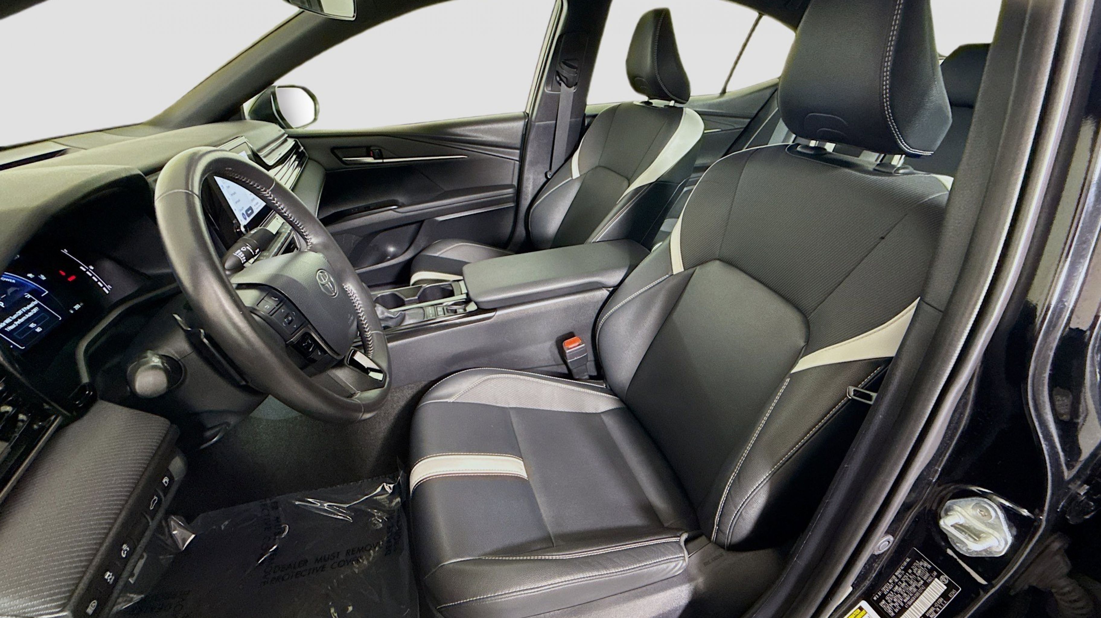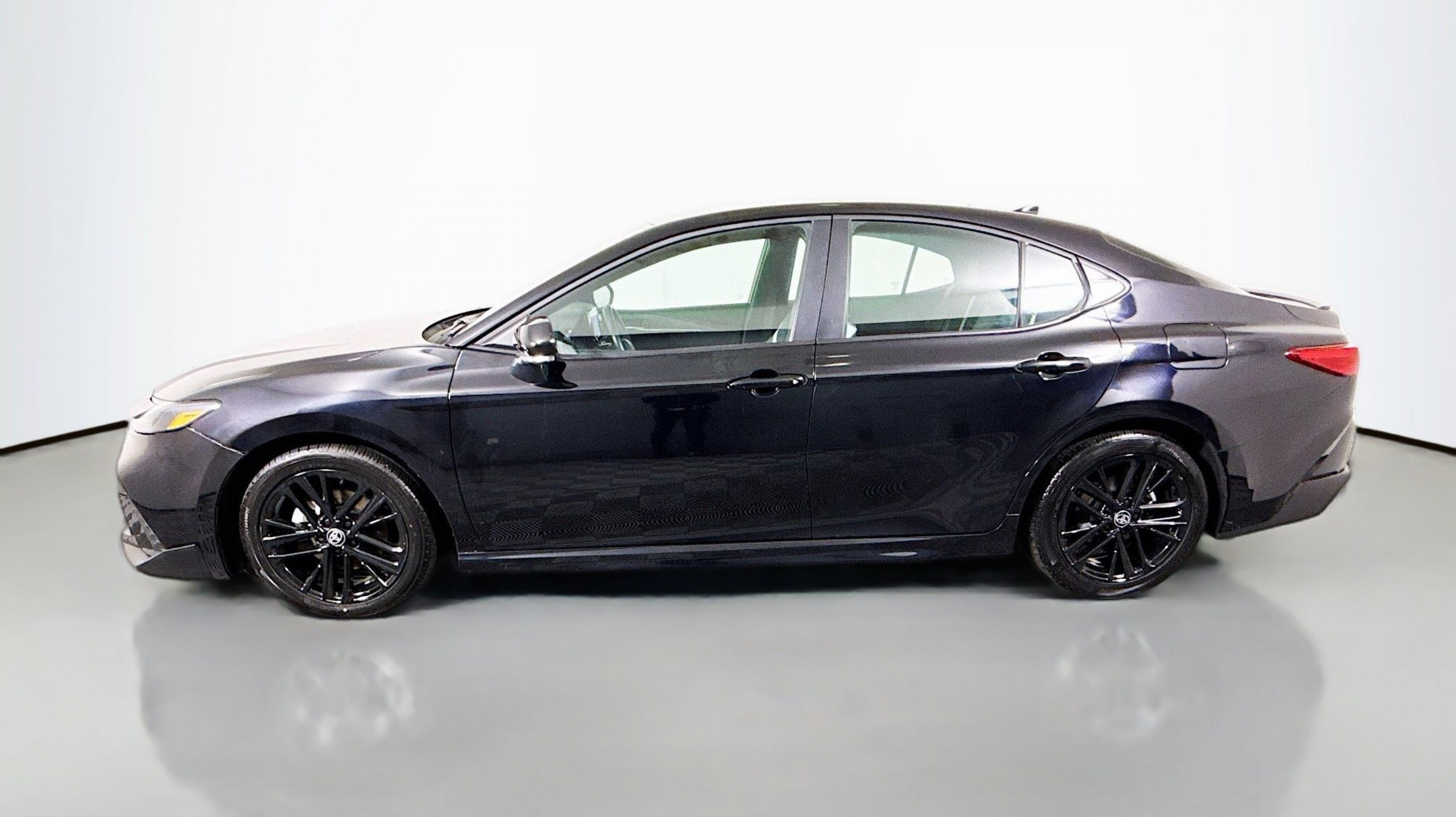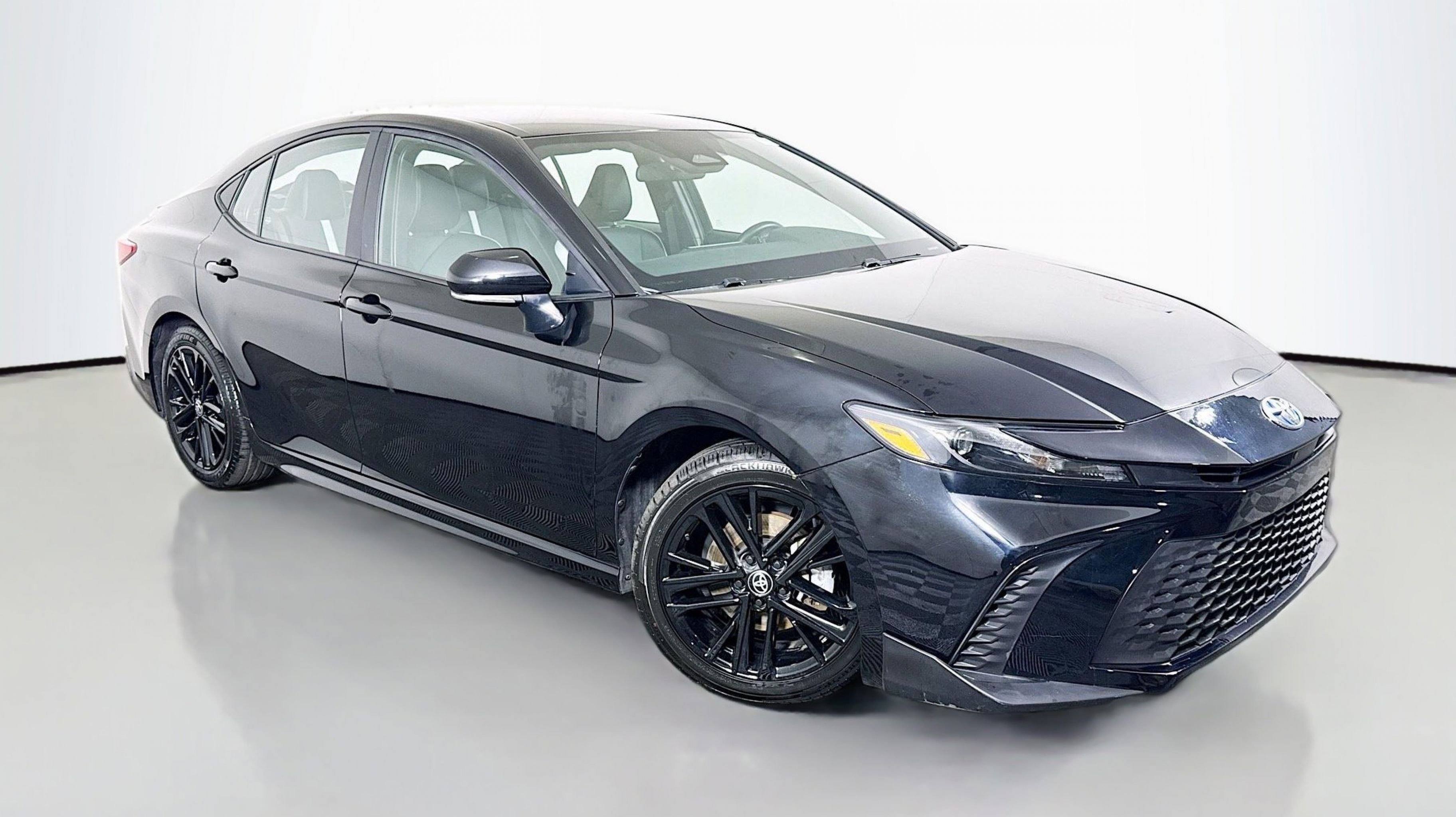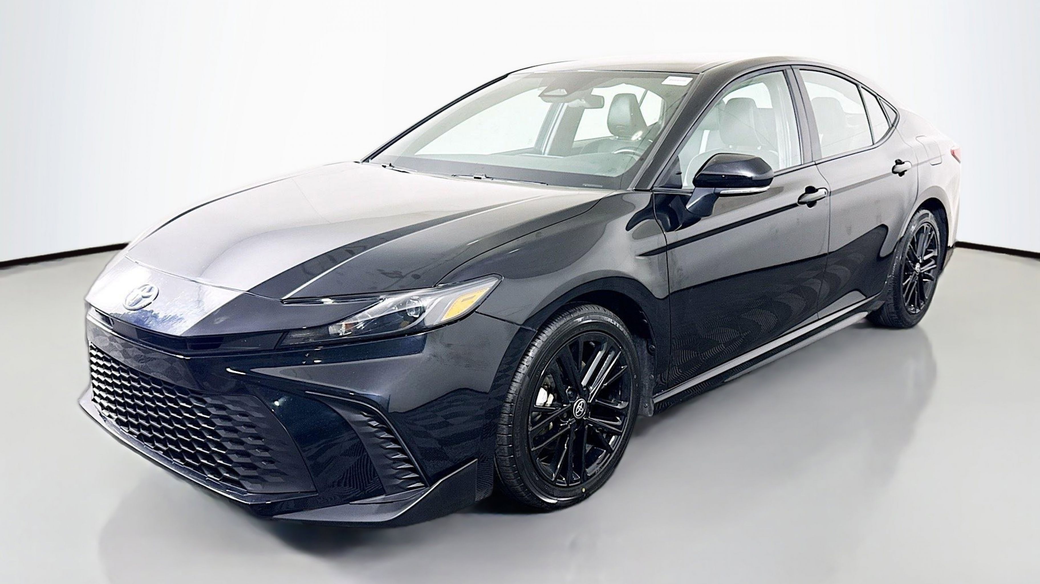Midnight Black Metallic 2025 Toyota Camry LE FWD eCVT 2.5L 4-Cylinder 16V DOHC 2.5L 4-Cylinder 16V DOHC, Black w/Fabric Seat Trim, 4-Wheel Disc Brakes, 6 Speakers, ABS brakes, Air Conditioning, Alloy wheels, AM/FM radio: SiriusXM, Apple CarPlay/Android Auto, Auto High-beam Headlights, Automatic temperature control, Brake assist, Bumpers: body-color, Delay-off headlights, Driver door bin, Driver vanity mirror, Dual front impact airbags, Dual front side impact airbags, Electronic Stability Control, Emergency communication system: Safety Connect (up to 10-year trial subscription), Exterior Parking Camera Rear, Fabric Seat Trim, Four wheel independent suspension, Front anti-roll bar, Front Bucket Seats, Front Center Armrest, Front dual zone A/C, Front reading lights, Fully automatic headlights, Heated door mirrors, Illuminated entry, Knee airbag, Low tire pressure warning, Occupant sensing airbag, Outside temperature display, Overhead airbag, Overhead console, Panic alarm, Passenger door bin, Passenger vanity mirror, Power door mirrors, Power steering, Power windows, Radio data system, Radio: Toyota Audio Multimedia w/8 Touchscreen, Rear anti-roll bar, Rear seat center armrest, Rear side impact airbag, Rear window defroster, Remote keyless entry, Security system, Speed control, Speed-sensing steering, Split folding rear seat, Steering wheel mounted audio controls, Telescoping steering wheel, Tilt steering wheel, Traction control, Trip computer, Turn signal indicator mirrors, Variably intermittent wipers, Wheels: 16 Silver-Finished Alloy, 2.5L 4-Cylinder 16V DOHC, Black w/Fabric Seat Trim.