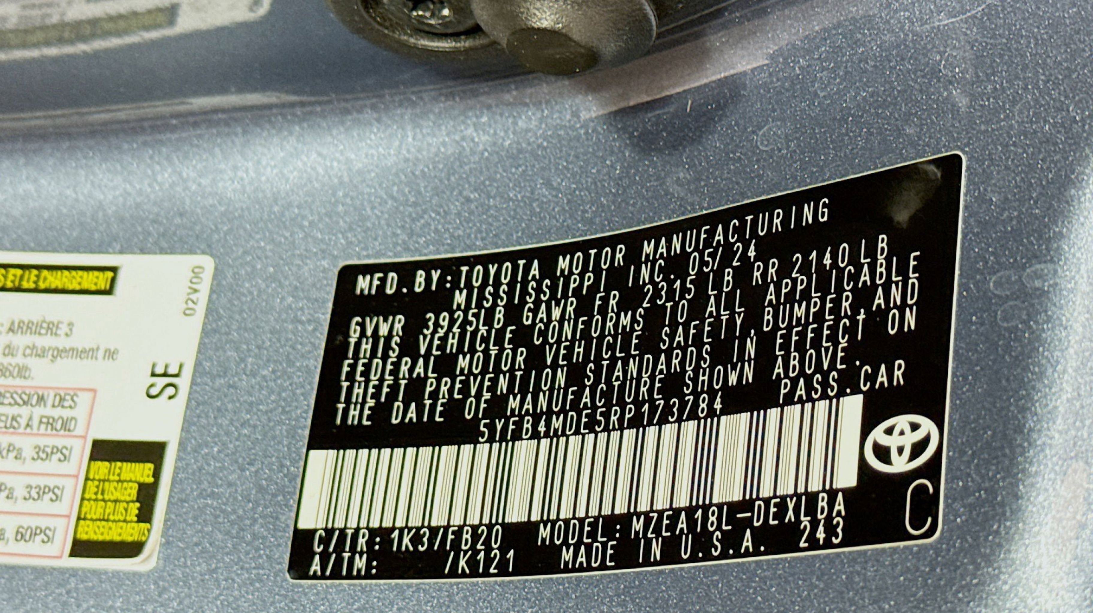 CARFAX One-Owner. Clean CARFAX. 16 Steel Wheels w/Covers, 4-Wheel Disc Brakes, 6 Speakers, ABS brakes, Air Conditioning, AM/FM radio: SiriusXM, Auto High-beam Headlights, Automatic temperature control, Brake assist, Bumpers: body-color, Delay-off headlights, Driver door bin, Driver vanity mirror, Dual front impact airbags, Dual front side impact airbags, Electronic Stability Control, Emergency communication system: Safety Connect (up to 10-year trial subscription), Exterior Parking Camera Rear, Fabric Seat Trim, Front anti-roll bar, Front Bucket Seats, Front Center Armrest, Front reading lights, Front wheel independent suspension, Fully automatic headlights, Illuminated entry, Knee airbag, Low tire pressure warning, Occupant sensing airbag, Outside temperature display, Overhead airbag, Panic alarm, Passenger door bin, Passenger vanity mirror, Power door mirrors, Power steering, Power windows, Radio data system, Radio: 8 Toyota Audio Multimedia, Rear anti-roll bar, Rear seat center armrest, Rear side impact airbag, Rear window defroster, Remote keyless entry, Speed control, Split folding rear seat, Steering wheel mounted audio controls, Tachometer, Telescoping steering wheel, Tilt steering wheel, Traction control, Trip computer.