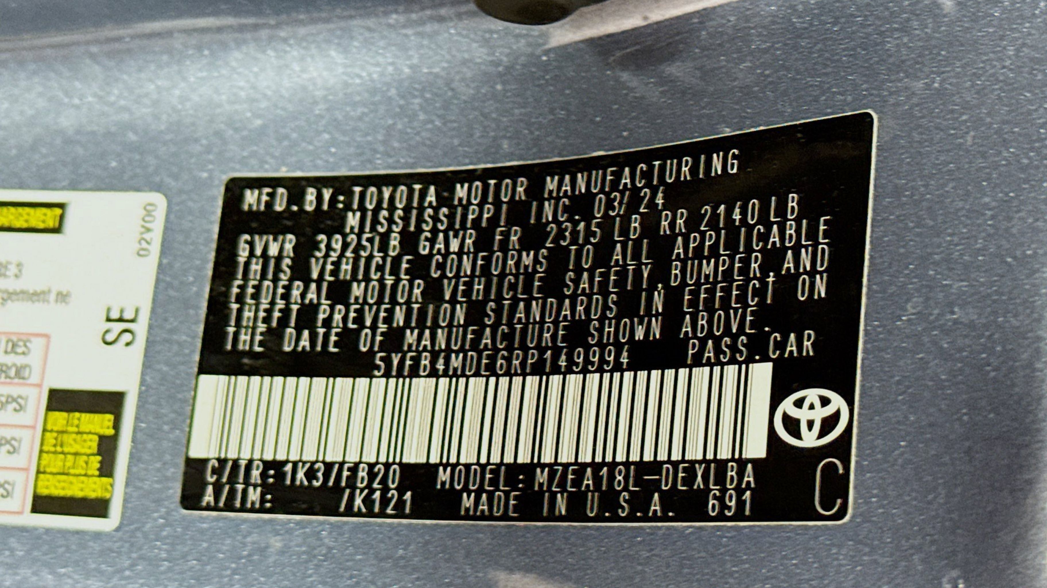 CARFAX One-Owner. Clean CARFAX. 16 Steel Wheels w/Covers, 4-Wheel Disc Brakes, 6 Speakers, ABS brakes, Air Conditioning, AM/FM radio: SiriusXM, Auto High-beam Headlights, Automatic temperature control, Brake assist, Bumpers: body-color, Delay-off headlights, Driver door bin, Driver vanity mirror, Dual front impact airbags, Dual front side impact airbags, Electronic Stability Control, Emergency communication system: Safety Connect (up to 10-year trial subscription), Exterior Parking Camera Rear, Fabric Seat Trim, Front anti-roll bar, Front Bucket Seats, Front Center Armrest, Front reading lights, Front wheel independent suspension, Fully automatic headlights, Illuminated entry, Knee airbag, Low tire pressure warning, Occupant sensing airbag, Outside temperature display, Overhead airbag, Panic alarm, Passenger door bin, Passenger vanity mirror, Power door mirrors, Power steering, Power windows, Radio data system, Radio: 8 Toyota Audio Multimedia, Rear anti-roll bar, Rear seat center armrest, Rear side impact airbag, Rear window defroster, Remote keyless entry, Speed control, Split folding rear seat, Steering wheel mounted audio controls, Tachometer, Telescoping steering wheel, Tilt steering wheel, Traction control, Trip computer.