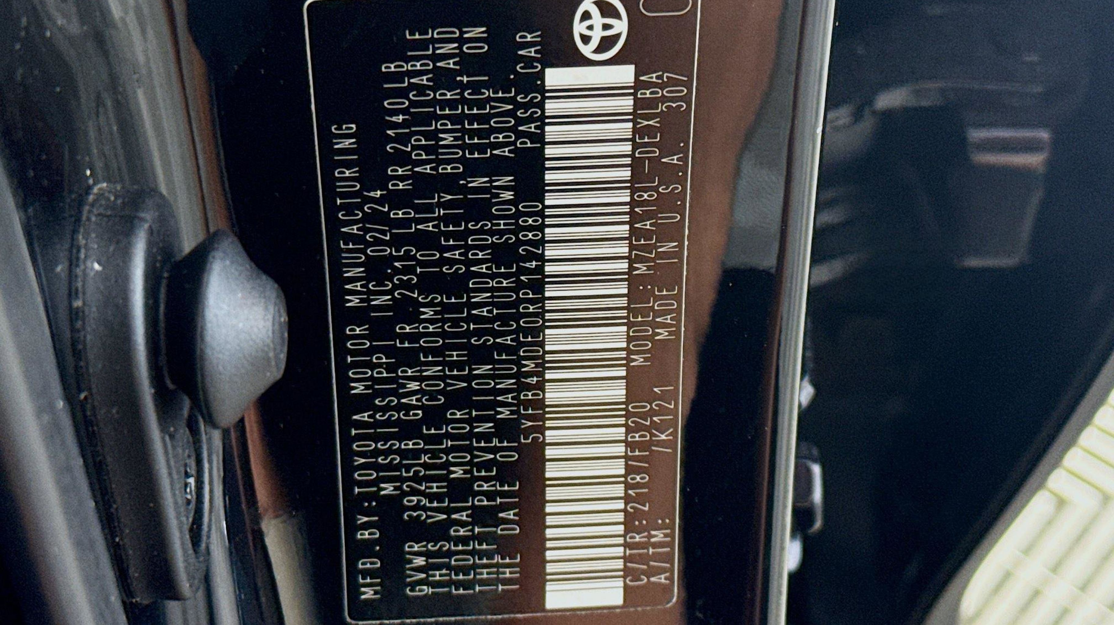 Midnight Black Metallic 2024 Toyota Corolla LE FWD CVT 2.0L I4 DOHC 16V 16 Steel Wheels w/Covers, 4-Wheel Disc Brakes, 6 Speakers, ABS brakes, Air Conditioning, AM/FM radio: SiriusXM, Auto High-beam Headlights, Automatic temperature control, Brake assist, Bumpers: body-color, Delay-off headlights, Driver door bin, Driver vanity mirror, Dual front impact airbags, Dual front side impact airbags, Electronic Stability Control, Emergency communication system: Safety Connect (up to 10-year trial subscription), Exterior Parking Camera Rear, Fabric Seat Trim, Front anti-roll bar, Front Bucket Seats, Front Center Armrest, Front reading lights, Front wheel independent suspension, Fully automatic headlights, Illuminated entry, Knee airbag, Low tire pressure warning, Occupant sensing airbag, Outside temperature display, Overhead airbag, Panic alarm, Passenger door bin, Passenger vanity mirror, Power door mirrors, Power steering, Power windows, Radio data system, Radio: 8 Toyota Audio Multimedia, Rear anti-roll bar, Rear seat center armrest, Rear side impact airbag, Rear window defroster, Remote keyless entry, Speed control, Split folding rear seat, Steering wheel mounted audio controls, Tachometer, Telescoping steering wheel, Tilt steering wheel, Traction control, Trip computer.