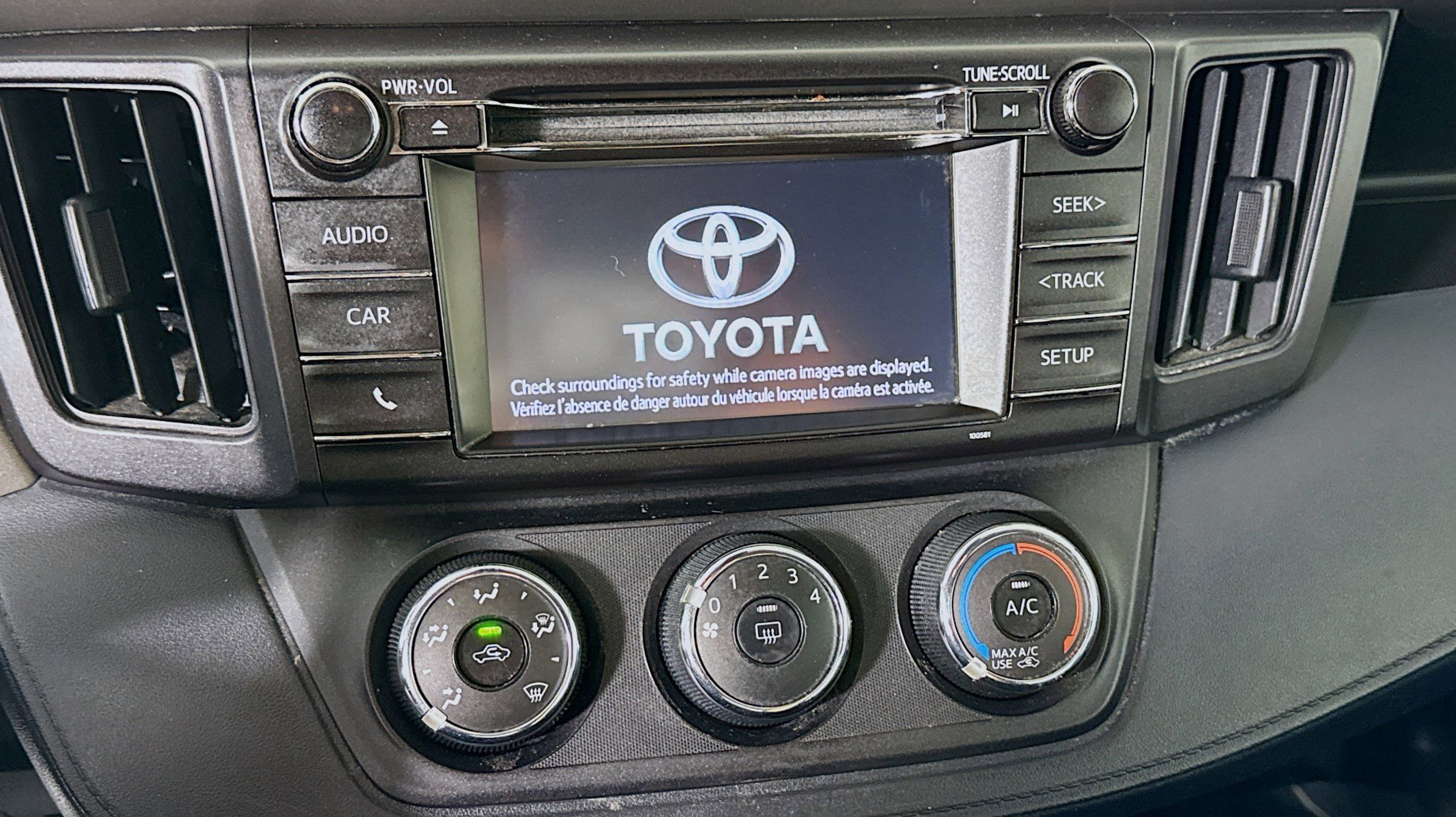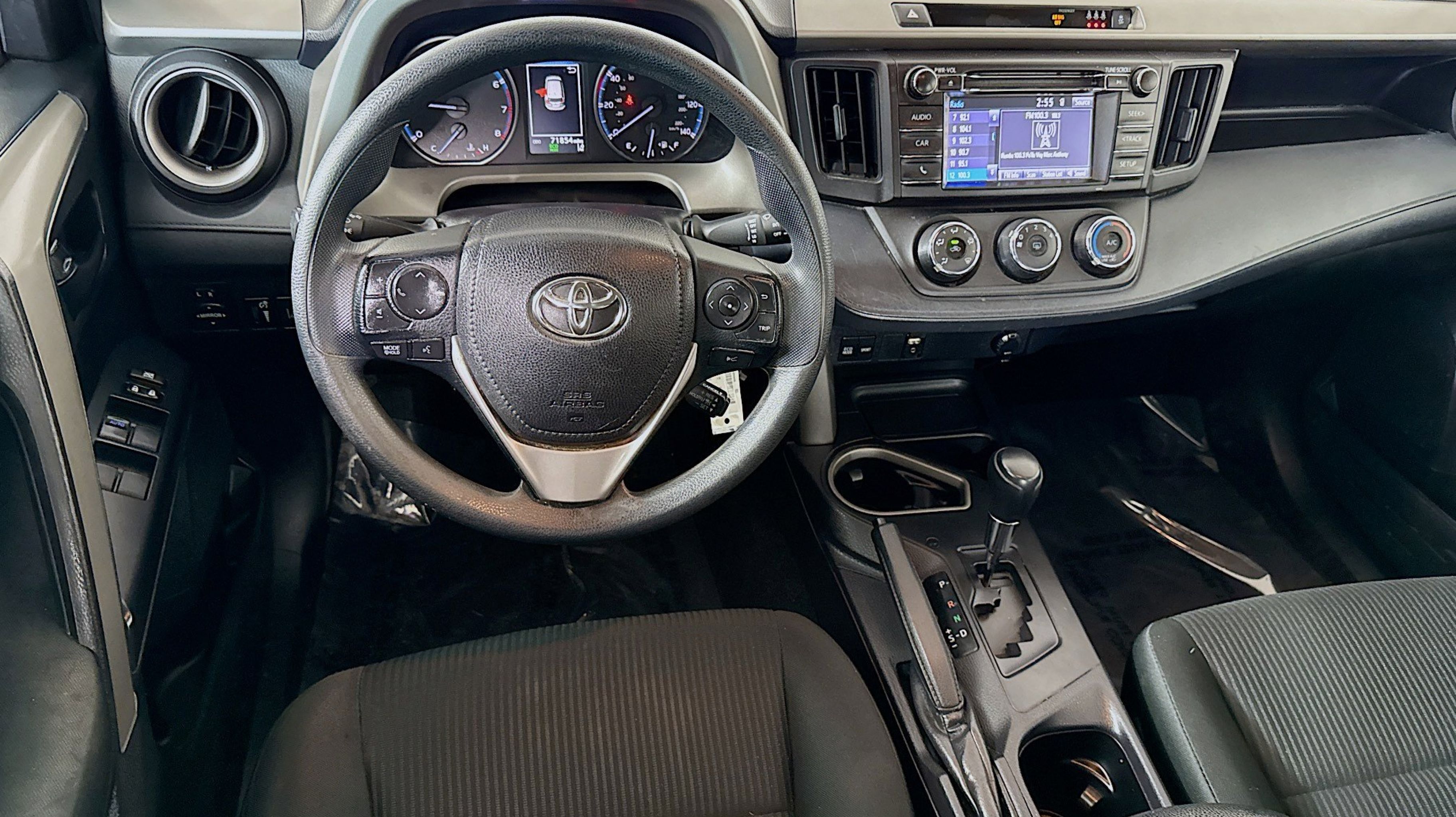 Clean CARFAX. Black w/Fabric Seat Trim, 3.815 Axle Ratio, 4-Wheel Disc Brakes, 6 Speakers, ABS brakes, Air Conditioning, AM/FM radio, Auto High-beam Headlights, Brake assist, Bumpers: body-color, CD player, Driver door bin, Driver vanity mirror, Dual front impact airbags, Dual front side impact airbags, Electronic Stability Control, Exterior Parking Camera Rear, Fabric Seat Trim, Four wheel independent suspension, Front anti-roll bar, Front Bucket Seats, Front Center Armrest, Front reading lights, Fully automatic headlights, Illuminated entry, Knee airbag, Low tire pressure warning, Occupant sensing airbag, Outside temperature display, Overhead airbag, Overhead console, Panic alarm, Passenger door bin, Passenger vanity mirror, Power door mirrors, Power steering, Power windows, Radio data system, Radio: Entune AM/FM/CD/MP3/WMA Playback w/6 Speakers, Rear anti-roll bar, Rear seat center armrest, Rear window defroster, Rear window wiper, Remote keyless entry, Speed control, Speed-sensing steering, Split folding rear seat, Spoiler, Steering wheel mounted audio controls, Tachometer, Telescoping steering wheel, Tilt steering wheel, Traction control, Trip computer, Wheels: 17 x 6.5J, Black w/Fabric Seat Trim.