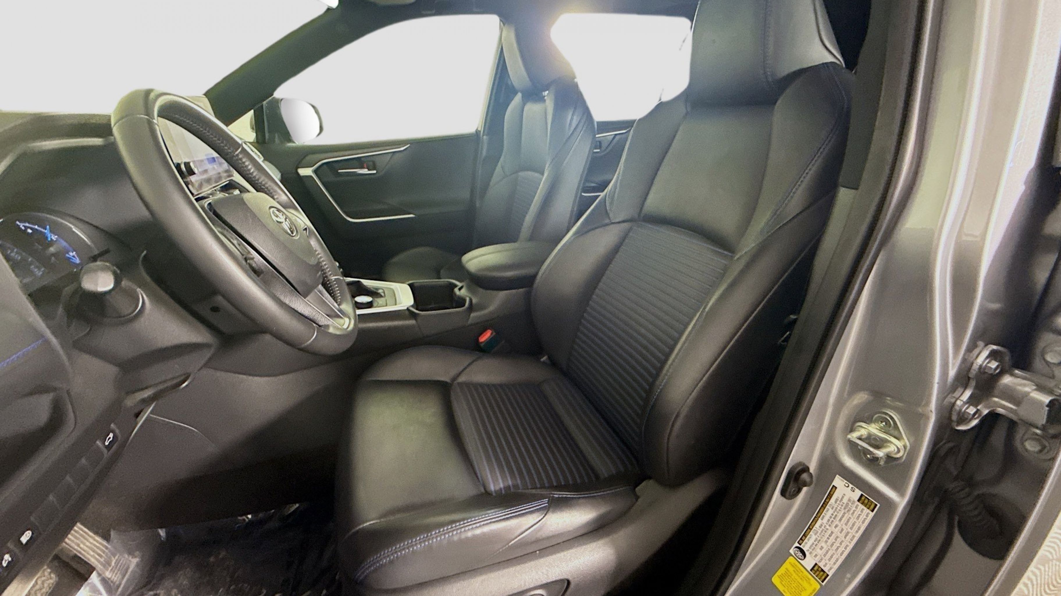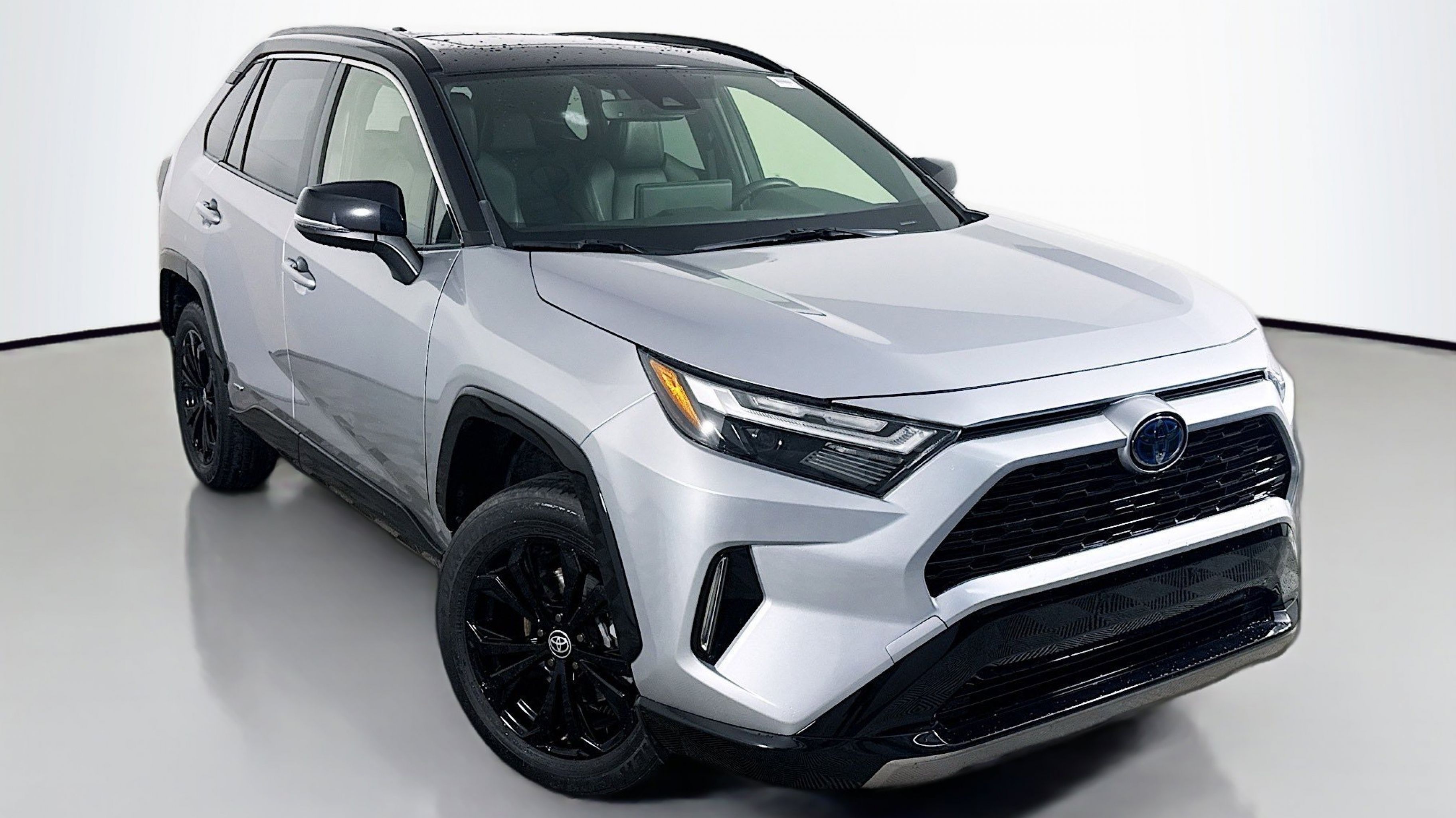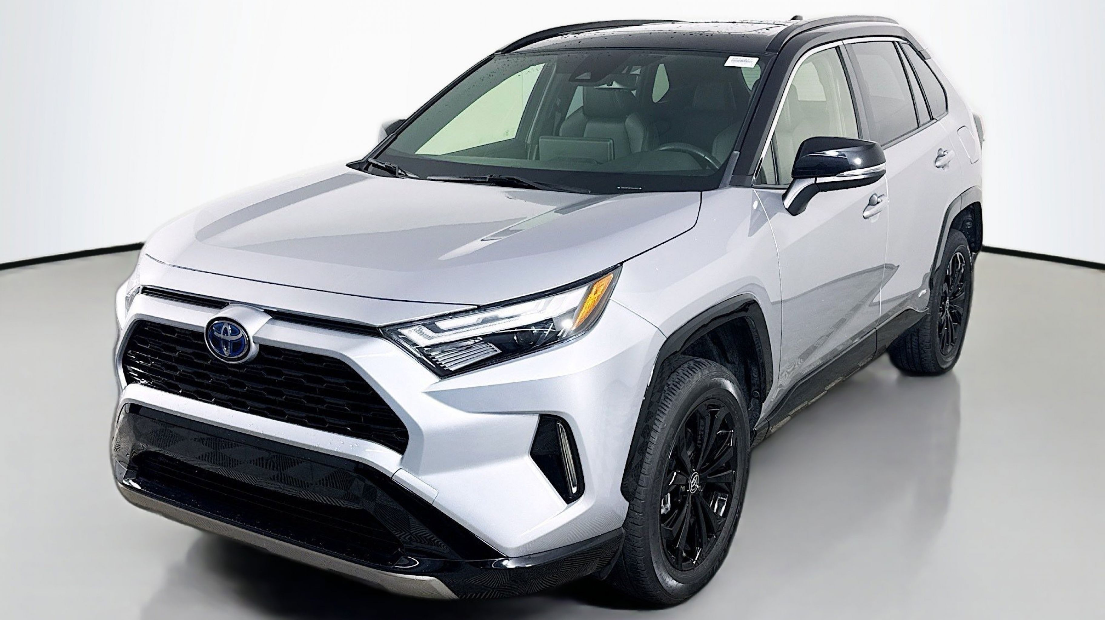 Silver Sky Metallic 2023 Toyota RAV4 Hybrid XSE AWD eCVT 2.5L 4-Cylinder 2.5L 4-Cylinder, 4-Wheel Disc Brakes, 6 Speakers, ABS brakes, Air Conditioning, Alloy wheels, AM/FM radio: SiriusXM, Auto High-beam Headlights, Auto-dimming Rear-View mirror, Automatic temperature control, Axle Ratio: TBD, Brake assist, Bumpers: body-color, Delay-off headlights, Driver door bin, Driver vanity mirror, Dual front impact airbags, Dual front side impact airbags, Electronic Stability Control, Emergency communication system: Safety Connect (1-year trial), Four wheel independent suspension, Front anti-roll bar, Front Bucket Seats, Front Center Armrest, Front dual zone A/C, Front reading lights, Fully automatic headlights, Garage door transmitter: HomeLink, Heated door mirrors, Heated Front Seats, Heated front seats, Illuminated entry, Knee airbag, Lane Departure Warning System, Leather Shift Knob, Low tire pressure warning, Occupant sensing airbag, Outside temperature display, Overhead airbag, Overhead console, Panic alarm, PANORAMA SUNROOF, Passenger door bin, Passenger vanity mirror, Power door mirrors, Power driver seat, Power Liftgate, Power steering, Power windows, Radio data system, Radio: AM/FM/XM Audio System, Rear anti-roll bar, Rear seat center armrest, Rear window defroster, Rear window wiper, Remote keyless entry, Security system, SofTex Seat Trim, Speed control, Speed-sensing steering, Split folding rear seat, Spoiler, Steering wheel mounted audio controls, Telescoping steering wheel, Tilt steering wheel, Traction control, Trip computer, Turn signal indicator mirrors, Variably intermittent wipers, Wheels: 18 x 7.0J Black-Painted Aluminum Alloy, 2.5L 4-Cylinder.