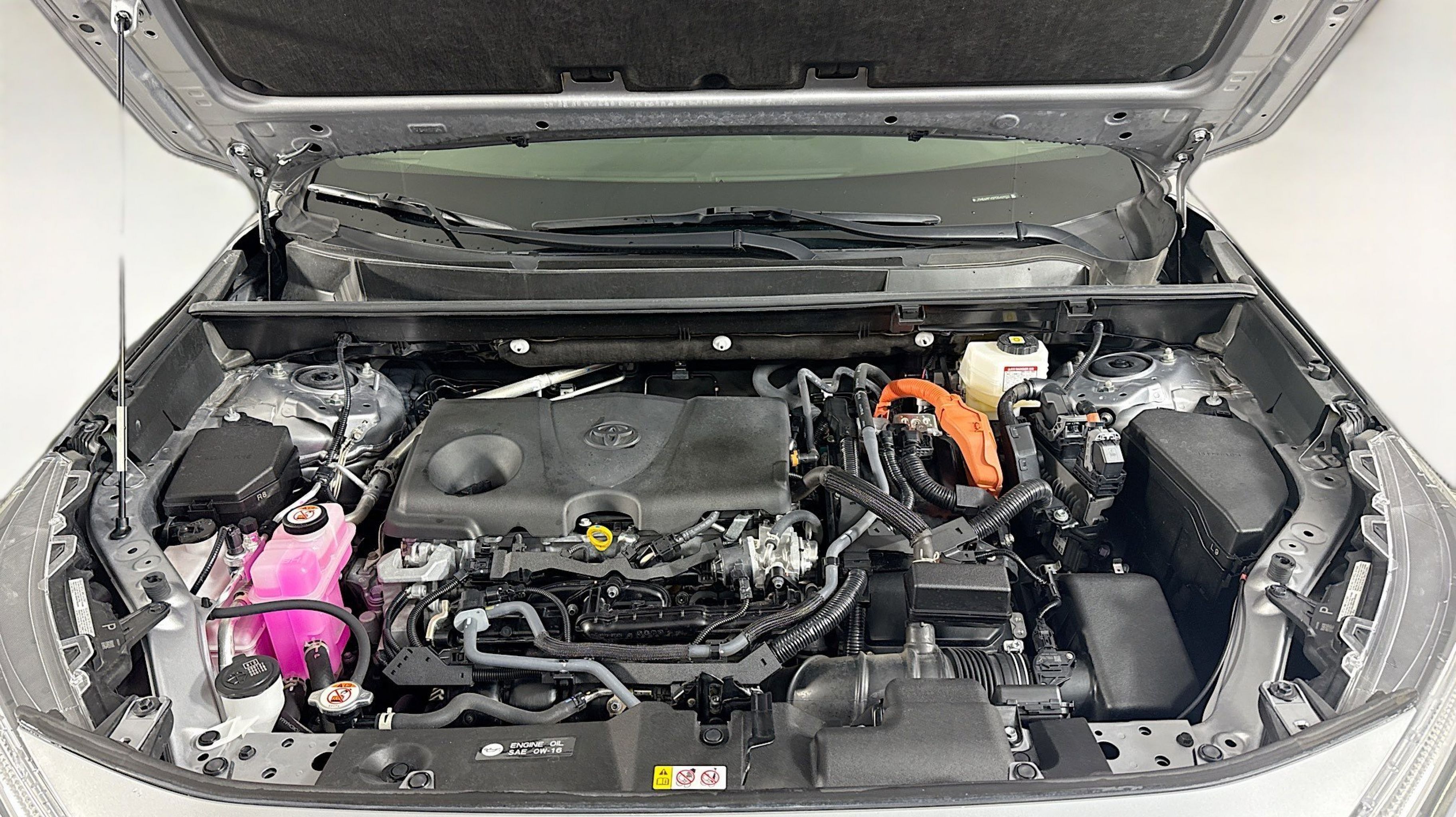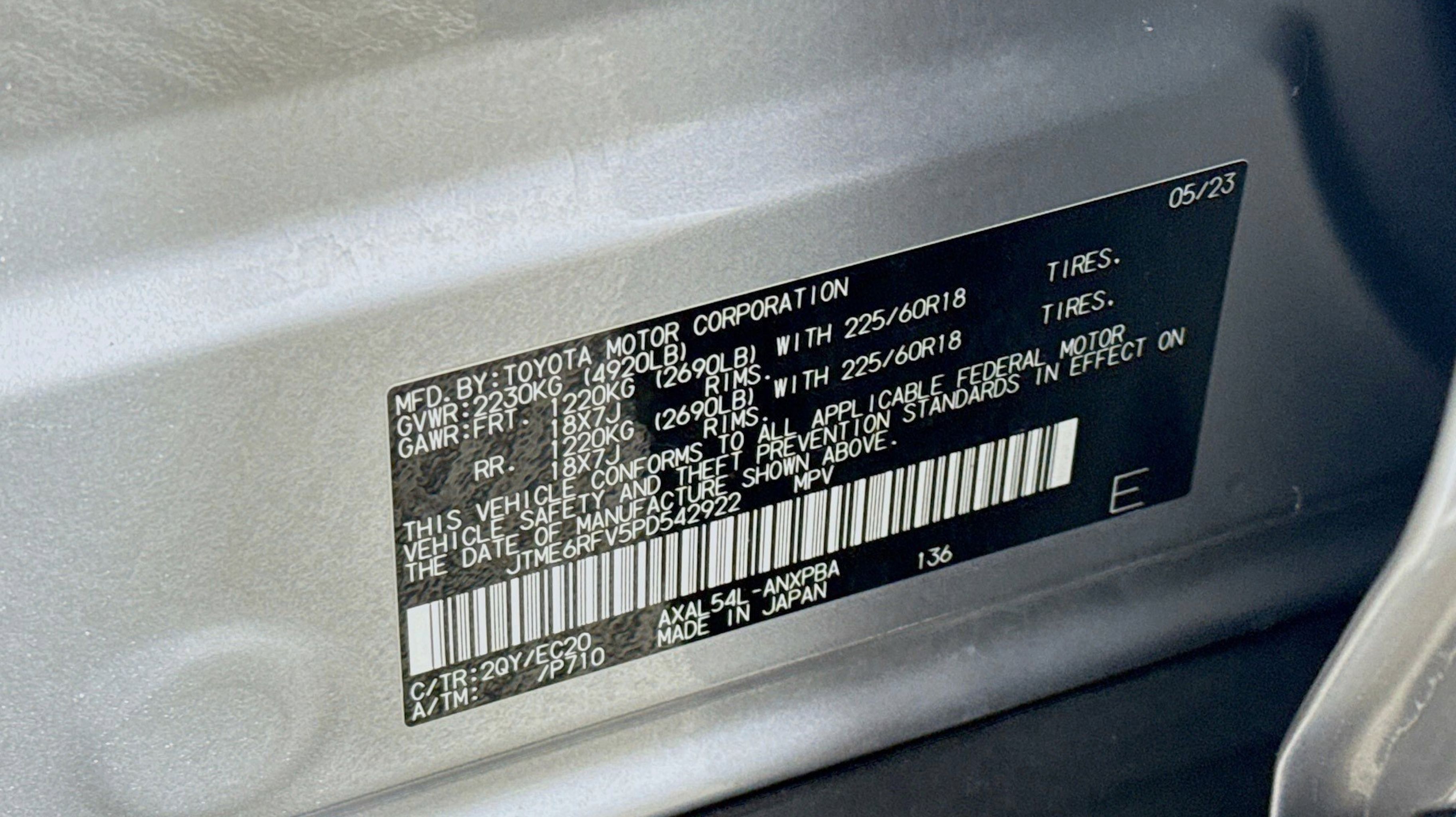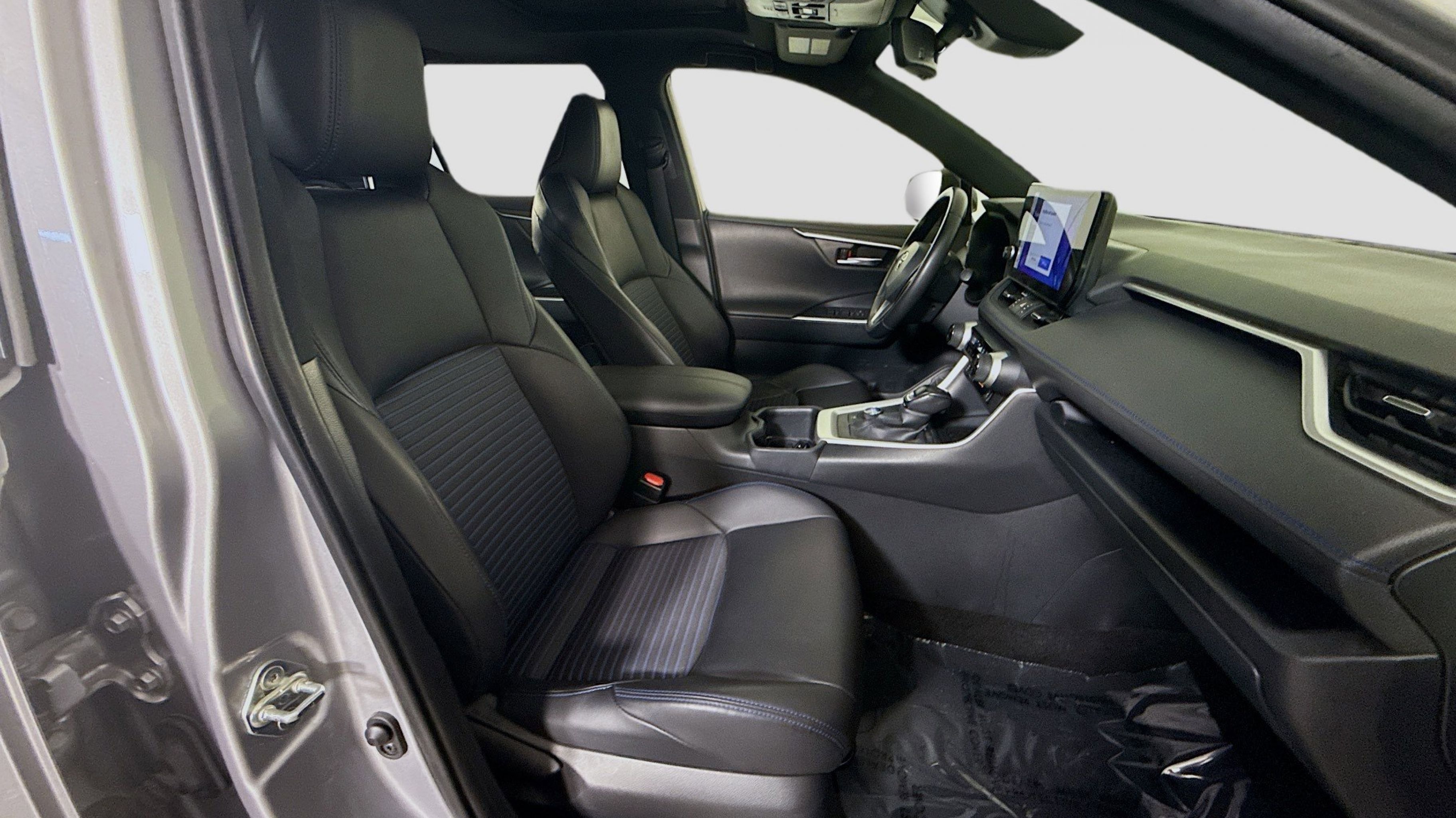 Silver Sky Metallic 2023 Toyota RAV4 Hybrid XSE AWD eCVT 2.5L 4-Cylinder 2.5L 4-Cylinder, 4-Wheel Disc Brakes, 6 Speakers, ABS brakes, Air Conditioning, Alloy wheels, AM/FM radio: SiriusXM, Auto High-beam Headlights, Auto-dimming Rear-View mirror, Automatic temperature control, Axle Ratio: TBD, Brake assist, Bumpers: body-color, Delay-off headlights, Driver door bin, Driver vanity mirror, Dual front impact airbags, Dual front side impact airbags, Electronic Stability Control, Emergency communication system: Safety Connect (1-year trial), Four wheel independent suspension, Front anti-roll bar, Front Bucket Seats, Front Center Armrest, Front dual zone A/C, Front reading lights, Fully automatic headlights, Garage door transmitter: HomeLink, Heated door mirrors, Heated Front Seats, Heated front seats, Illuminated entry, Knee airbag, Lane Departure Warning System, Leather Shift Knob, Low tire pressure warning, Occupant sensing airbag, Outside temperature display, Overhead airbag, Overhead console, Panic alarm, PANORAMA SUNROOF, Passenger door bin, Passenger vanity mirror, Power door mirrors, Power driver seat, Power Liftgate, Power steering, Power windows, Radio data system, Radio: AM/FM/XM Audio System, Rear anti-roll bar, Rear seat center armrest, Rear window defroster, Rear window wiper, Remote keyless entry, Security system, SofTex Seat Trim, Speed control, Speed-sensing steering, Split folding rear seat, Spoiler, Steering wheel mounted audio controls, Telescoping steering wheel, Tilt steering wheel, Traction control, Trip computer, Turn signal indicator mirrors, Variably intermittent wipers, Wheels: 18 x 7.0J Black-Painted Aluminum Alloy, 2.5L 4-Cylinder.
