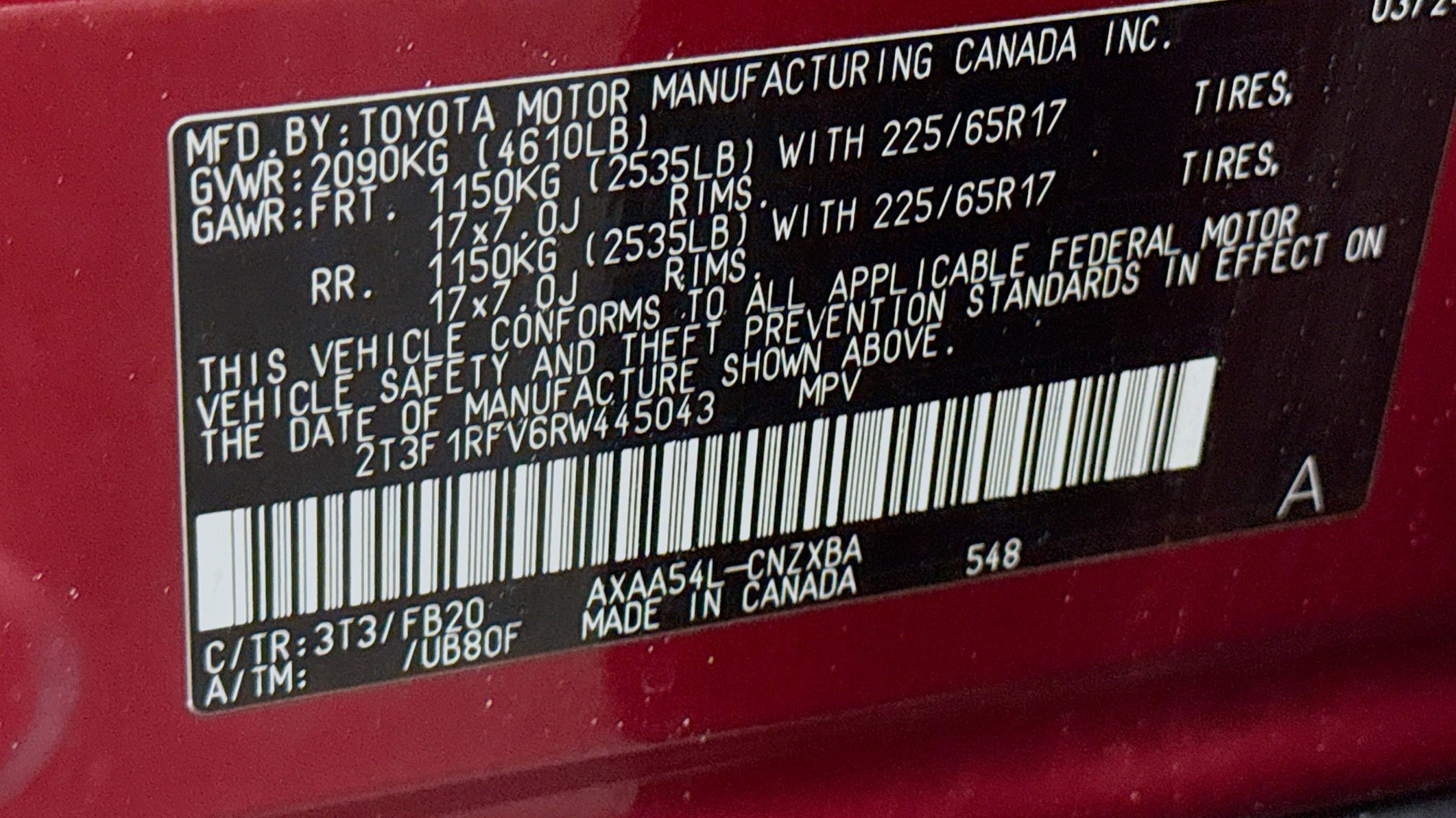 - Tires - Rear All-Season