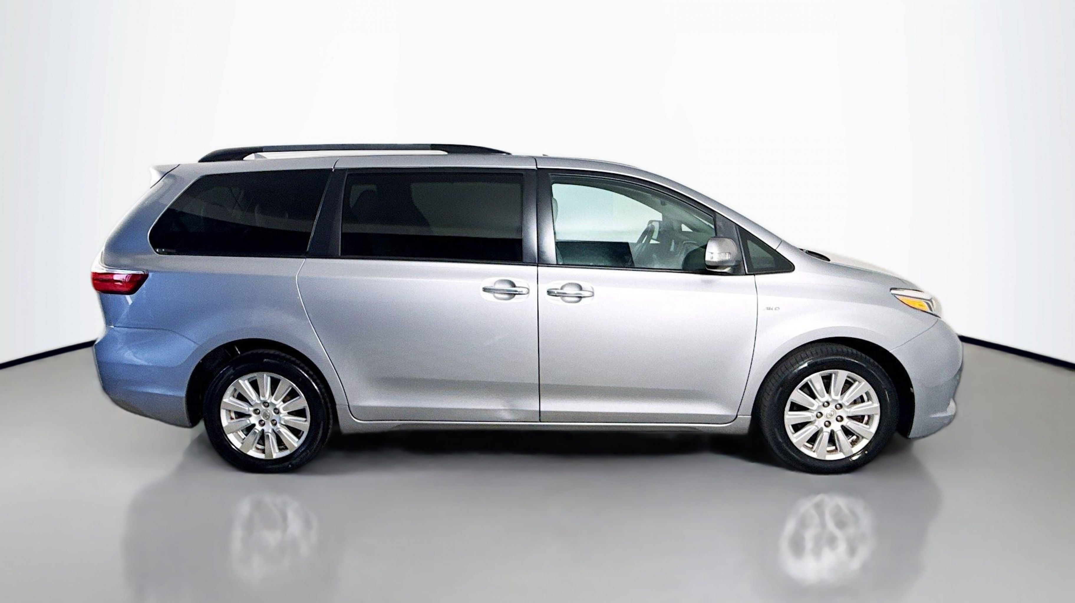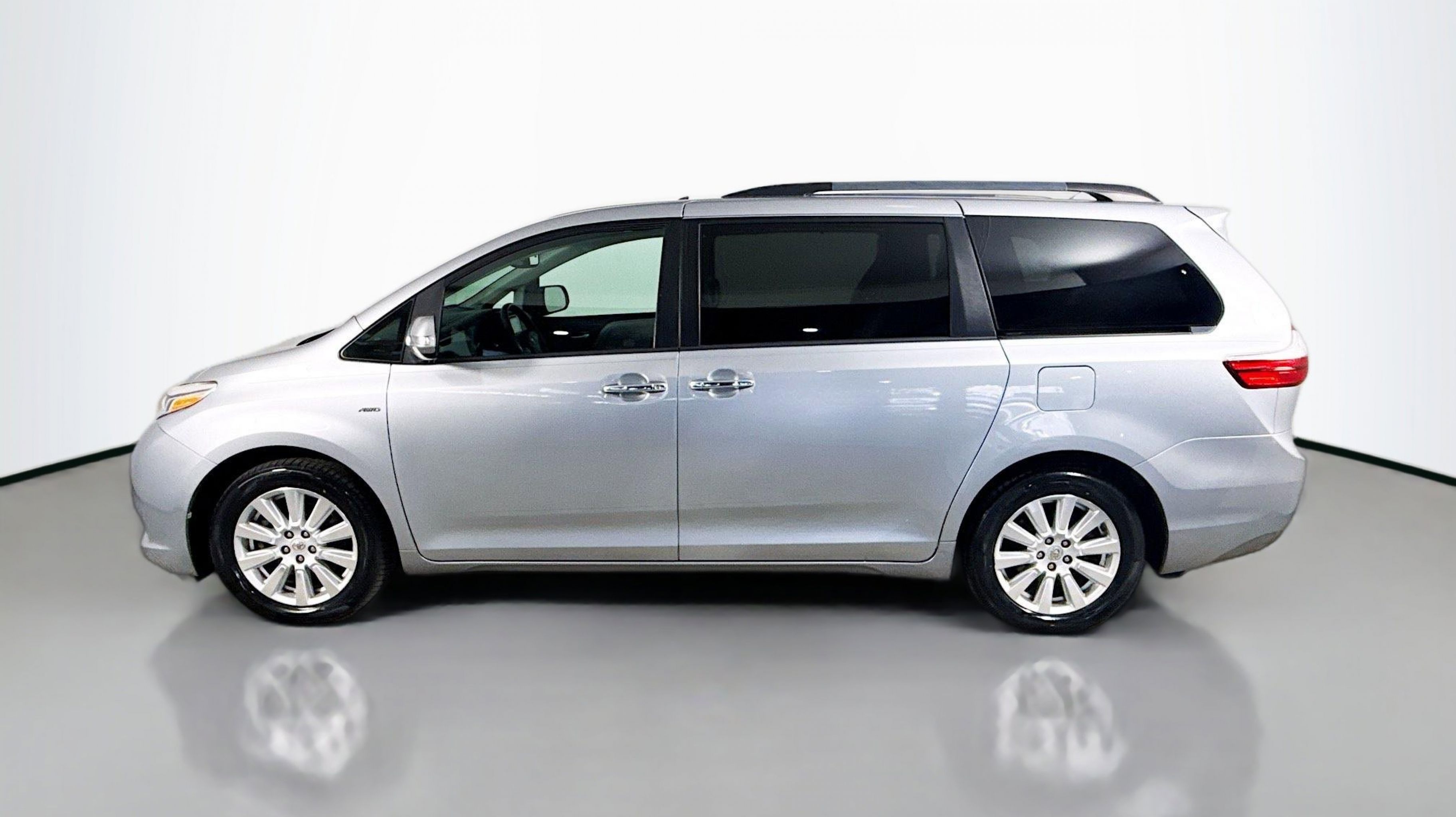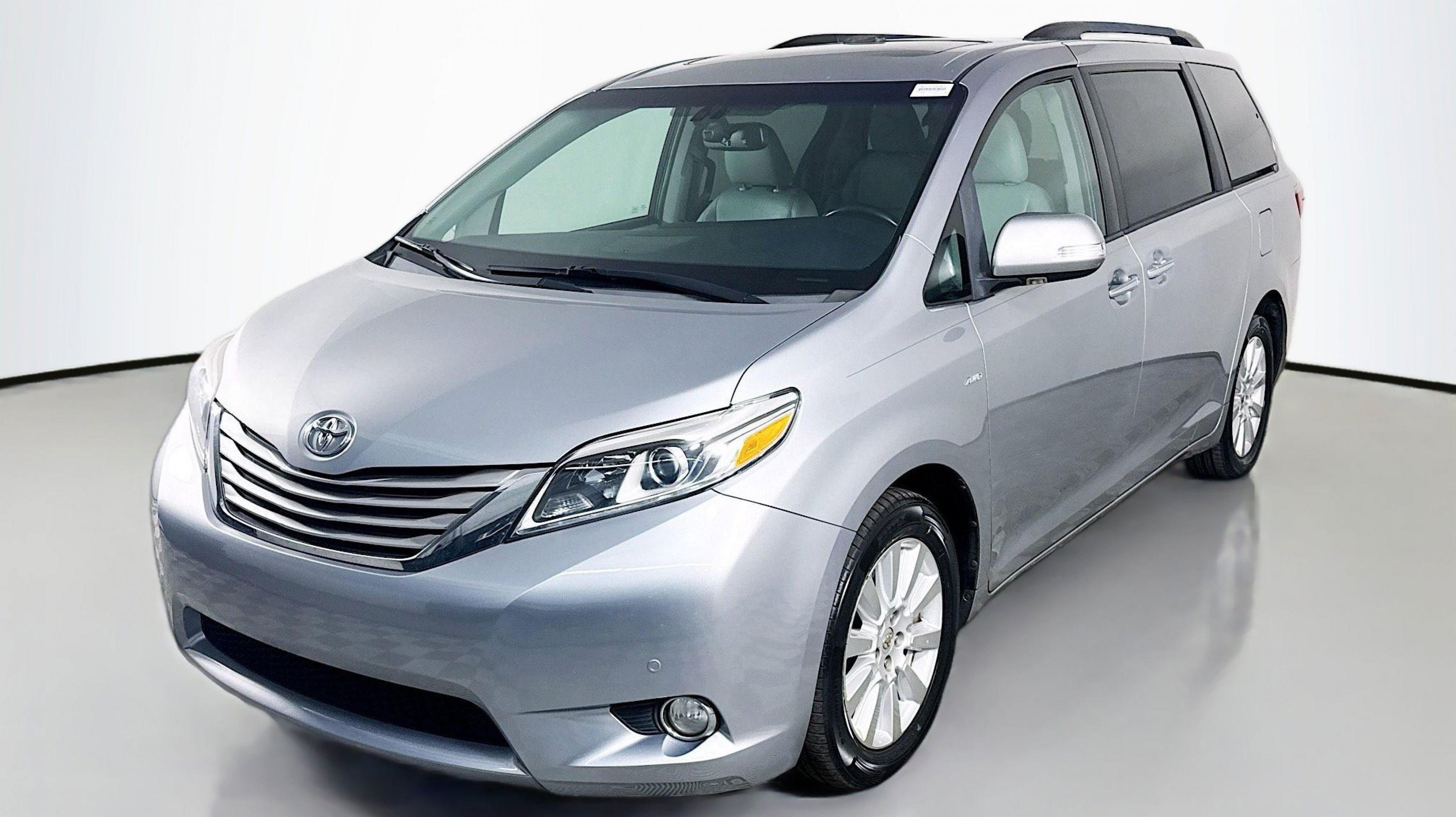 Silver Sky Metallic 2017 Toyota Sienna Limited 7 Passenger AWD 8-Speed Automatic 3.5L V6 SMPI DOHC AWD, 10 Speakers, 18 x 7 10-Spoke Machine Finish Alloy Wheels, 3rd row seats: split-bench, 4-Wheel Disc Brakes, ABS brakes, Air Conditioning, Airbag Beacon Mayday System, Alloy wheels, AM/FM radio: SiriusXM, Auto-dimming door mirrors, Auto-dimming Rear-View mirror, Automatic temperature control, Axle Ratio: 4.15, Brake assist, Bumpers: body-color, CD player, Compass, Daytime Running Lamp System, Delay-off headlights, Door auto-latch, Driver door bin, Driver vanity mirror, Driver's Seat Mounted Armrest, Dual front impact airbags, Dual front side impact airbags, Electronic Stability Control, Emergency communication system: Safety Connect, Exterior Parking Camera Rear, FR Tilt & Slide/RR Slide Sunroof & Moonroof, Front anti-roll bar, Front Bucket Seats, Front dual zone A/C, Front fog lights, Front reading lights, Front wheel independent suspension, Fully automatic headlights, Garage door transmitter: HomeLink, Heated door mirrors, Heated Front Bucket Seats, Heated front seats, Heated steering wheel, Illuminated entry, Knee airbag, Leather Seat Material, Low tire pressure warning, Memory seat, Navigation System, Occupant sensing airbag, Outside temperature display, Overhead airbag, Overhead console, Panic alarm, PANORAMA SUNROOF, Passenger door bin, Passenger seat mounted armrest, Passenger vanity mirror, Power 2nd-Row Moonroof, Power door mirrors, Power driver seat, Power Liftgate, Power passenger seat, Power steering, Power windows, Radio data system, Radio: AM/FM/HD/CD w/10 Speakers, Rear air conditioning, Rear anti-roll bar, Rear reading lights, Rear window defroster, Rear window wiper, Reclining 3rd row seat, Remote keyless entry, Roof rack: rails only, Security system, Speed control, Speed-sensing steering, Split folding rear seat, Spoiler, Steering wheel mounted audio controls, Tachometer, Telescoping steering wheel, Tilt steering wheel, Traction control, Trip computer, Turn signal indicator mirrors, Variably intermittent wipers, AWD.