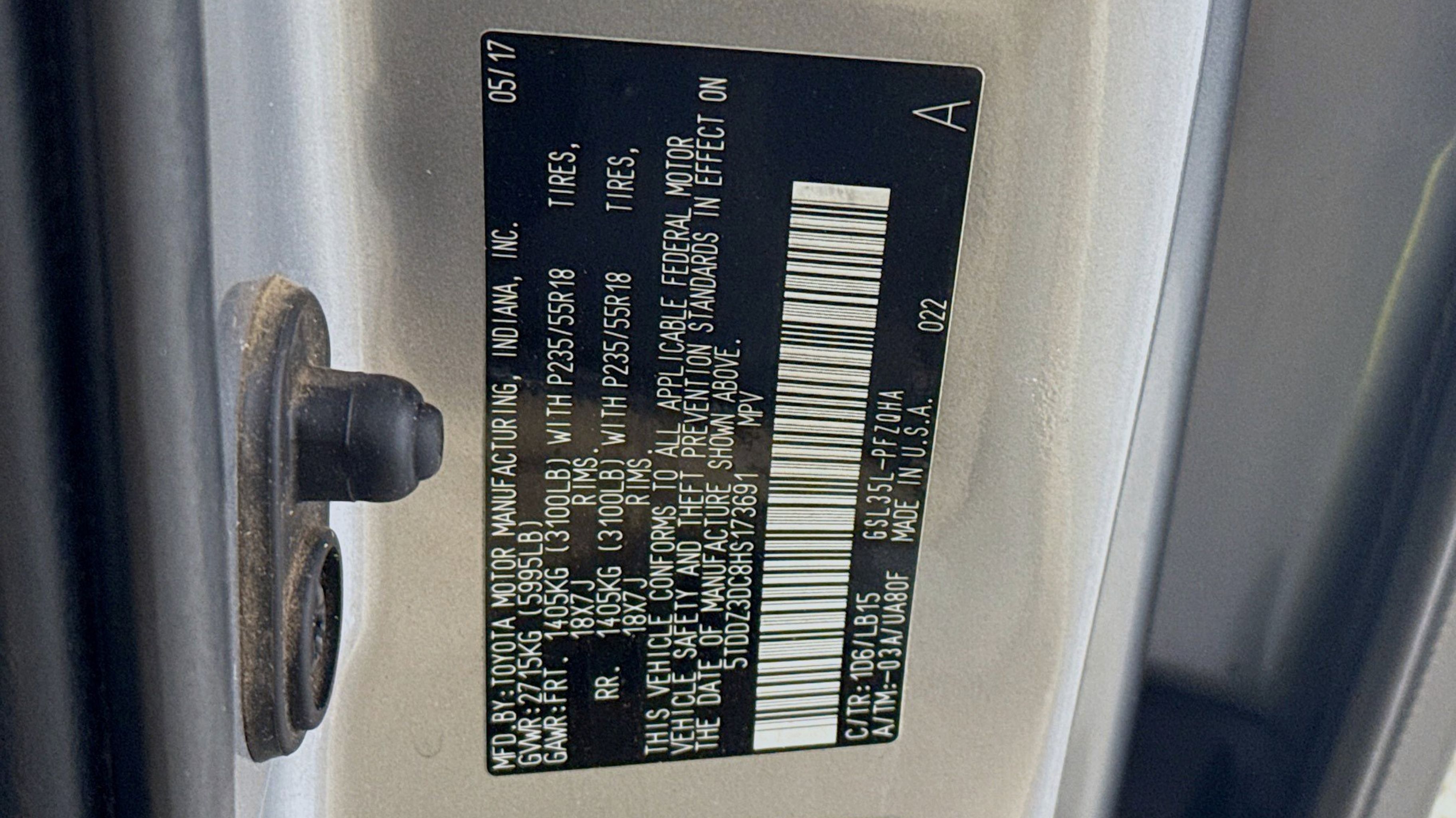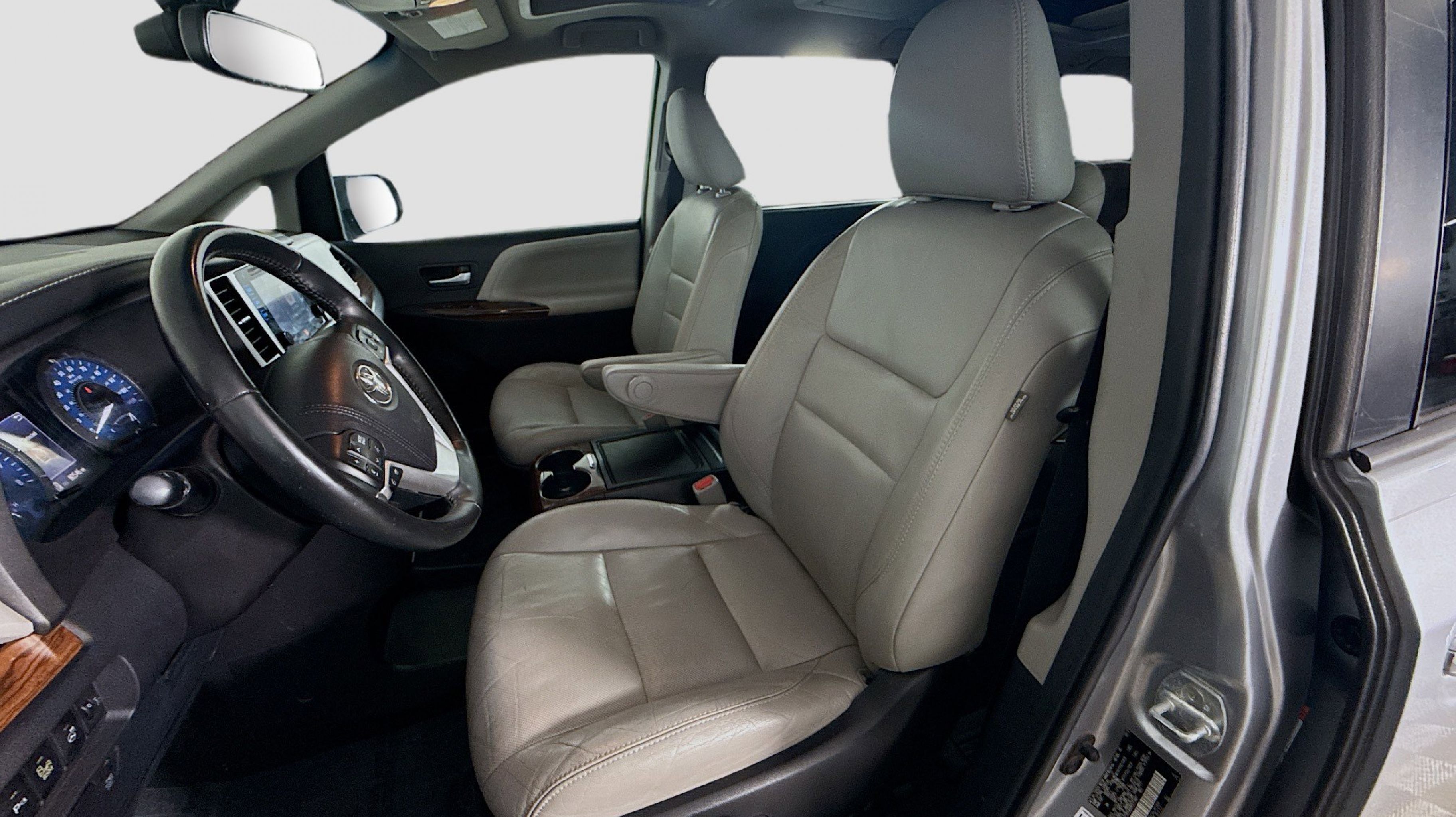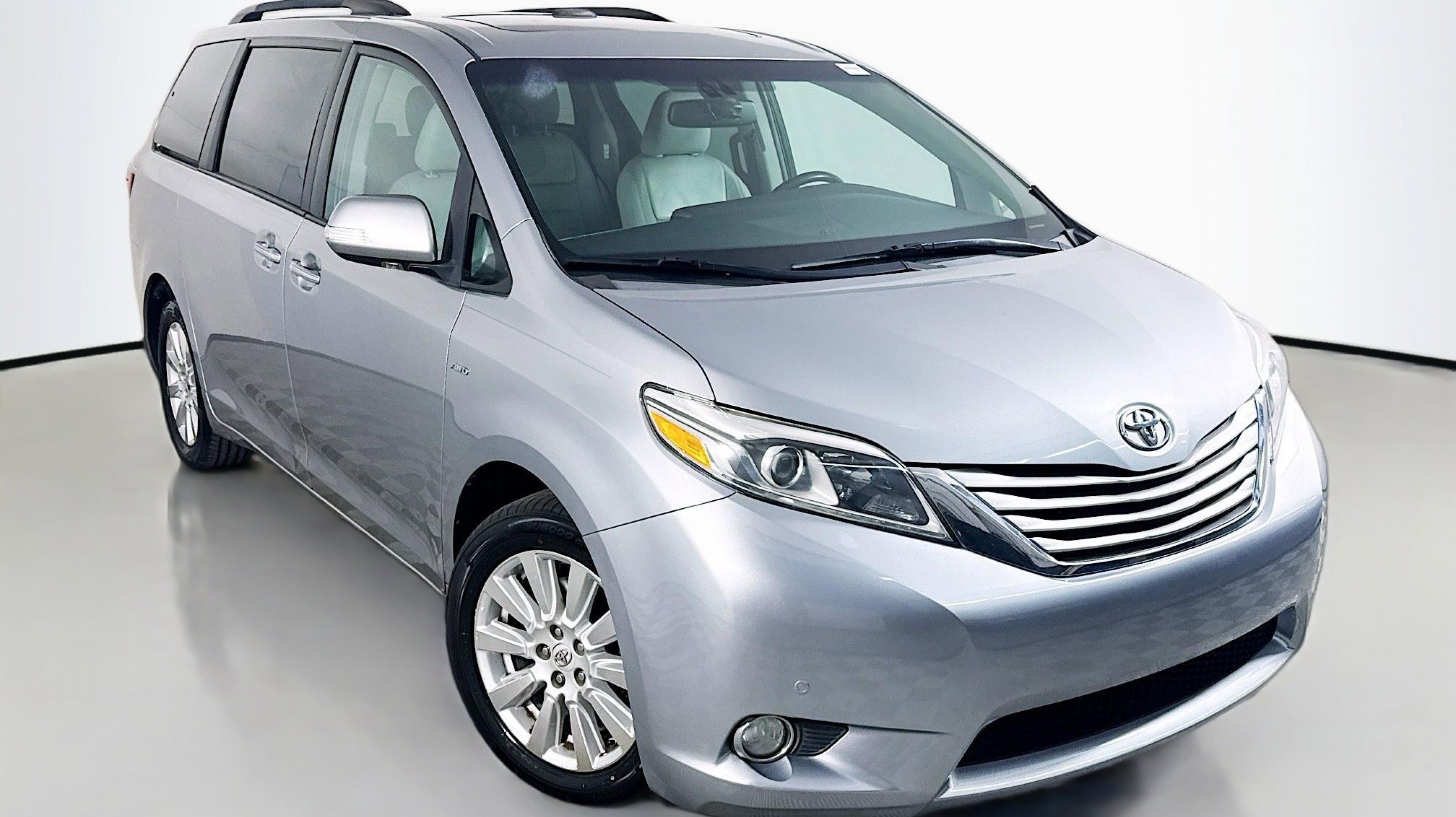 Silver Sky Metallic 2017 Toyota Sienna Limited 7 Passenger AWD 8-Speed Automatic 3.5L V6 SMPI DOHC AWD, 10 Speakers, 18 x 7 10-Spoke Machine Finish Alloy Wheels, 3rd row seats: split-bench, 4-Wheel Disc Brakes, ABS brakes, Air Conditioning, Airbag Beacon Mayday System, Alloy wheels, AM/FM radio: SiriusXM, Auto-dimming door mirrors, Auto-dimming Rear-View mirror, Automatic temperature control, Axle Ratio: 4.15, Brake assist, Bumpers: body-color, CD player, Compass, Daytime Running Lamp System, Delay-off headlights, Door auto-latch, Driver door bin, Driver vanity mirror, Driver's Seat Mounted Armrest, Dual front impact airbags, Dual front side impact airbags, Electronic Stability Control, Emergency communication system: Safety Connect, Exterior Parking Camera Rear, FR Tilt & Slide/RR Slide Sunroof & Moonroof, Front anti-roll bar, Front Bucket Seats, Front dual zone A/C, Front fog lights, Front reading lights, Front wheel independent suspension, Fully automatic headlights, Garage door transmitter: HomeLink, Heated door mirrors, Heated Front Bucket Seats, Heated front seats, Heated steering wheel, Illuminated entry, Knee airbag, Leather Seat Material, Low tire pressure warning, Memory seat, Navigation System, Occupant sensing airbag, Outside temperature display, Overhead airbag, Overhead console, Panic alarm, PANORAMA SUNROOF, Passenger door bin, Passenger seat mounted armrest, Passenger vanity mirror, Power 2nd-Row Moonroof, Power door mirrors, Power driver seat, Power Liftgate, Power passenger seat, Power steering, Power windows, Radio data system, Radio: AM/FM/HD/CD w/10 Speakers, Rear air conditioning, Rear anti-roll bar, Rear reading lights, Rear window defroster, Rear window wiper, Reclining 3rd row seat, Remote keyless entry, Roof rack: rails only, Security system, Speed control, Speed-sensing steering, Split folding rear seat, Spoiler, Steering wheel mounted audio controls, Tachometer, Telescoping steering wheel, Tilt steering wheel, Traction control, Trip computer, Turn signal indicator mirrors, Variably intermittent wipers, AWD.