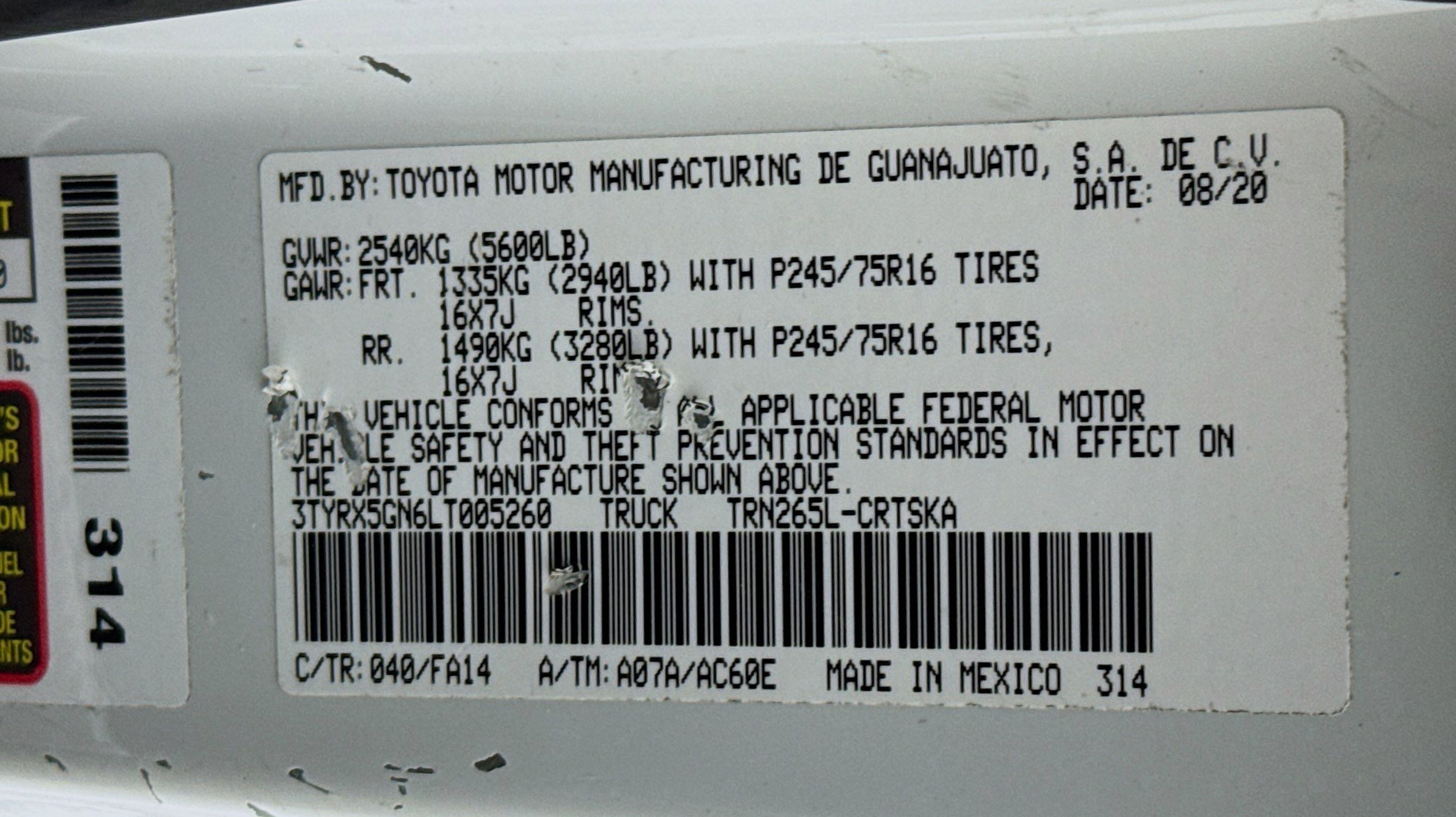 2020 Toyota Tacoma SR Experience a revolutionized car-buying journey with HGreg.com, now available in Houston! We've transformed the way you buy cars, offering upfront wholesale prices, flexible financing choices, and a 5-Day/500 Mile Exchange Policy. Explore our expansive lots in Doral, Miami, Orlando, Kendall, West Palm Beach, Tampa, and now Houston, featuring thousands of vehicles tailored to every lifestyle and budget. Discover the simplicity of the car buying process done right! Our prices are THOUSANDS below KBB, making HGreg.com the FASTEST GROWING automotive group in North America, with convenient locations across Doral, Miami, Orlando, Kendall, West Palm Beach, Tampa, and Houston.CARFAX One-Owner. Clean CARFAX. AM/FM Stereo, Black Rear Bumper, Fabric Seat Trim (FA), Intermittent Wiper Delete, Rear Cupholder Delete, Rear Headrests Delete, Rear Seat Belts Delete, Utility Package, 6 Speakers, ABS brakes, Air Conditioning, AM/FM radio: SiriusXM, Anti-whiplash front head restraints, Apple CarPlay/Android Auto, Auto High-beam Headlights, Axle Ratio: 4.30, Brake assist, Bumpers: body-color, Daytime Running Lamps, Driver door bin, Dual front impact airbags, Dual front side impact airbags, Electronic Stability Control, Emergency communication system: Safety Connect with 1-year trial, Exterior Parking Camera Rear, Fabric Seat Trim (FB), Front anti-roll bar, Front Bucket Seats, Front Center Armrest, Front reading lights, Front wheel independent suspension, Illuminated entry, Knee airbag, Low tire pressure warning, Occupant sensing airbag, Outside temperature display, Overhead airbag, Overhead console, Passenger cancellable airbag, Passenger door bin, Power door mirrors, Power steering, Power windows, Rear step bumper, Speed control, Speed-sensing steering, Steering wheel mounted audio controls, Tachometer, Telescoping steering wheel, Tilt steering wheel, Traction control, Variably intermittent wipers, Wheels: 16 x 7J Style Steel Disc, AM/FM Stereo, Black Rear Bumper, Fabric Seat Trim (FA), Intermittent Wiper Delete, Rear Cupholder Delete, Rear Headrests Delete, Rear Seat Belts Delete, Utility Package.** Price excludes tax, title, tags and $225 documentary fee (not required by law). Price assumes that final purchase will be made in the State of TX. Vehicle subject to prior sale. Price does not include our our Elite Protection Plan ($1,598) offers comprehensive coverage, including interior protection, exterior paint defense, ceramic windshield coating , advanced antimicrobial disinfection, key and remote replacement, and alloy wheel repair. Unmatched protection, timeless perfection.