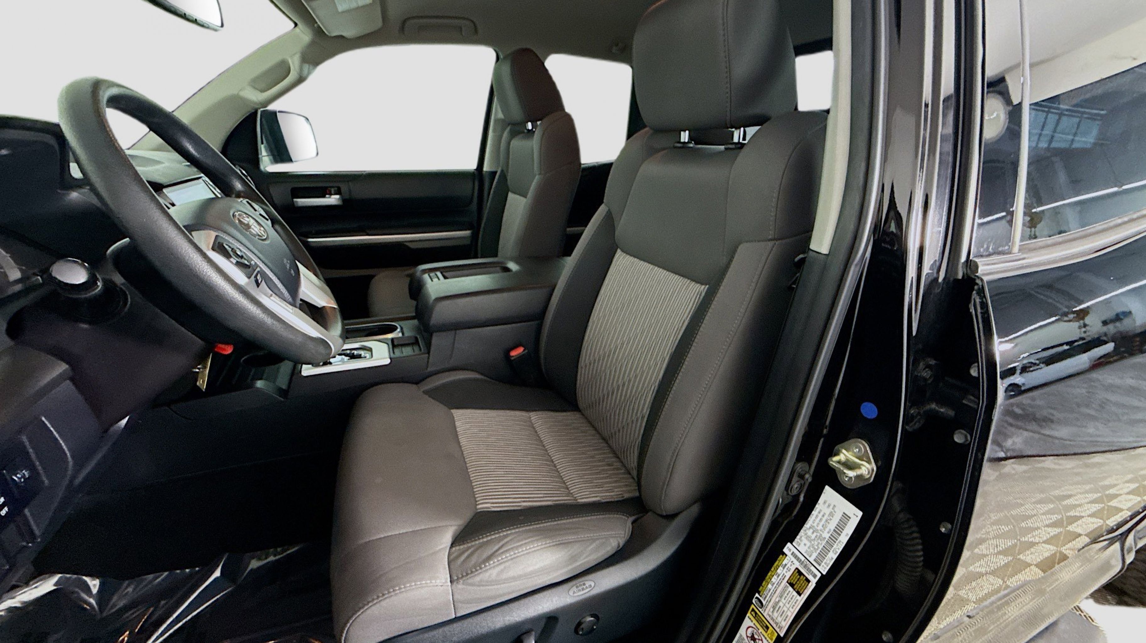 Black 2017 Toyota Tundra SR RWD 6-Speed Automatic Electronic with Overdrive 4.6L V8 DOHC Dual VVT-i 32V Graphite w/Fabric Seat Trim or Fabric Seat Trim w/TRD Off-Road Package, 18 x 8J Styled Steel Wheels, 3-Passenger Front Bench Seat, 3.91 Axle Ratio, 4-Wheel Disc Brakes, 6 Speakers, ABS brakes, Air Conditioning, AM/FM radio, Brake assist, CD player, Driver door bin, Dual front impact airbags, Dual front side impact airbags, Electronic Stability Control, Exterior Parking Camera Rear, Fabric Seat Trim, Front anti-roll bar, Front Center Armrest w/Storage, Front reading lights, Front wheel independent suspension, Heated door mirrors, Illuminated entry, Knee airbag, Low tire pressure warning, Occupant sensing airbag, Outside temperature display, Overhead airbag, Overhead console, Panic alarm, Passenger door bin, Power door mirrors, Power steering, Power windows, Radio: Entune AM/FM/CD, Rear reading lights, Rear step bumper, Remote keyless entry, Speed control, Speed-sensing steering, Split folding rear seat, Tachometer, Tilt steering wheel, Traction control, Variably intermittent wipers, Graphite w/Fabric Seat Trim or Fabric Seat Trim w/TRD Off-Road Package.