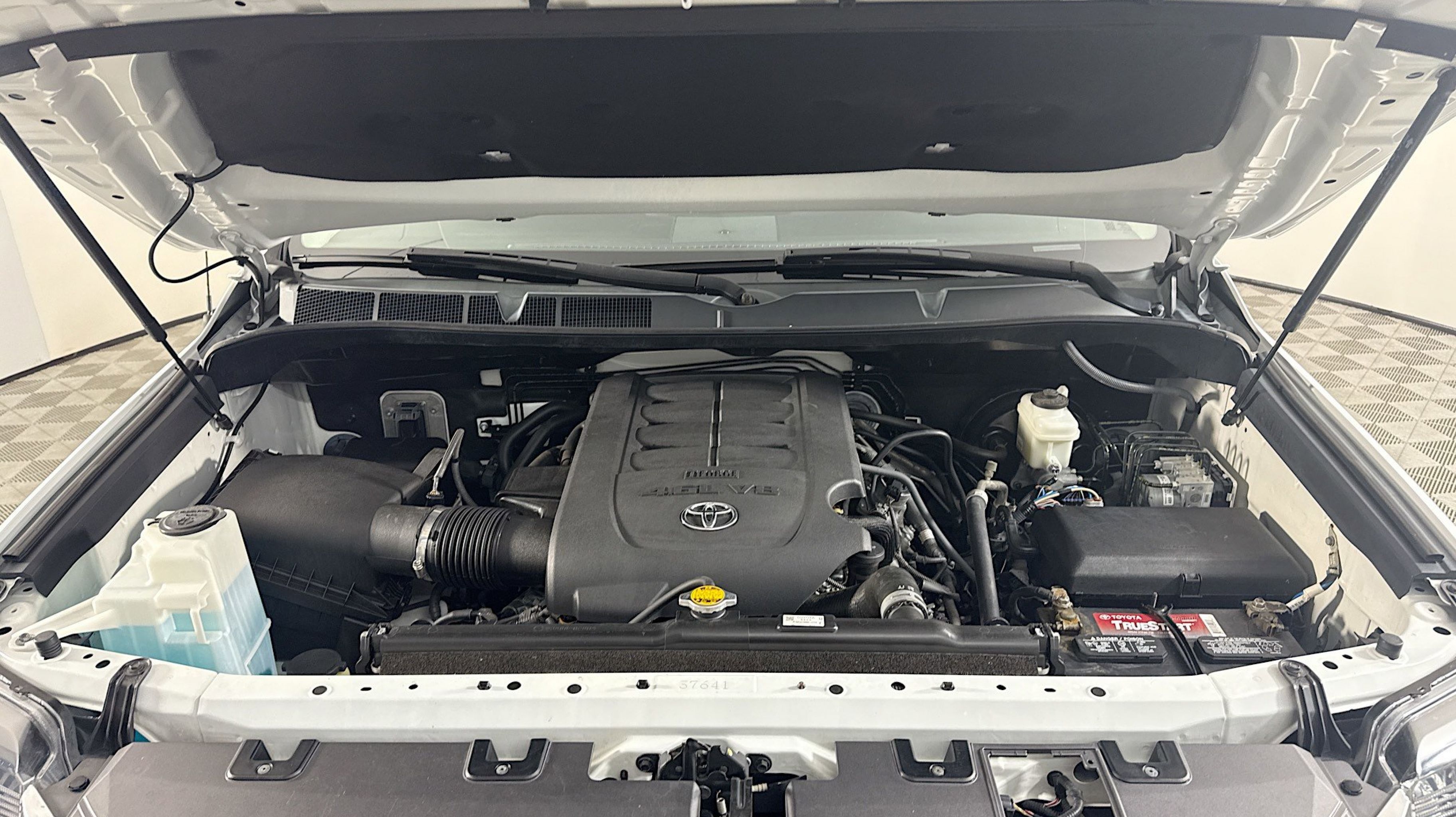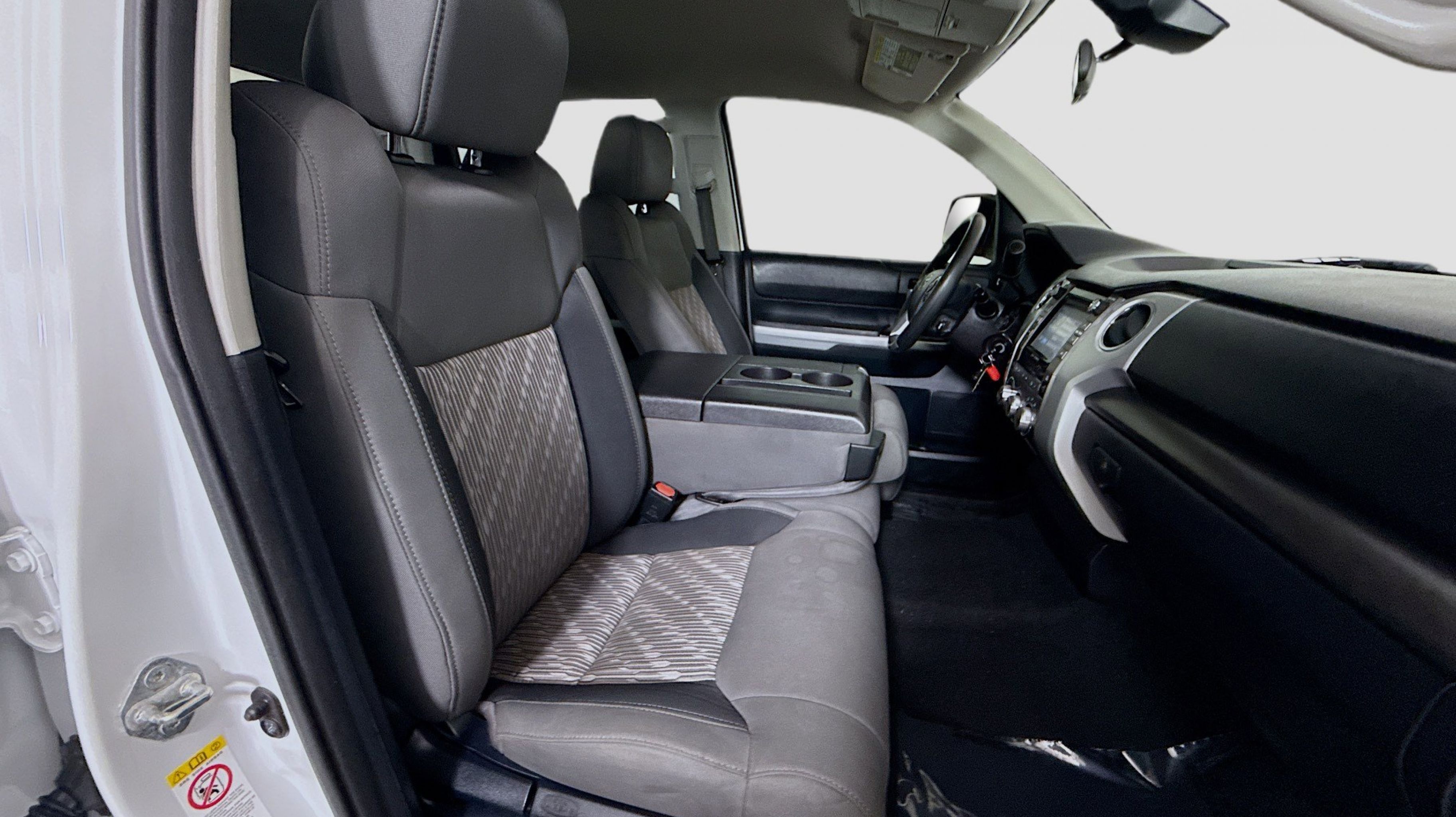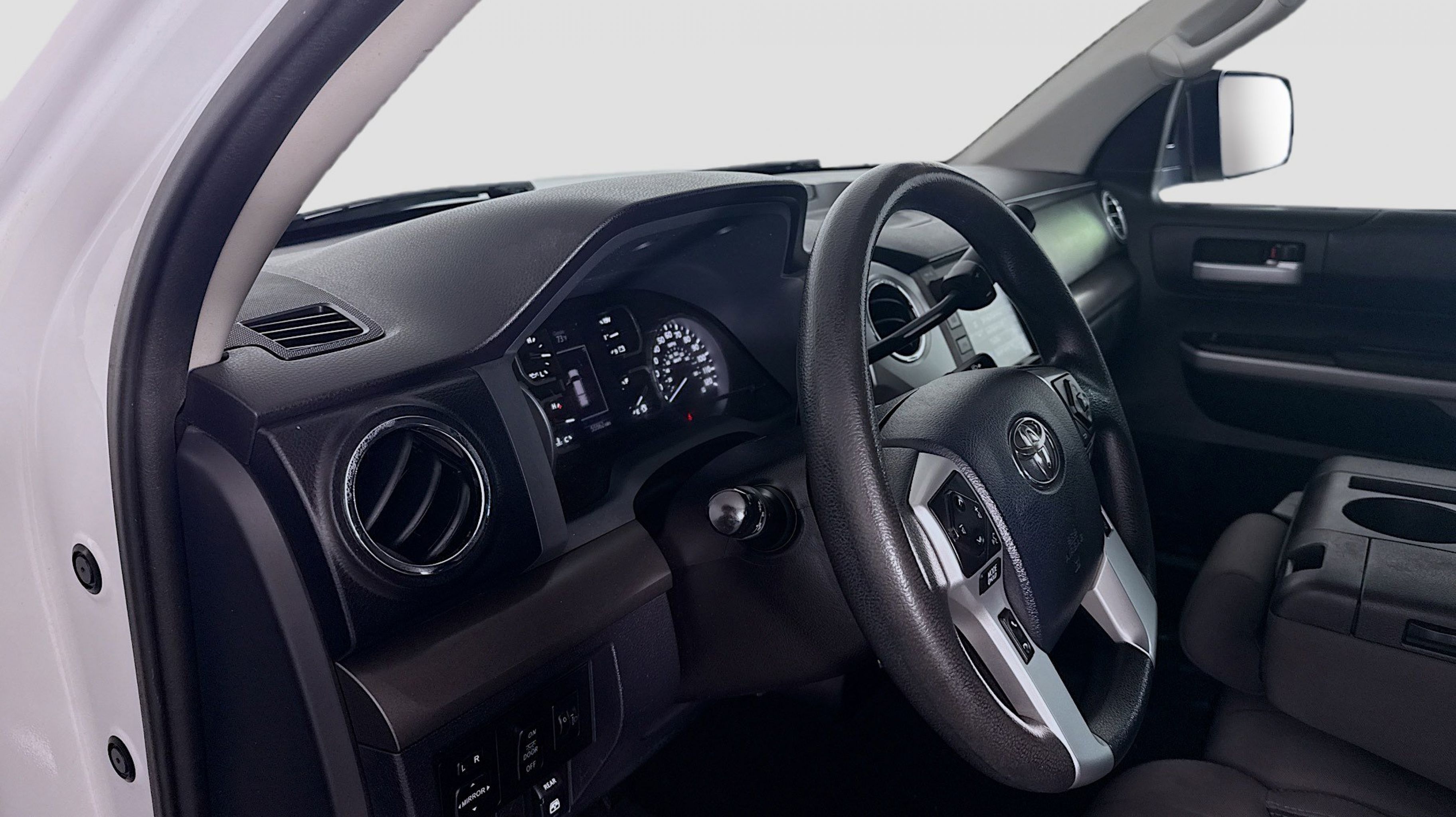 Super White 2018 Toyota Tundra SR5 4.6L V8 RWD 6-Speed Automatic Electronic with Overdrive 4.6L V8 DOHC Dual VVT-i 32V Black w/Fabric Seat Trim, 18 x 8J Styled Steel Wheels, 3-Passenger Front Bench Seat, 3.91 Axle Ratio, 4-Wheel Disc Brakes, 6 Speakers, ABS brakes, Air Conditioning, AM/FM radio: SiriusXM, Auto High-beam Headlights, Brake assist, CD player, Delay-off headlights, Driver door bin, Driver vanity mirror, Dual front impact airbags, Dual front side impact airbags, Electronic Stability Control, Exterior Parking Camera Rear, Fabric Seat Trim, Front anti-roll bar, Front Center Armrest w/Storage, Front fog lights, Front reading lights, Front wheel independent suspension, Fully automatic headlights, Heated door mirrors, Illuminated entry, Knee airbag, Low tire pressure warning, Occupant sensing airbag, Outside temperature display, Overhead airbag, Overhead console, Panic alarm, Passenger door bin, Passenger vanity mirror, Power door mirrors, Power steering, Power windows, Radio: Entune Audio Display AM/FM/HD w/CD Player, Rear reading lights, Rear seat center armrest, Rear step bumper, Rear window defroster, Remote keyless entry, SIRIUSXM Satellite Radio, Speed control, Speed-sensing steering, Split folding rear seat, Tachometer, Tilt steering wheel, Traction control, Variably intermittent wipers, Voltmeter, Black w/Fabric Seat Trim.
