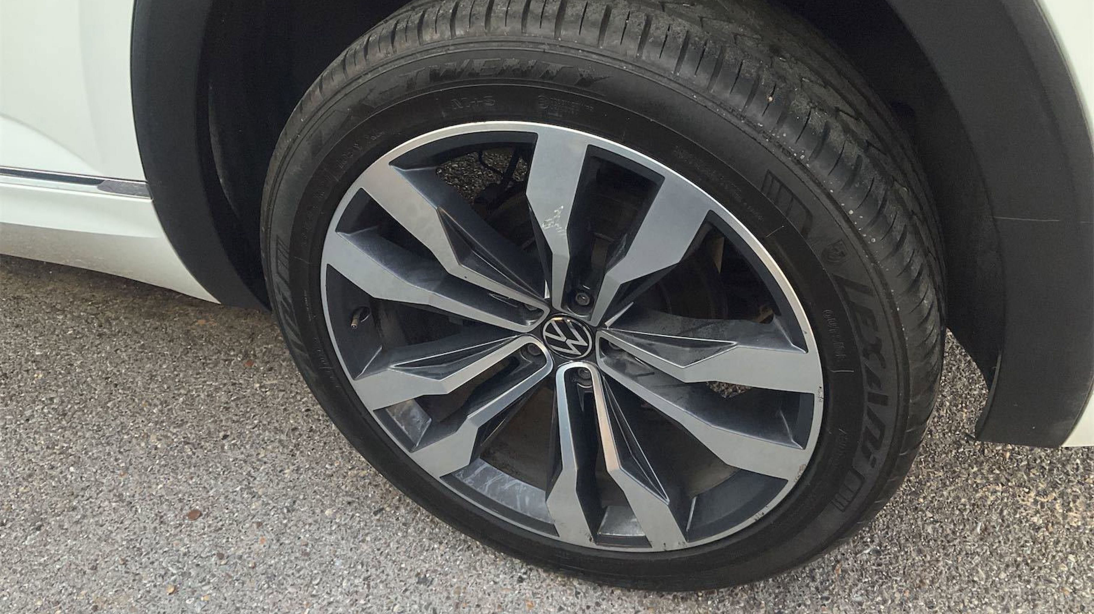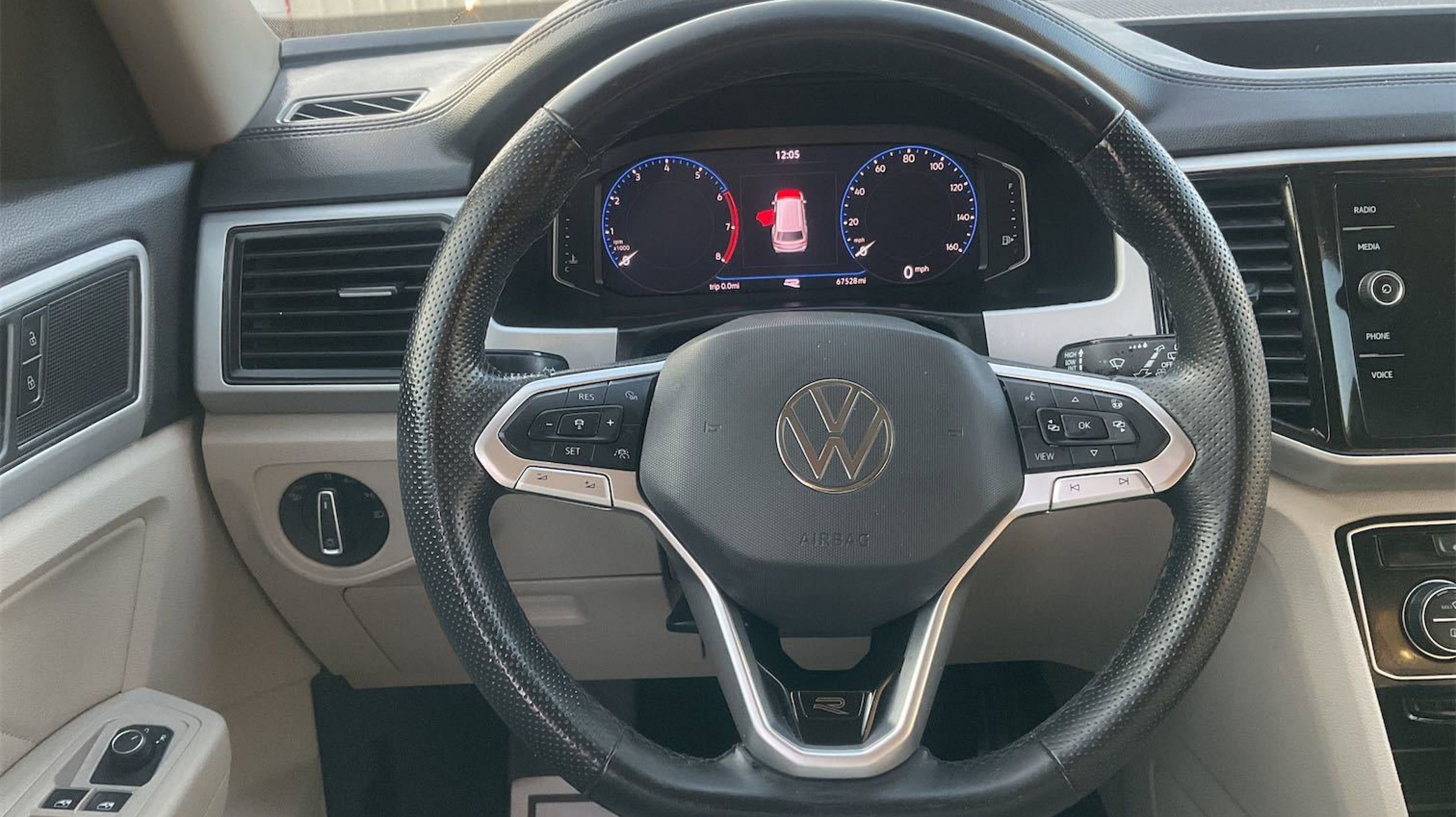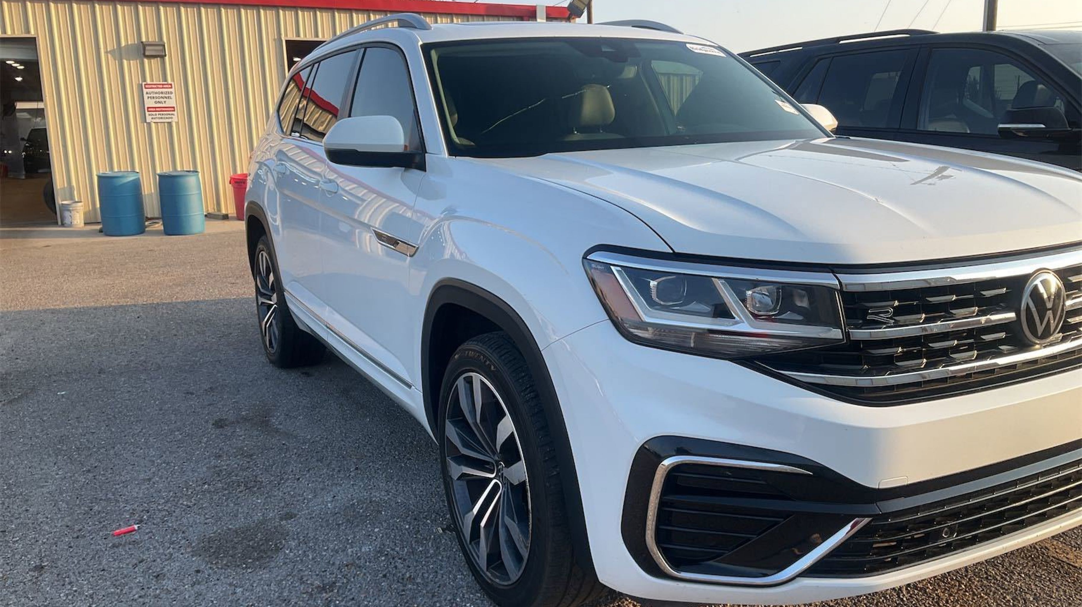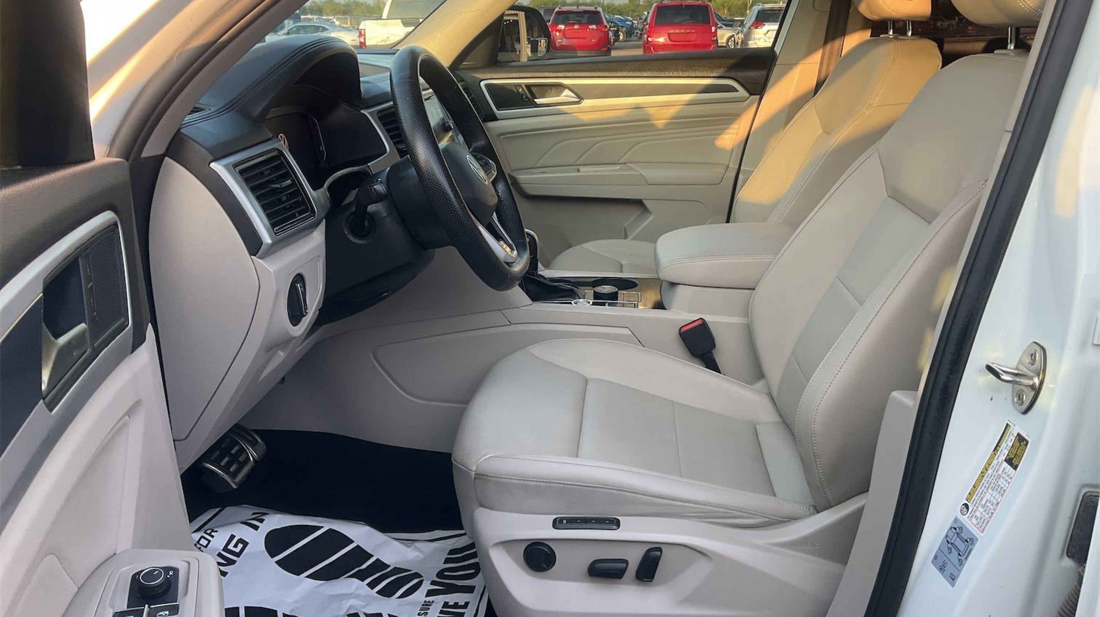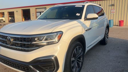 Pure White 2021 Volkswagen Atlas 3.6L V6 SEL R-Line AWD 8-Speed Automatic with Tiptronic 3.6L VR6 3.60 Axle Ratio, 3rd row seats: split-bench, 4-Wheel Disc Brakes, 6 Speakers, ABS brakes, Air Conditioning, Alloy wheels, Auto High-beam Headlights, Auto-dimming Rear-View mirror, Automatic temperature control, Brake assist, Bumpers: body-color, Compass, Delay-off headlights, Driver door bin, Driver vanity mirror, Dual front impact airbags, Dual front side impact airbags, Electronic Stability Control, Emergency communication system: VW Car-Net services (capabilities require enrollment or subscription), Exterior Parking Camera Rear, Four wheel independent suspension, Front anti-roll bar, Front Bucket Seats, Front Center Armrest, Front dual zone A/C, Front fog lights, Front reading lights, Fully automatic headlights, Heated Comfort Front Bucket Seats, Heated door mirrors, Heated front seats, Heated steering wheel, Illuminated entry, Leather Shift Knob, Low tire pressure warning, Memory seat, Navigation System, Occupant sensing airbag, Outside temperature display, Overhead airbag, Overhead console, Panic alarm, PANORAMA SUNROOF, Passenger door bin, Passenger vanity mirror, Perforated V-Tex Leatherette Seating Surfaces, Power door mirrors, Power driver seat, Power Liftgate, Power passenger seat, Power steering, Power windows, Radio data system, Rain sensing wipers, Rear air conditioning, Rear anti-roll bar, Rear reading lights, Rear seat center armrest, Rear window defroster, Rear window wiper, Remote keyless entry, Roof rack: rails only, Security system, Speed control, Speed-sensing steering, Split folding rear seat, Spoiler, Sport steering wheel, Standard Suspension, Steering wheel mounted audio controls, Tachometer, Telescoping steering wheel, Tilt steering wheel, Traction control, Trip computer, Turn signal indicator mirrors, Variably intermittent wipers, Wheels: 21 2-Tone Machined Alloy.