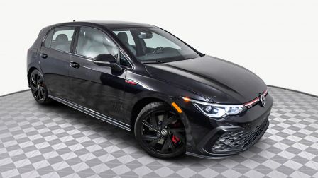 Deep Black Pearl 2022 Volkswagen Golf GTI 2.0T SE FWD 7-Speed DSG Automatic with Tiptronic 2.0L TSI DOHC 4-Wheel Disc Brakes, 9 Speakers, ABS brakes, Air Conditioning, Alloy wheels, AM/FM radio: SiriusXM with 360L, Auto-dimming Rear-View mirror, Automatic temperature control, Brake assist, Bumpers: body-color, Cloth Seating Surfaces, Compass, Delay-off headlights, Driver door bin, Driver vanity mirror, Dual front impact airbags, Dual front side impact airbags, Electronic Stability Control, Emergency communication system: VW Car-Net services (capabilities require enrollment or subscription), Exterior Parking Camera Rear, Forward collision: FCW w/Autonomous Emergency Braking mitigation, Four wheel independent suspension, Front anti-roll bar, Front Bucket Seats, Front Center Armrest, Front fog lights, Front reading lights, Fully automatic headlights, harman/kardon® Speakers, Heated door mirrors, Heated front seats, Heated Front Top Sport Seats, Heated steering wheel, Illuminated entry, Lane Departure Warning System, Leather steering wheel, Low tire pressure warning, Navigation System, Occupant sensing airbag, Outside temperature display, Overhead airbag, Overhead console, Panic alarm, Passenger door bin, Passenger vanity mirror, Power door mirrors, Power driver seat, Power moonroof: Panoramic, Power passenger seat, Power steering, Power windows, Radio data system, Radio: MIB3 Discover Pro w/10 Touchscreen Navi, Rain sensing wipers, Rear anti-roll bar, Rear reading lights, Rear seat center armrest, Rear window defroster, Rear window wiper, Remote keyless entry, Security system, Speed control, Speed-sensing steering, Speed-Sensitive Wipers, Split folding rear seat, Spoiler, Sport steering wheel, Steering wheel mounted audio controls, Tachometer, Telescoping steering wheel, Tilt steering wheel, Traction control, Trip computer, Turn signal indicator mirrors, Variably intermittent wipers, Wheels: 18 x 7.5J 2-Tone Machined Alloy.