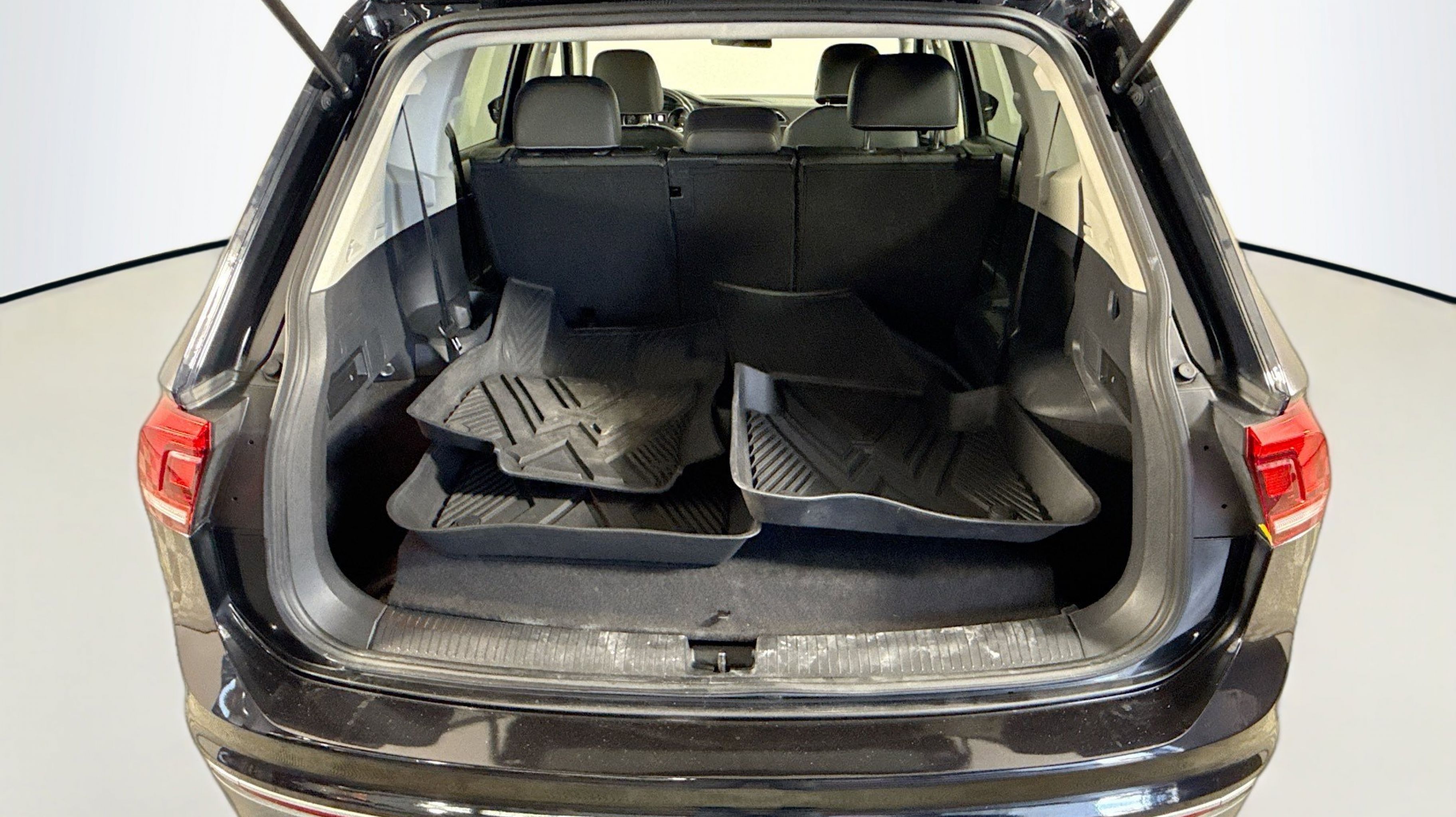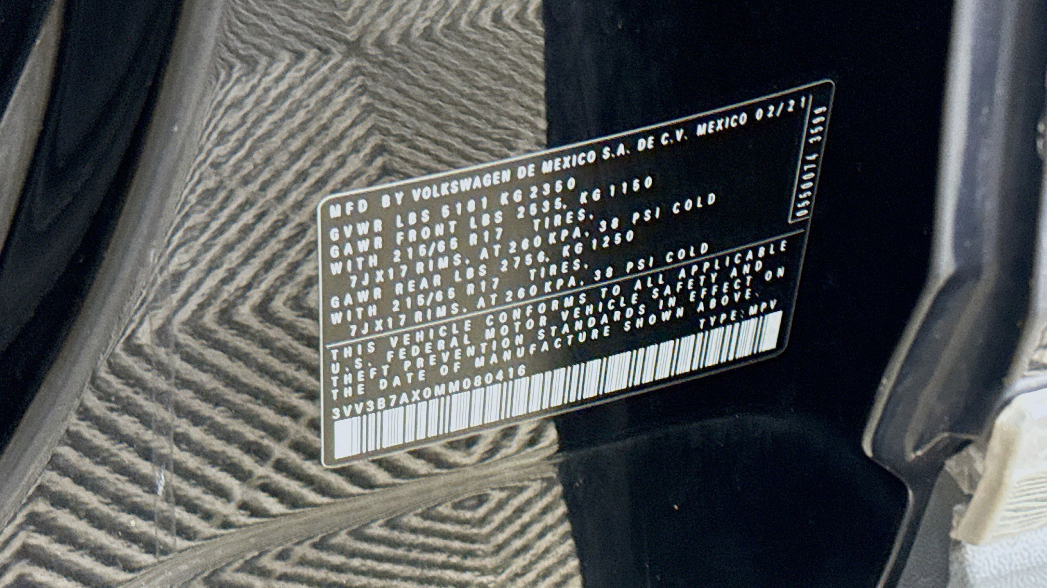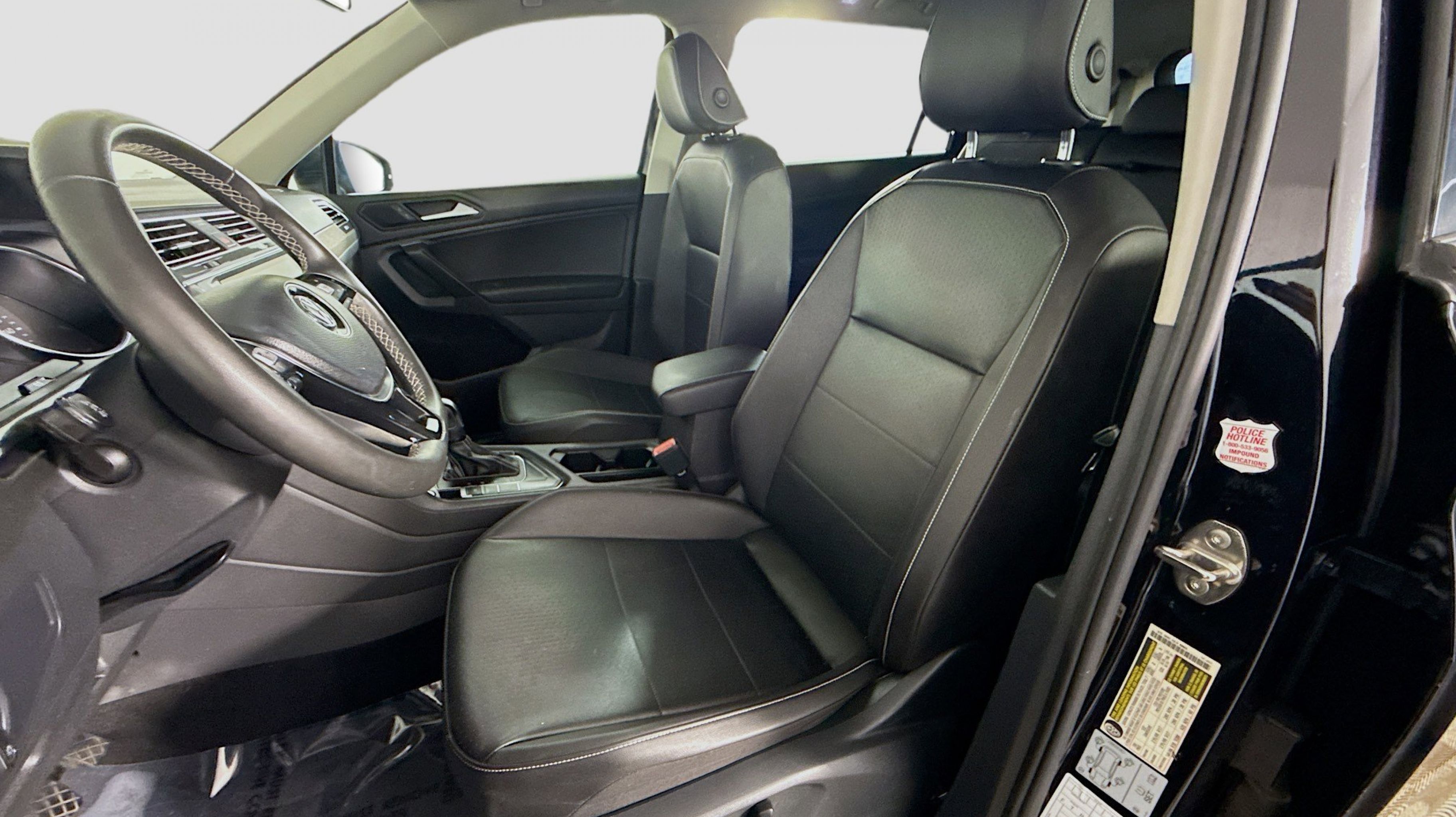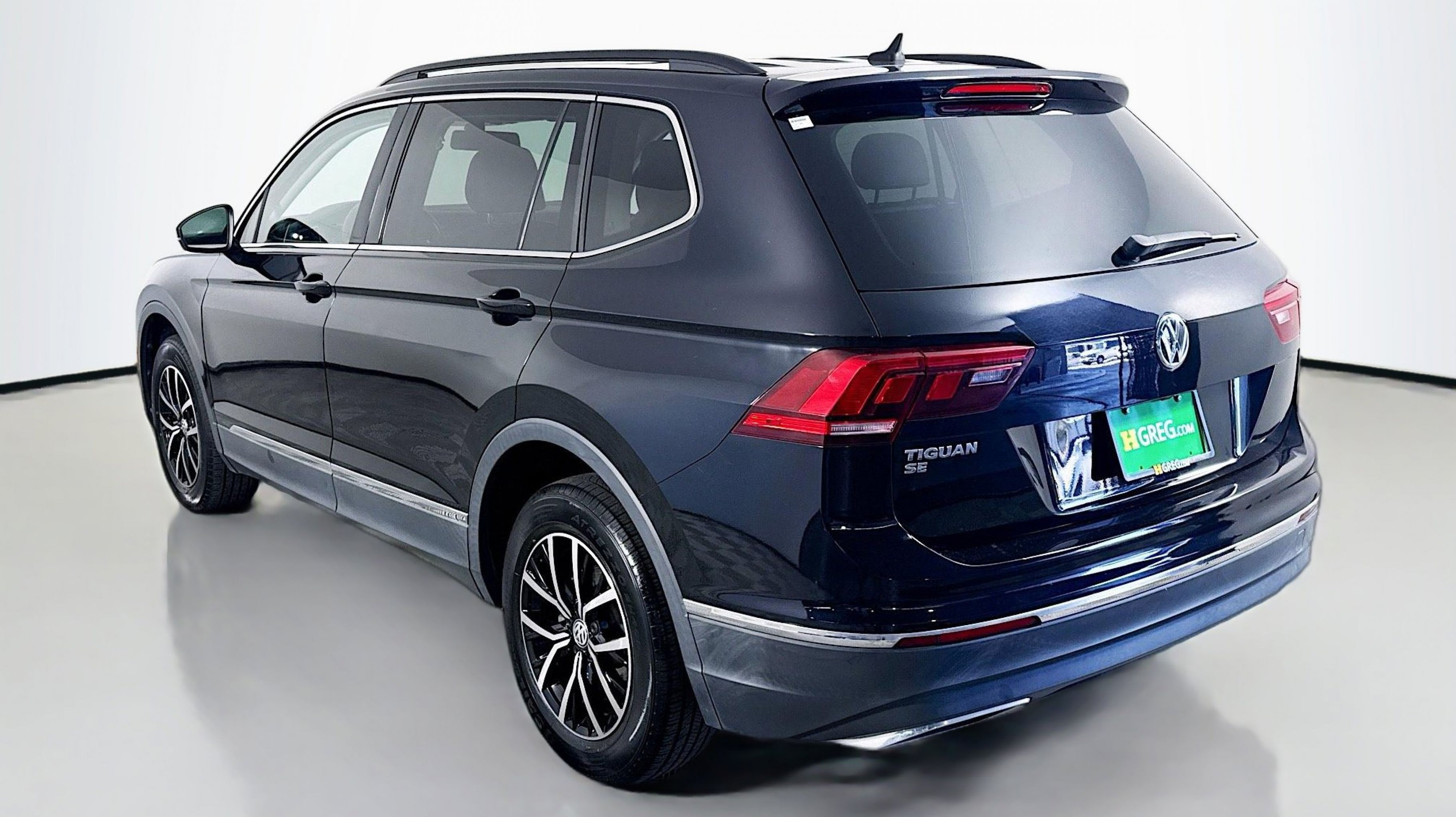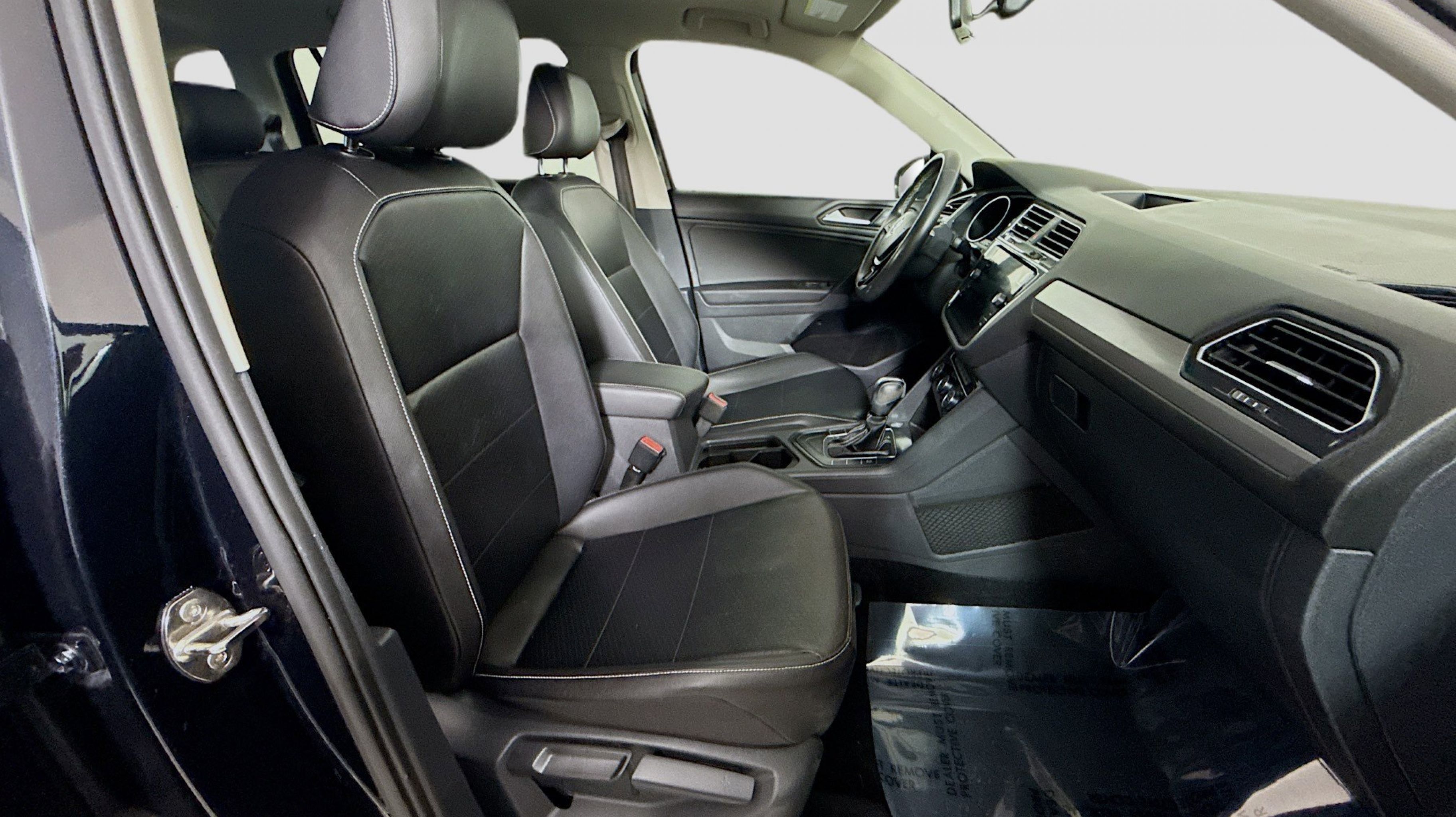 Deep Black Pearl 2021 Volkswagen Tiguan 2.0T SE FWD 8-Speed Automatic with Tiptronic 2.0L TSI DOHC 3.33 Axle Ratio, 3rd row seats: bench, 4-Wheel Disc Brakes, 4-Wheel Independent Suspension, 6 Speakers, ABS brakes, Air Conditioning, Alloy wheels, AM/FM radio: SiriusXM with 360L, Automatic temperature control, Brake assist, Bumpers: body-color, Compass, Delay-off headlights, Driver door bin, Driver vanity mirror, Dual front impact airbags, Dual front side impact airbags, Electronic Stability Control, Emergency communication system: VW Car-Net services (capabilities require enrollment or subscription), Exterior Parking Camera Rear, Forward collision: FCW w/Autonomous Emergency Braking mitigation, Four wheel independent suspension, Front anti-roll bar, Front Bucket Seats, Front Center Armrest, Front dual zone A/C, Front reading lights, Fully automatic headlights, Heated door mirrors, Heated Front Comfort Seats, Heated front seats, Illuminated entry, Leather Shift Knob, Low tire pressure warning, Occupant sensing airbag, Outside temperature display, Overhead airbag, Overhead console, Panic alarm, Passenger door bin, Passenger vanity mirror, Perforated V-Tex Leatherette Seating Surfaces, Power door mirrors, Power driver seat, Power steering, Power windows, Radio data system, Radio: MIB3 Composition Media AM/FM/HD, Rear anti-roll bar, Rear reading lights, Rear seat center armrest, Rear window defroster, Rear window wiper, Remote keyless entry, Roof rack: rails only, Security system, Speed control, Speed-sensing steering, Split folding rear seat, Spoiler, Steering wheel mounted audio controls, Tachometer, Telescoping steering wheel, Tilt steering wheel, Traction control, Trip computer, Turn signal indicator mirrors, Variably intermittent wipers, Wheels: 17 2-Tone Machined & Black Alloy.